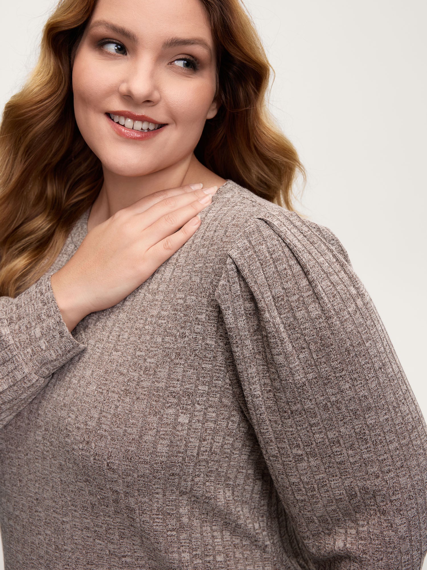 Ribbed Puffy Sleeve Knee-Length Sweater Dress