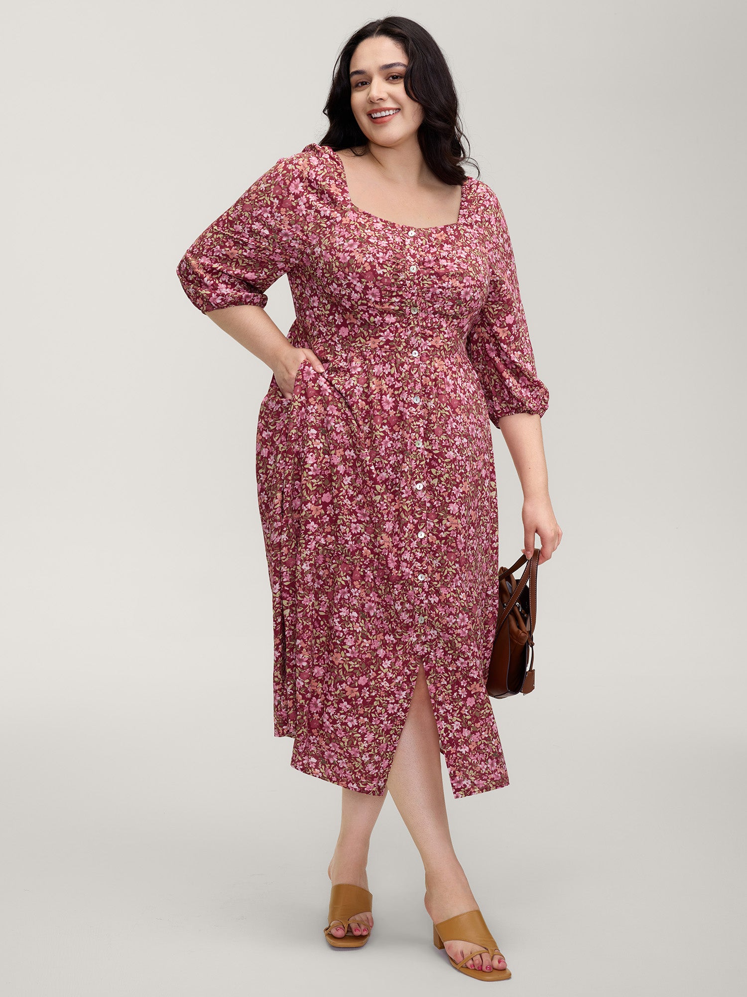 Fall Florals Gather Bust Button Maxi Dress
