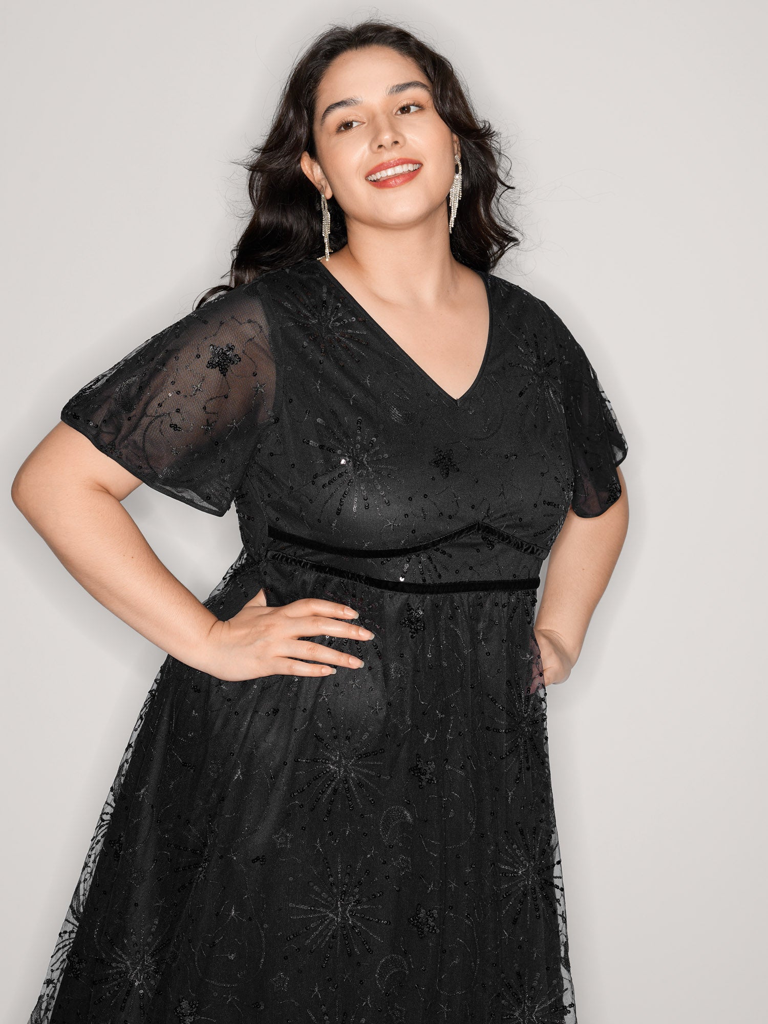 Shimmery Sequin V-Neck Midi Dress