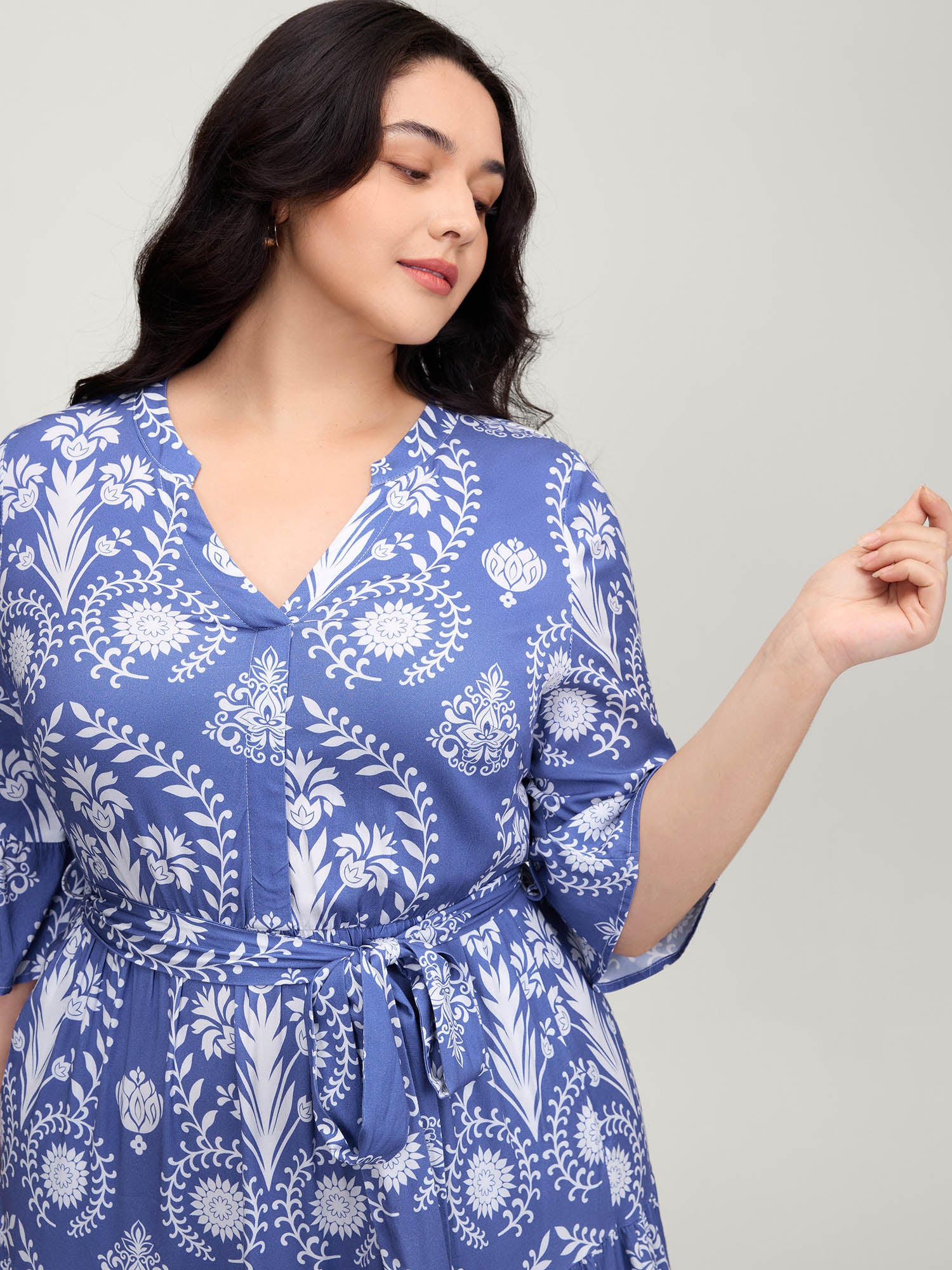 Boho Print Notched Tie Knot Maxi Dress