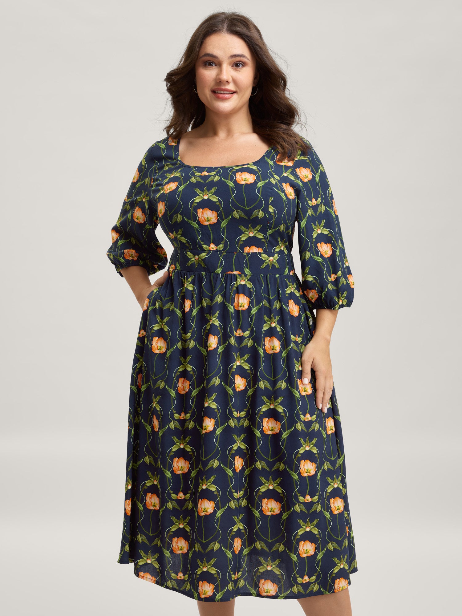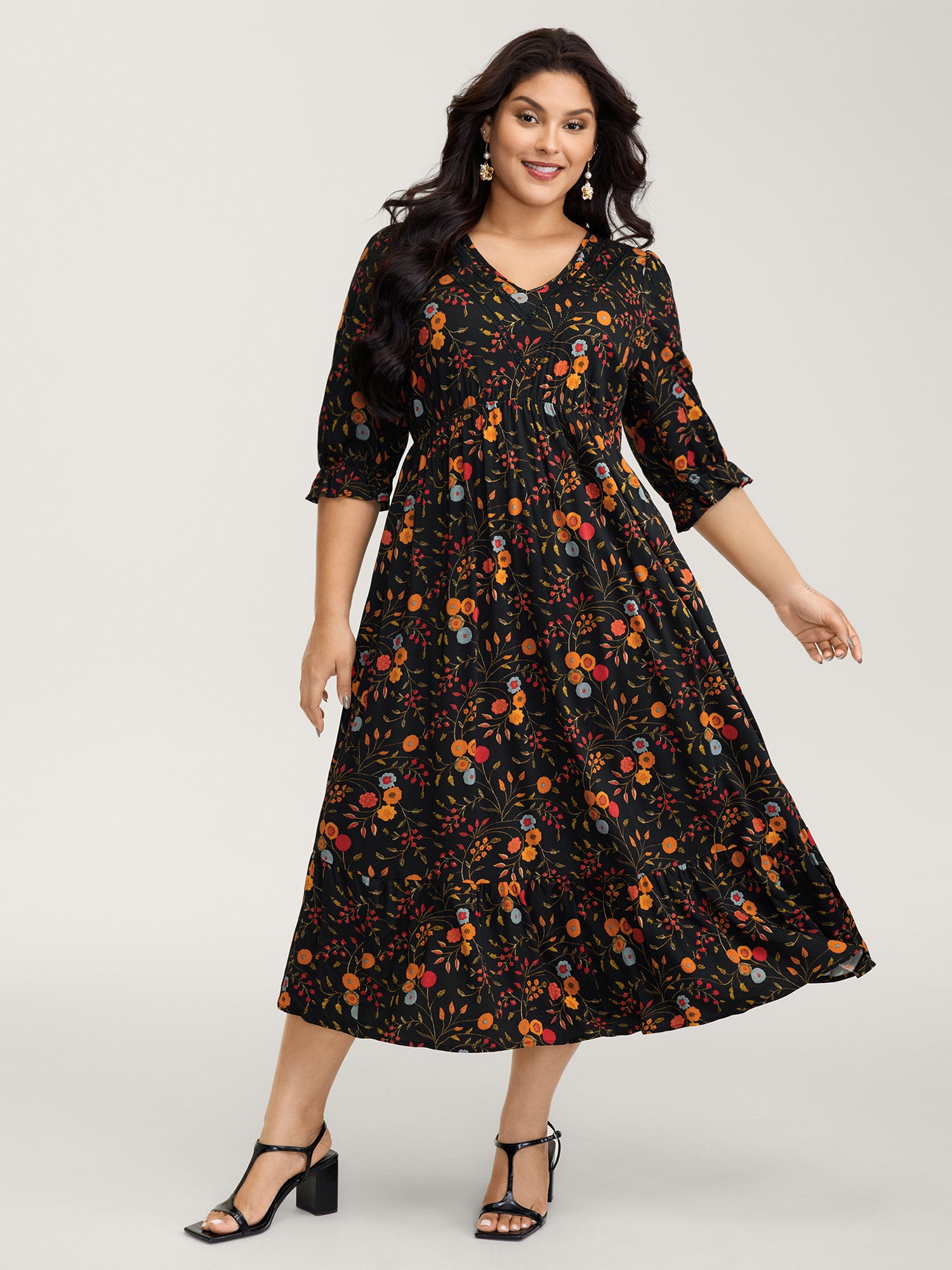 Fall Florals Shirred Bodice Midi Dress