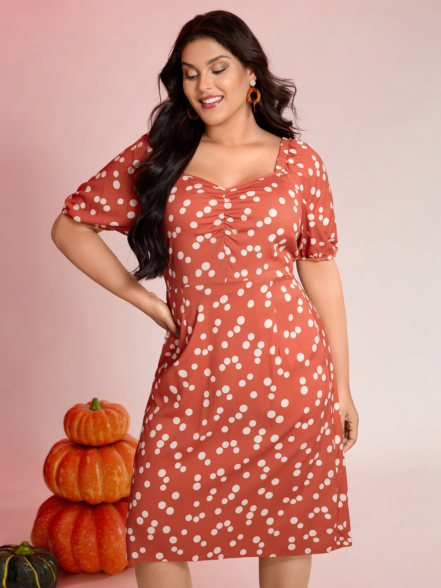 Micro Pumpkin Print Stretchy Midi Dress