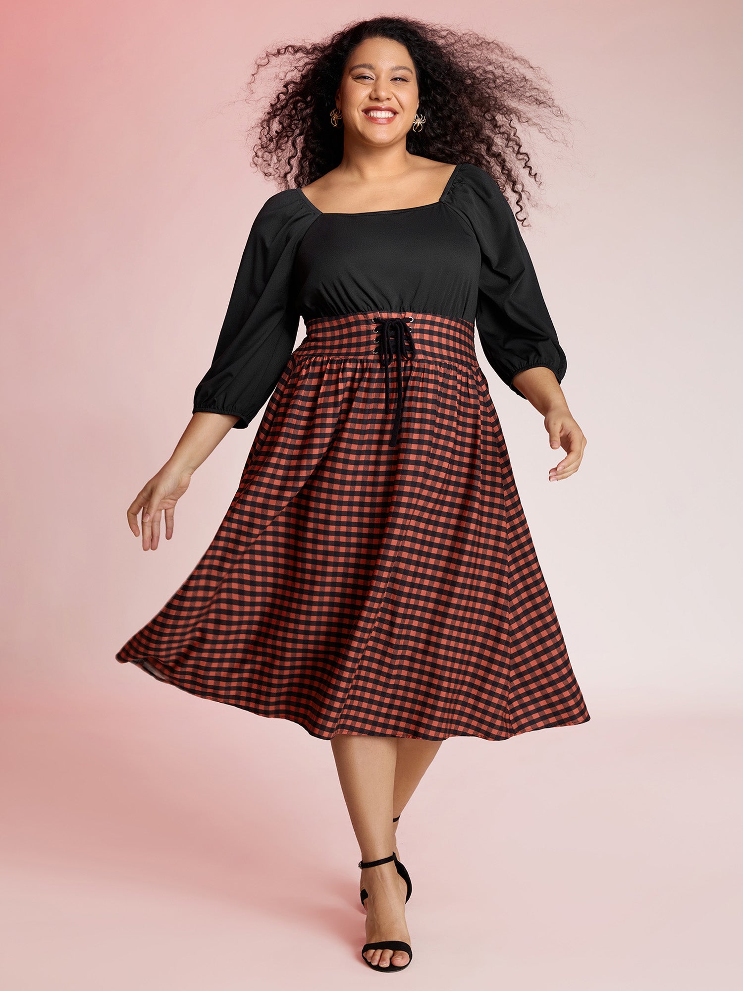 Halloween Plaid Print Crosstie Contrast Midi Dress