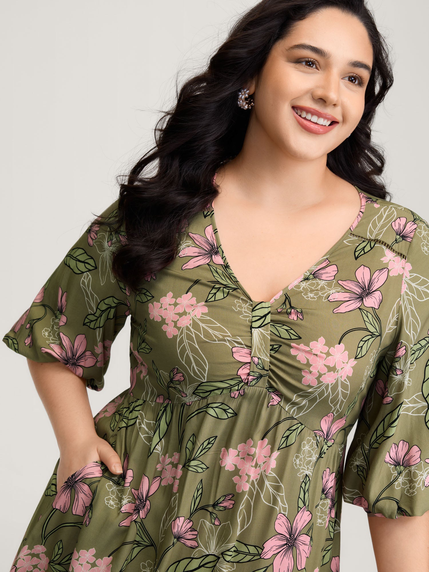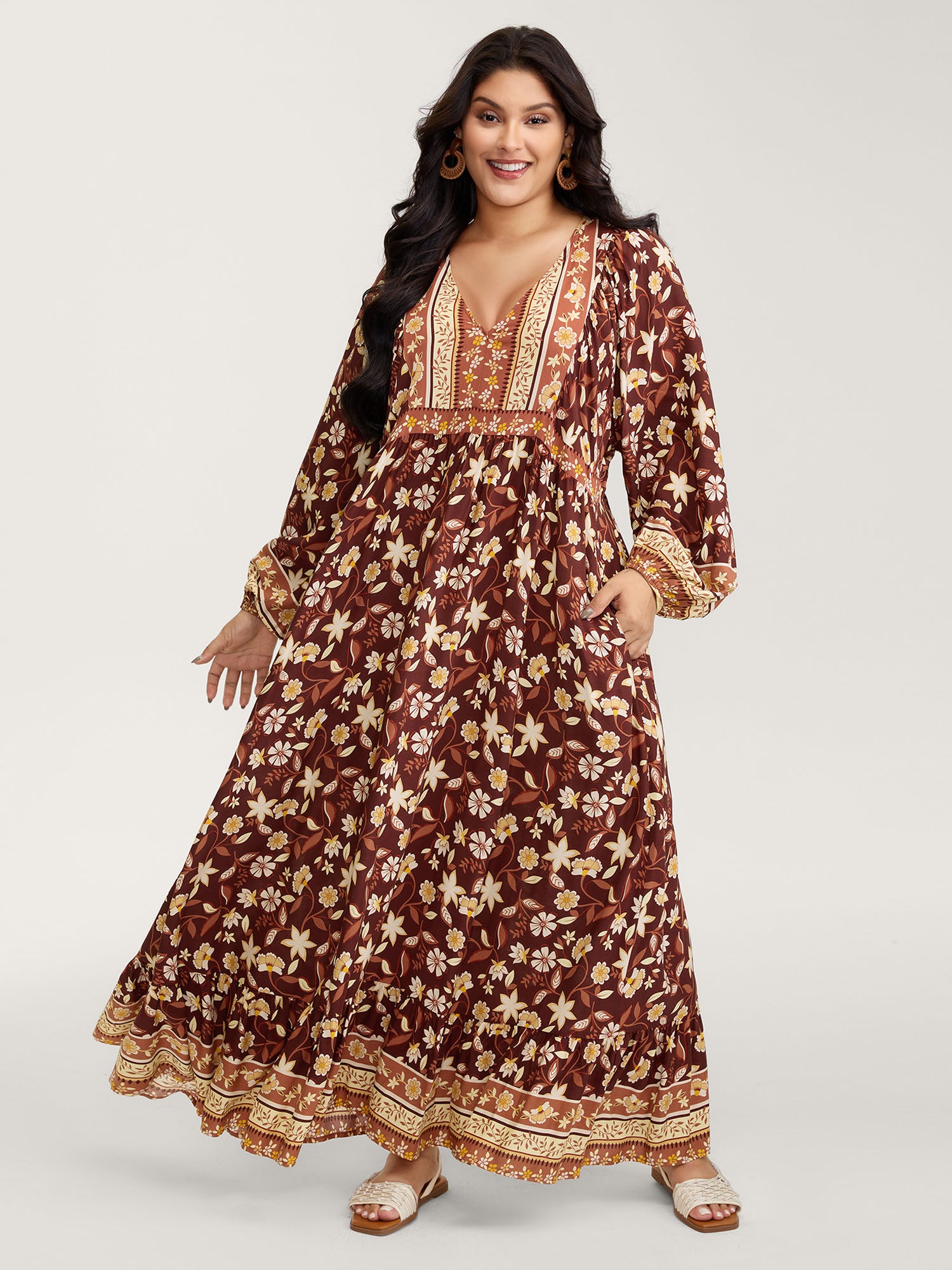 Floral Lace Print Pockets Maxi Dress