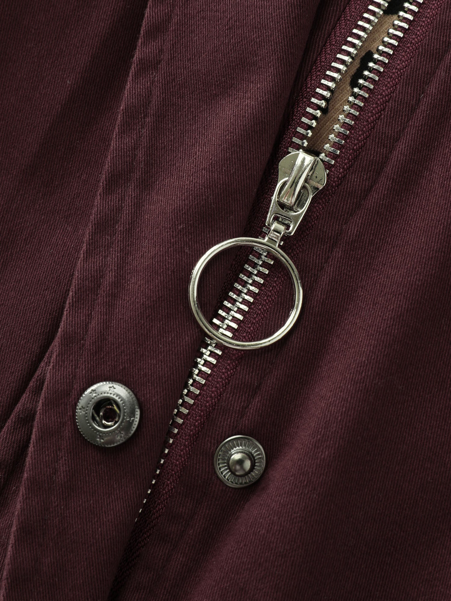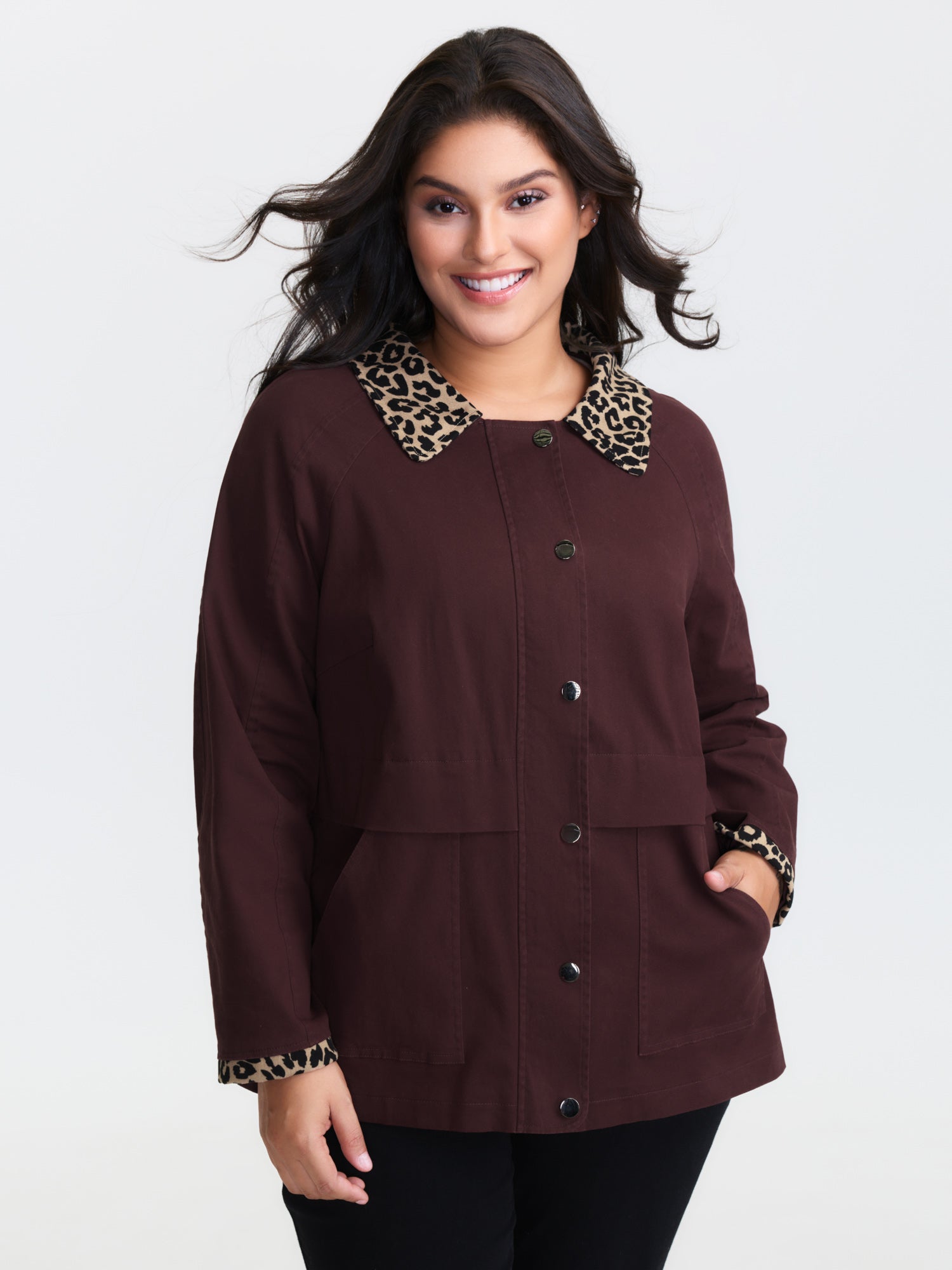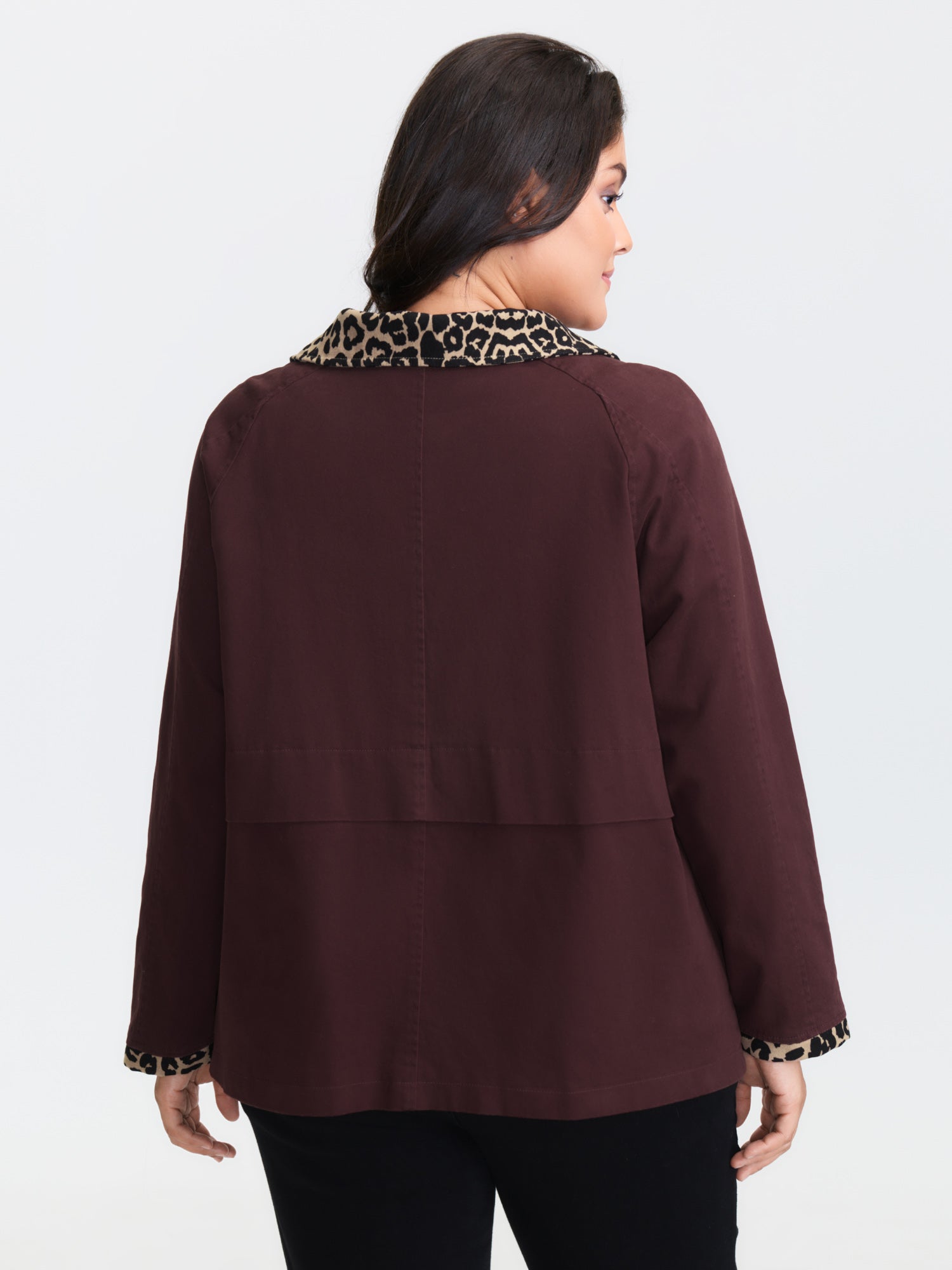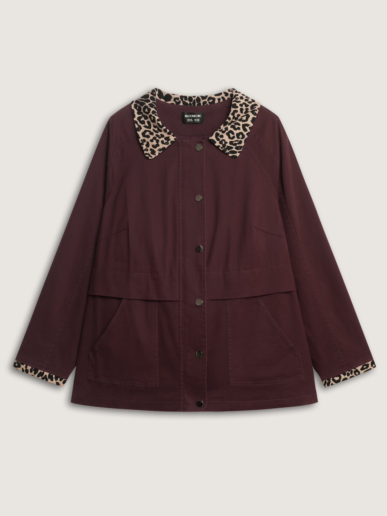 Shop Leopard Print Collar Button-Front Zipper Jacket now and redefine your style with confidence at BloomChic. Tailored for mid and plus-size women. This trendy Outerwear Women, sizes 10-30. Color:Burgundy;Style:Leisure;Prints:Non;Details:Contrast;Pocket:Patch pocket;Snap Fastener:Snap fastener;Belt:No-belt;Closure Type:Button;Lining:Lining