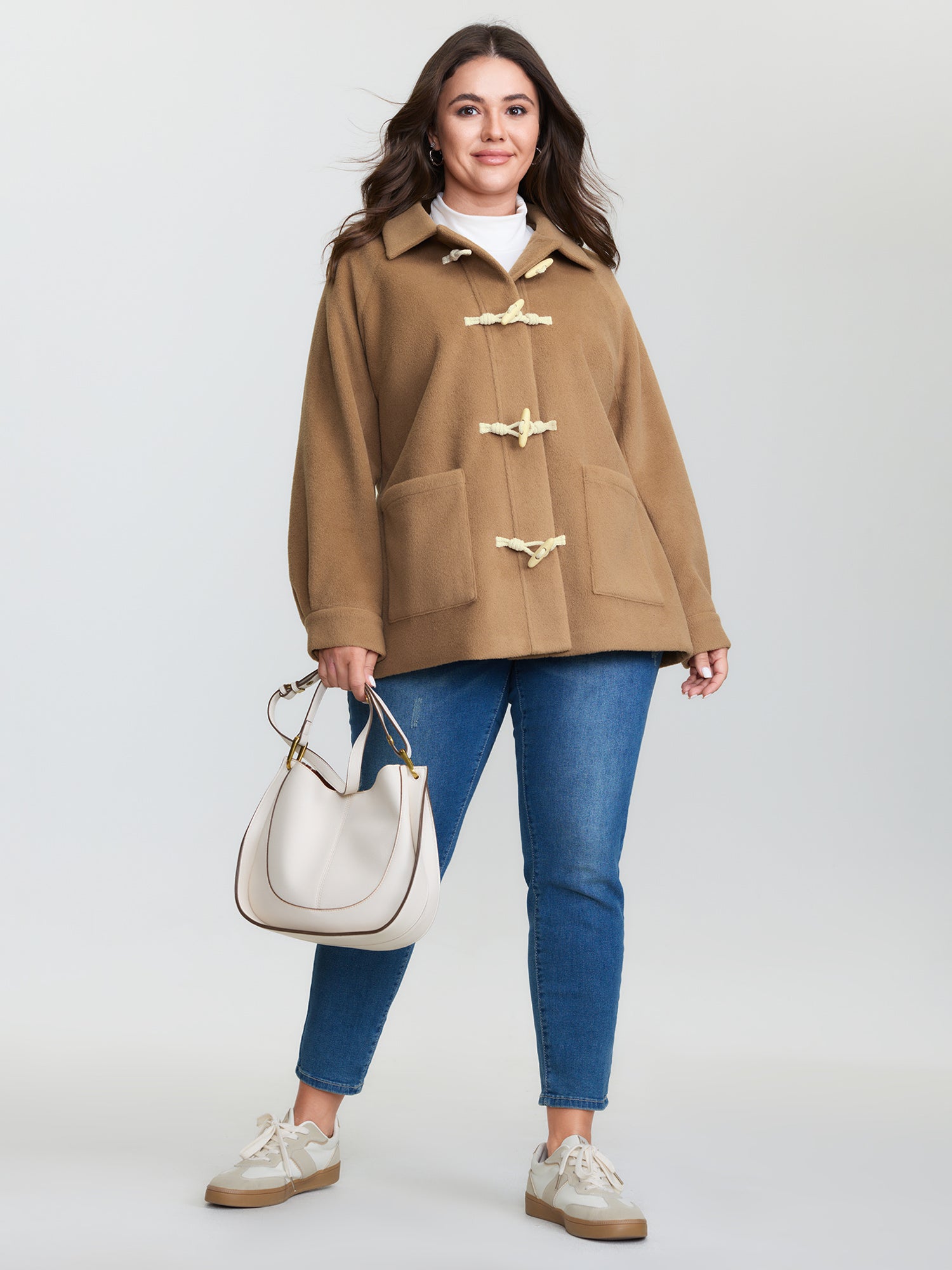 Shop Loop Buttons Pockets Relaxed-Fit Jacket now and redefine your style with confidence at BloomChic. Tailored for mid and plus-size women. This trendy Outerwear Women, sizes 10-30. Color:Brown Coffee;Style:Leisure;Prints:Non;Details:Button;Pocket:Patch pocket;Belt:No-belt;Closure Type:Button;Lining:Lining