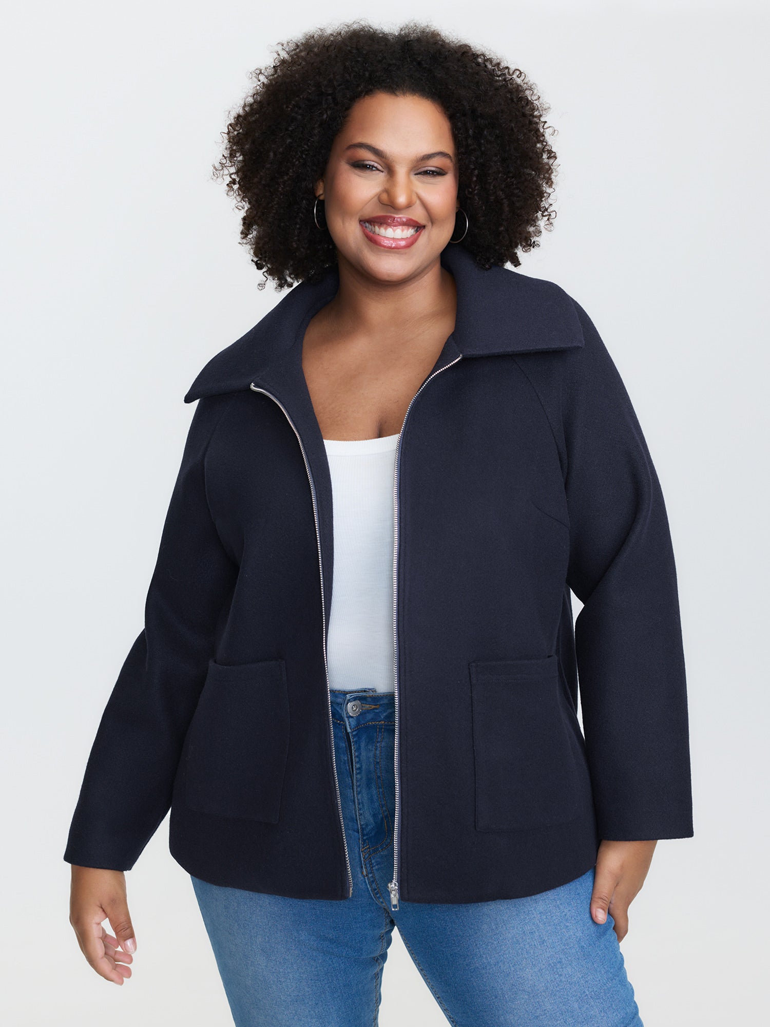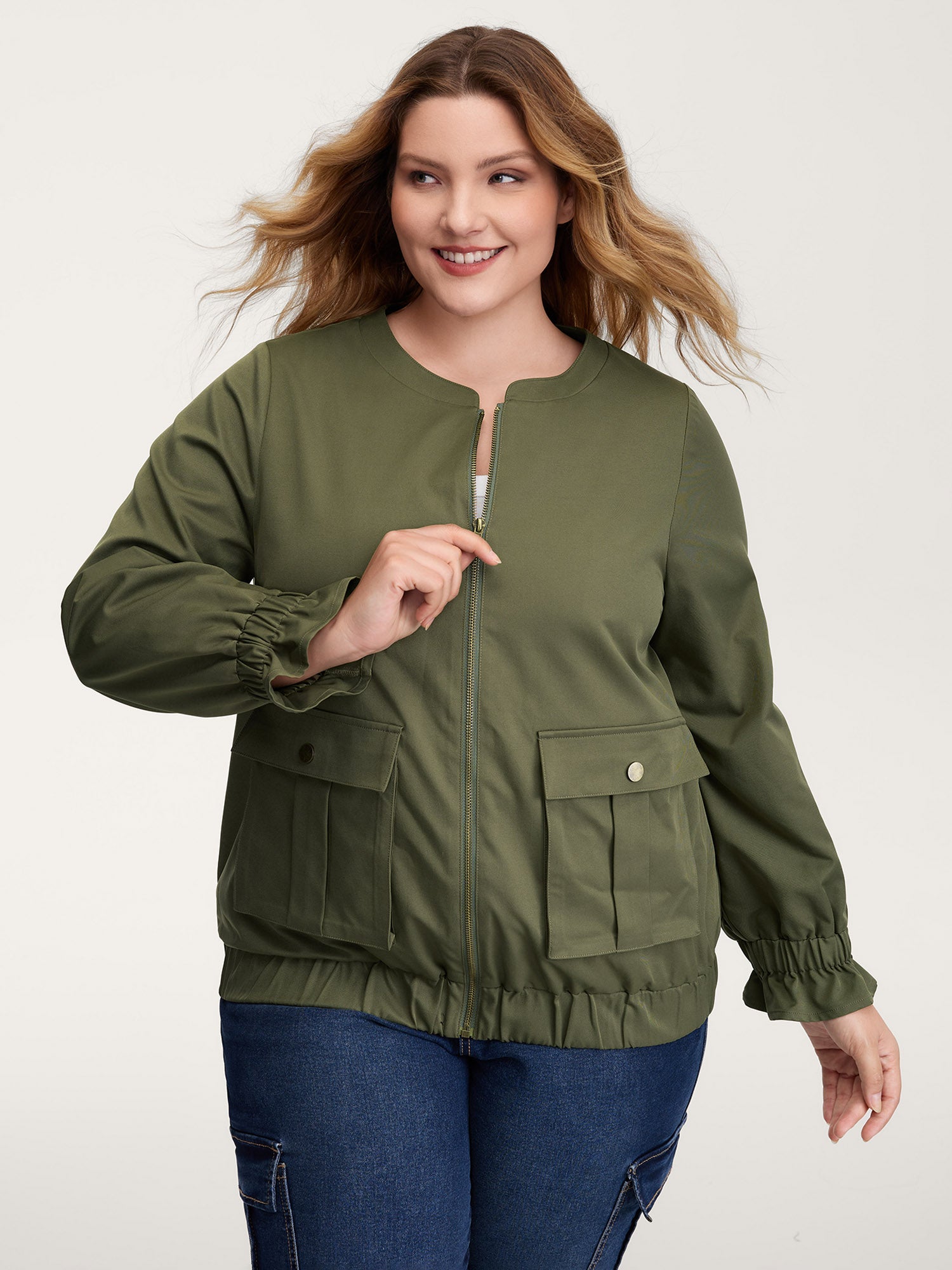 Lined Pockets Shirred Cuffs Zipper Jacket