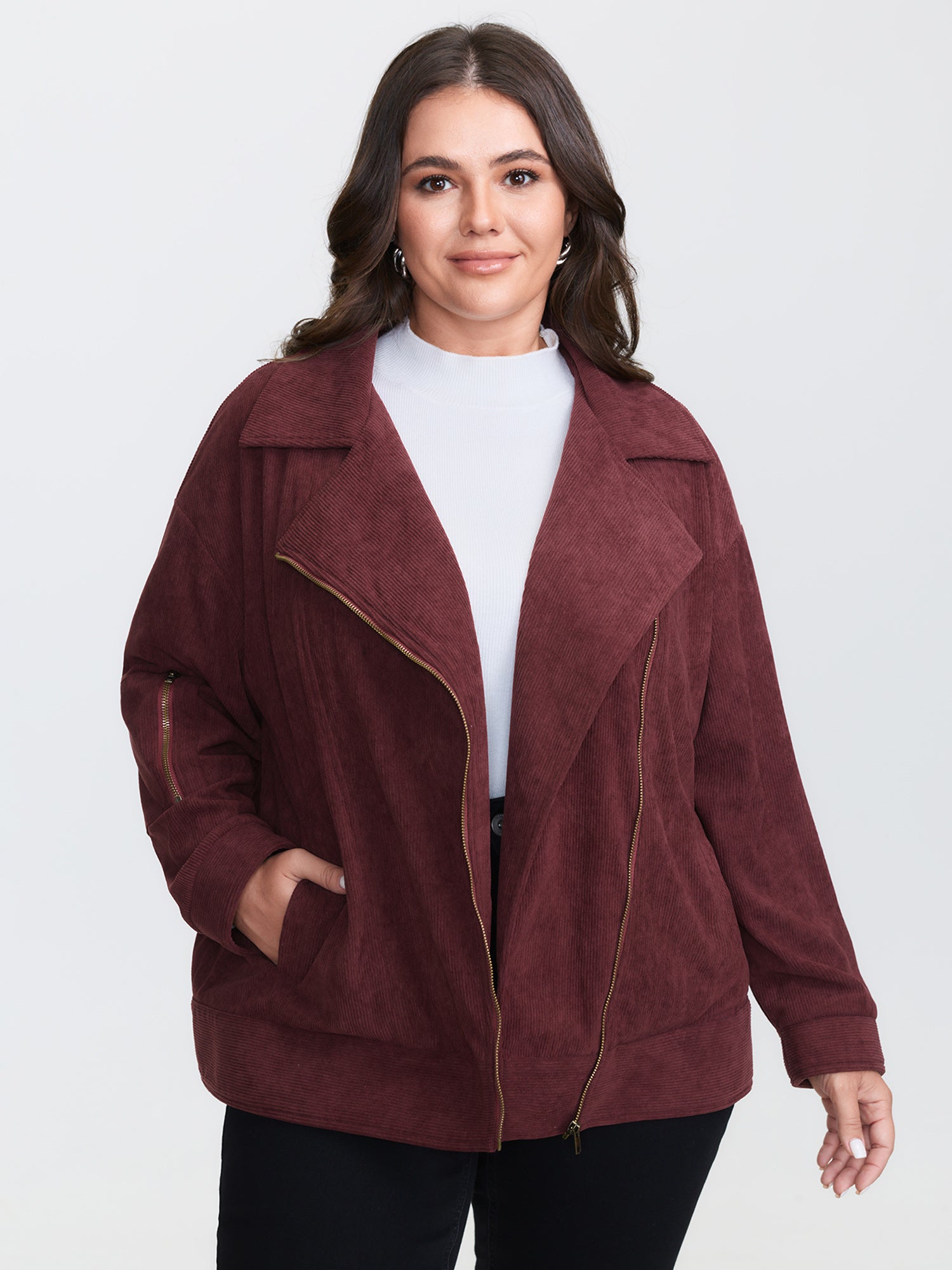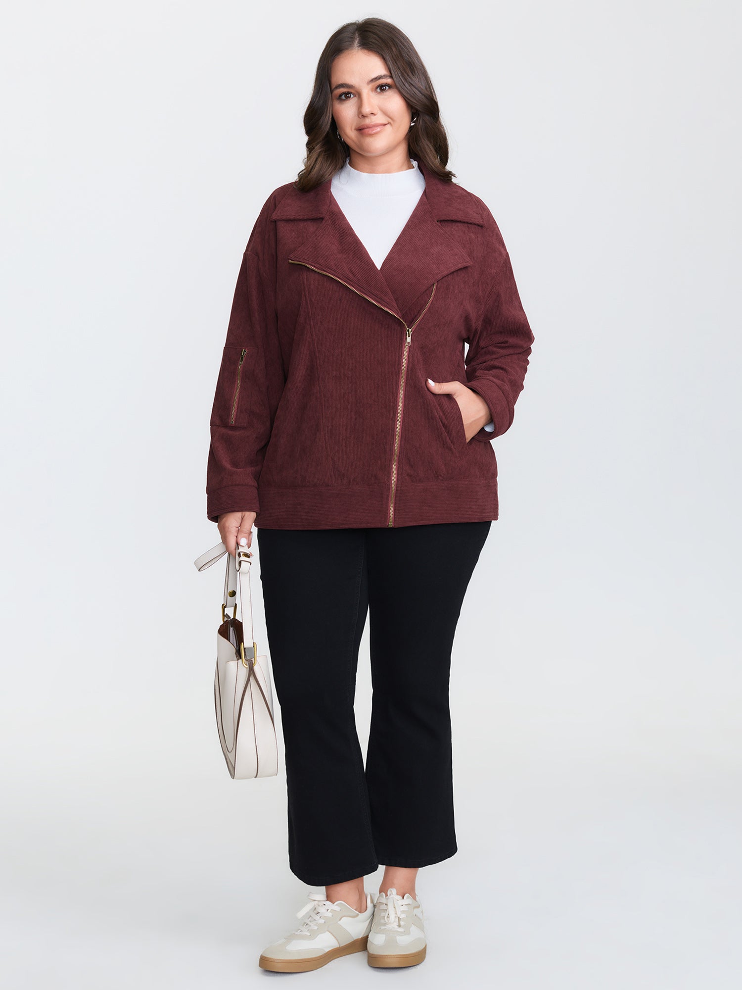 Corduroy Zipper Notched Lapels Pocket Jacket