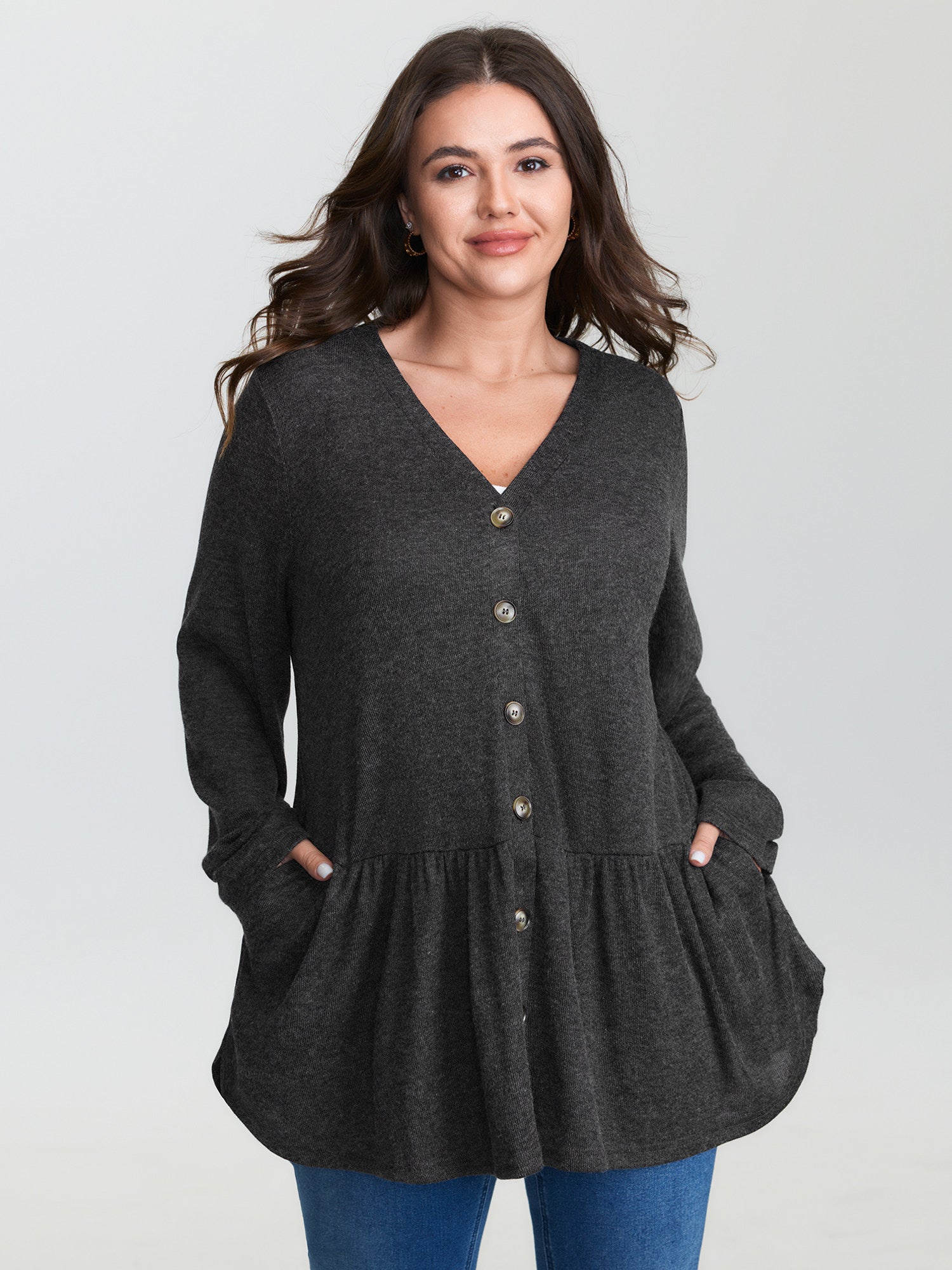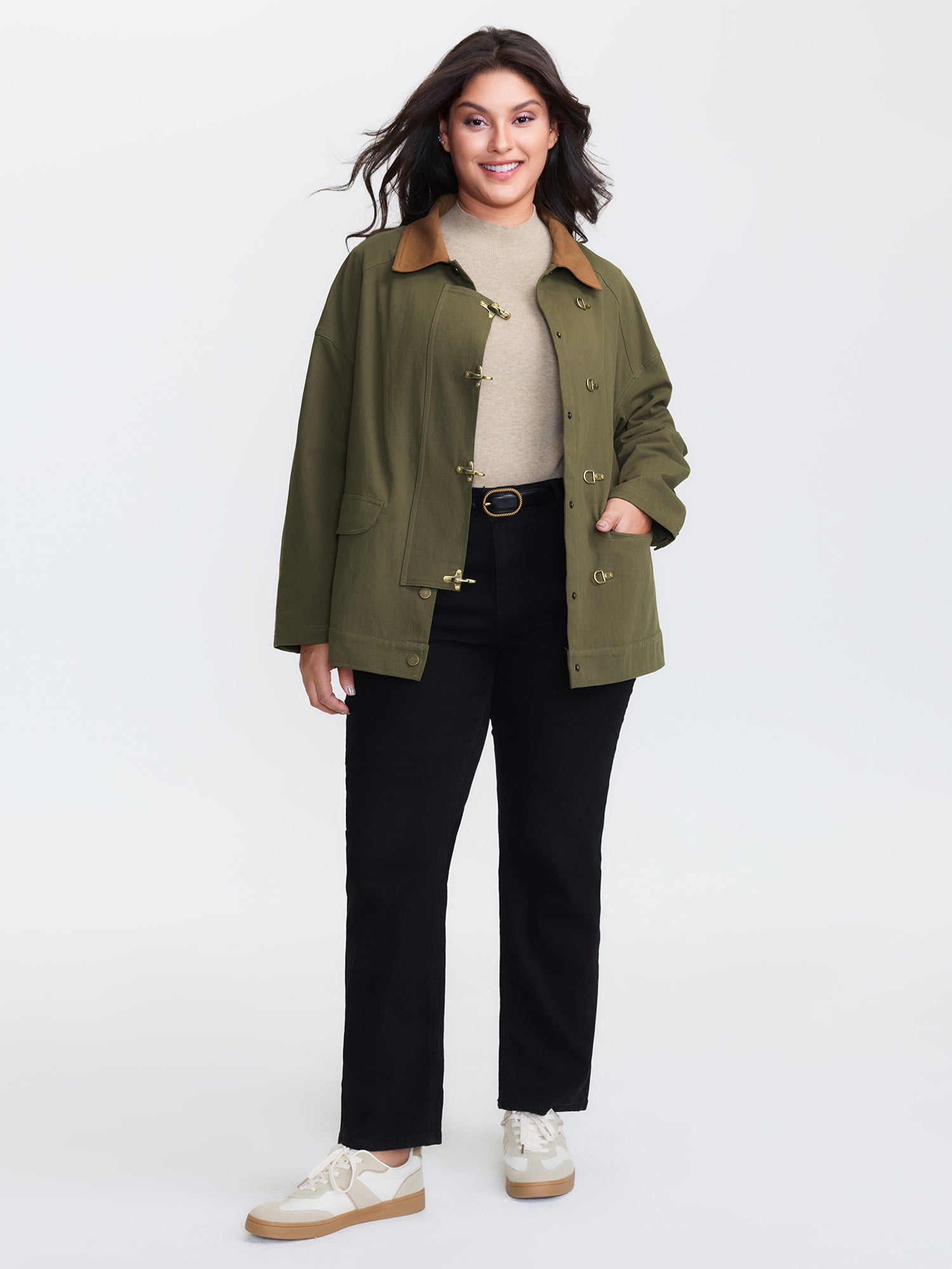 Loop Buttons Pockets Relaxed-Fit Jacket