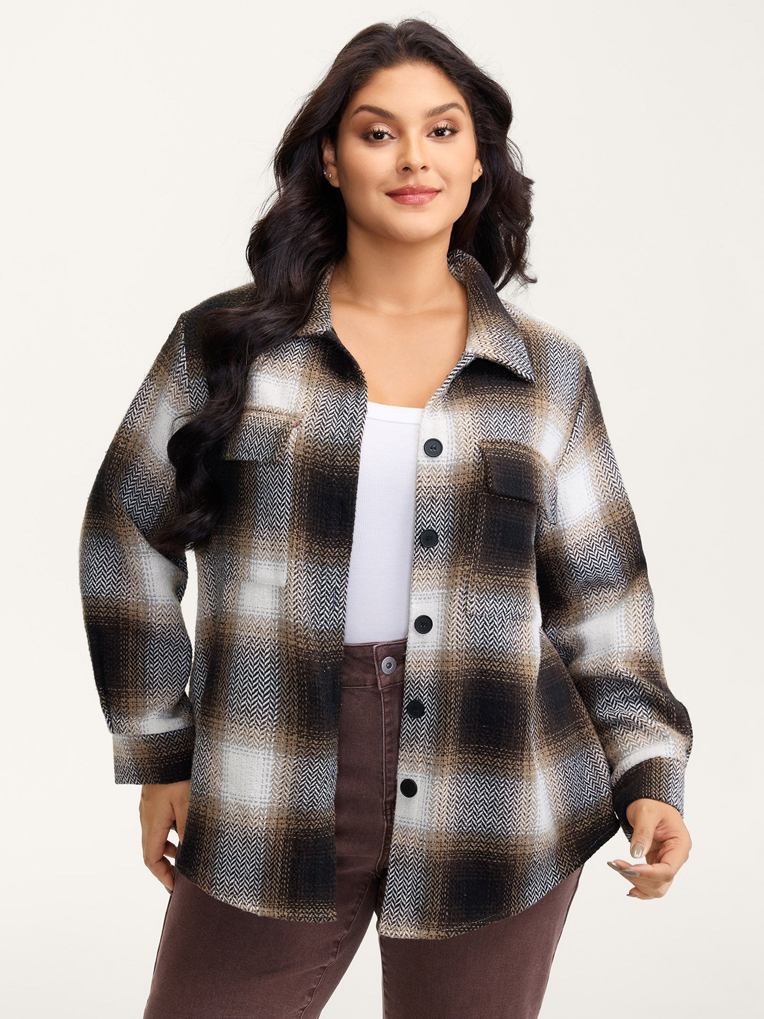 Plaid Pattern Fuzzy Collar Zipper Jacket