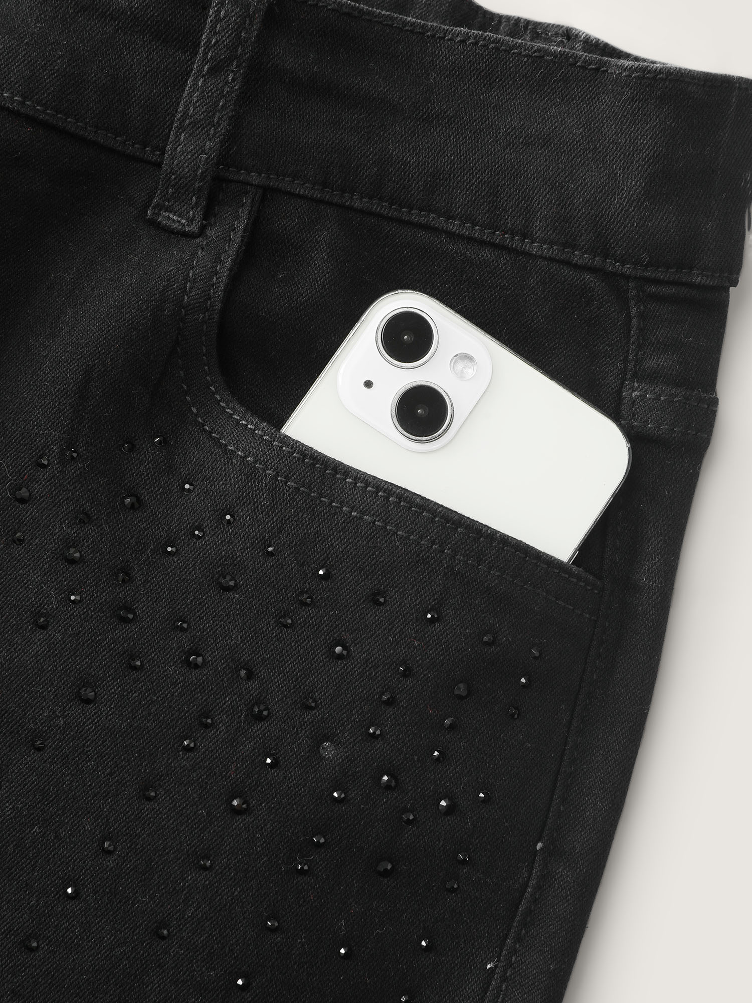 • Stretchy Hot-Fixed Rhinestone Skinny-Fit Jeans