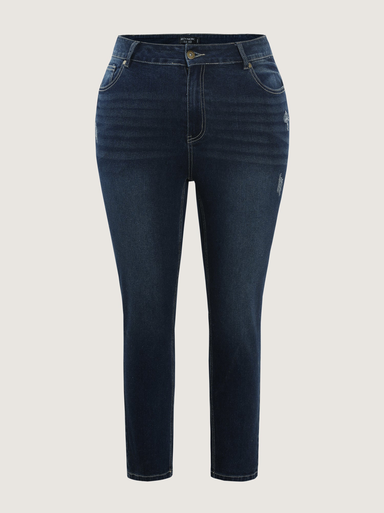 Shop Stretchy Mid-Rise Skinny Fit Jeans now and redefine your style with confidence at BloomChic. Tailored for mid and plus-size women. This trendy Denim Women, sizes 10-30. Color:Blue Vintage;Style:Leisure;Prints:Non;Details:Distressed;Pocket:Slanted pocket;Belt:No-belt;Closure Type:Non;Wash:Dark Wash