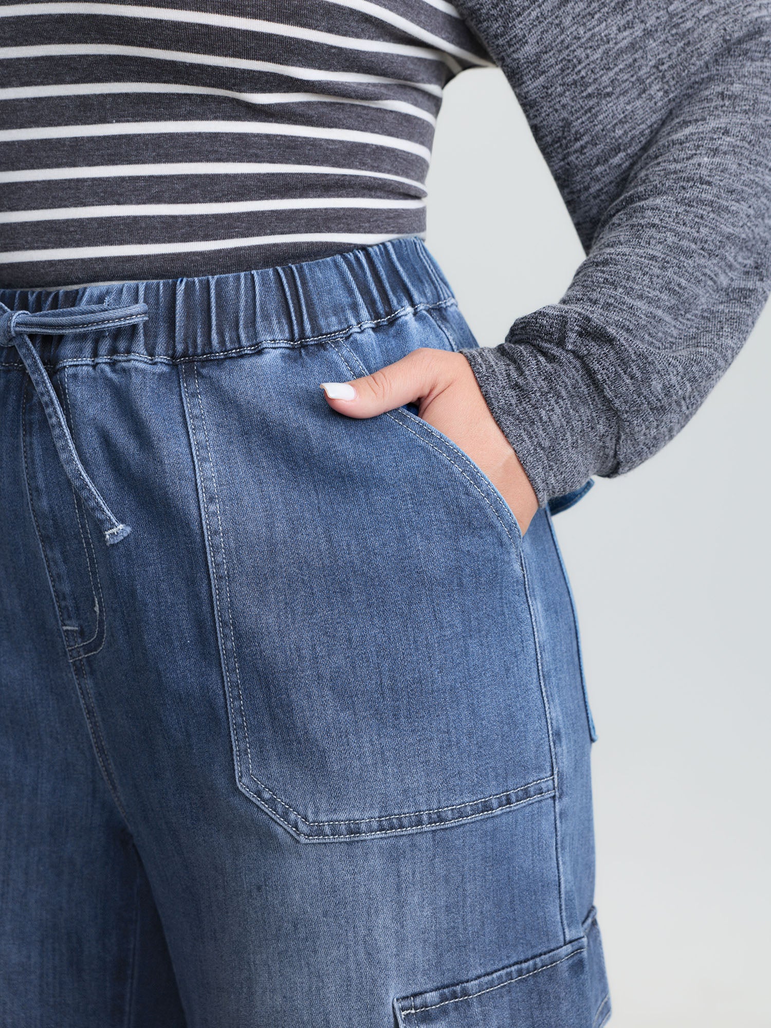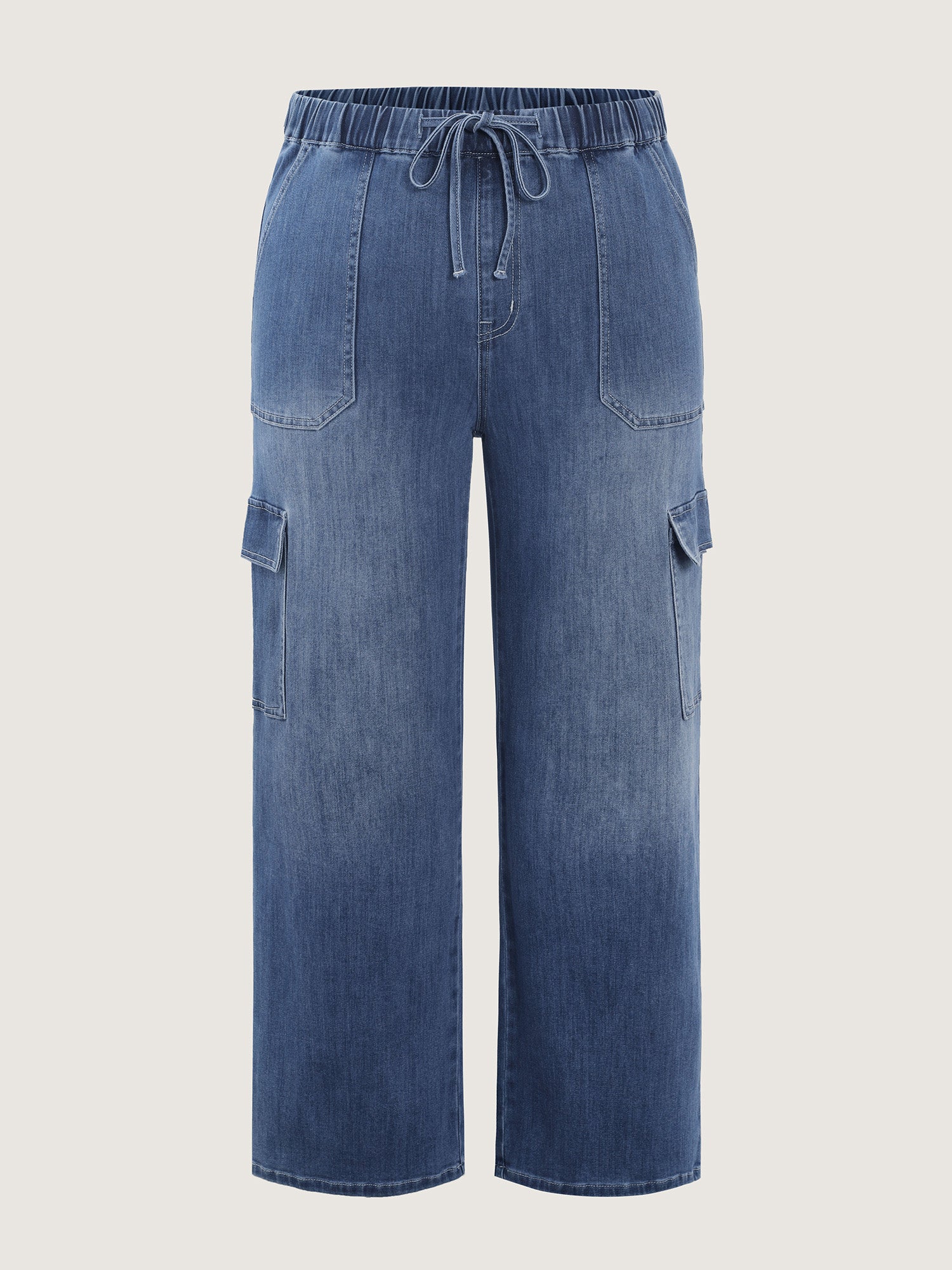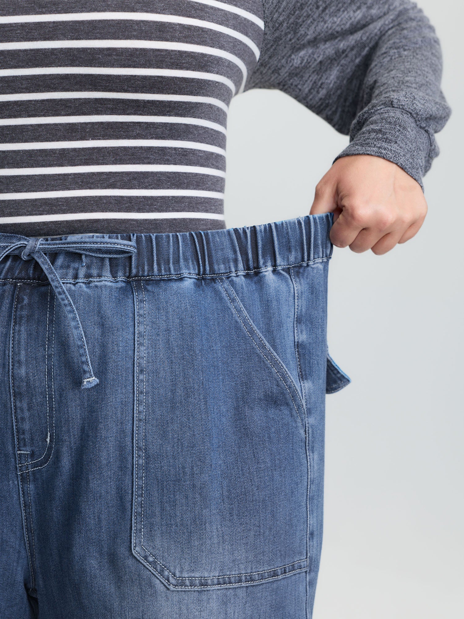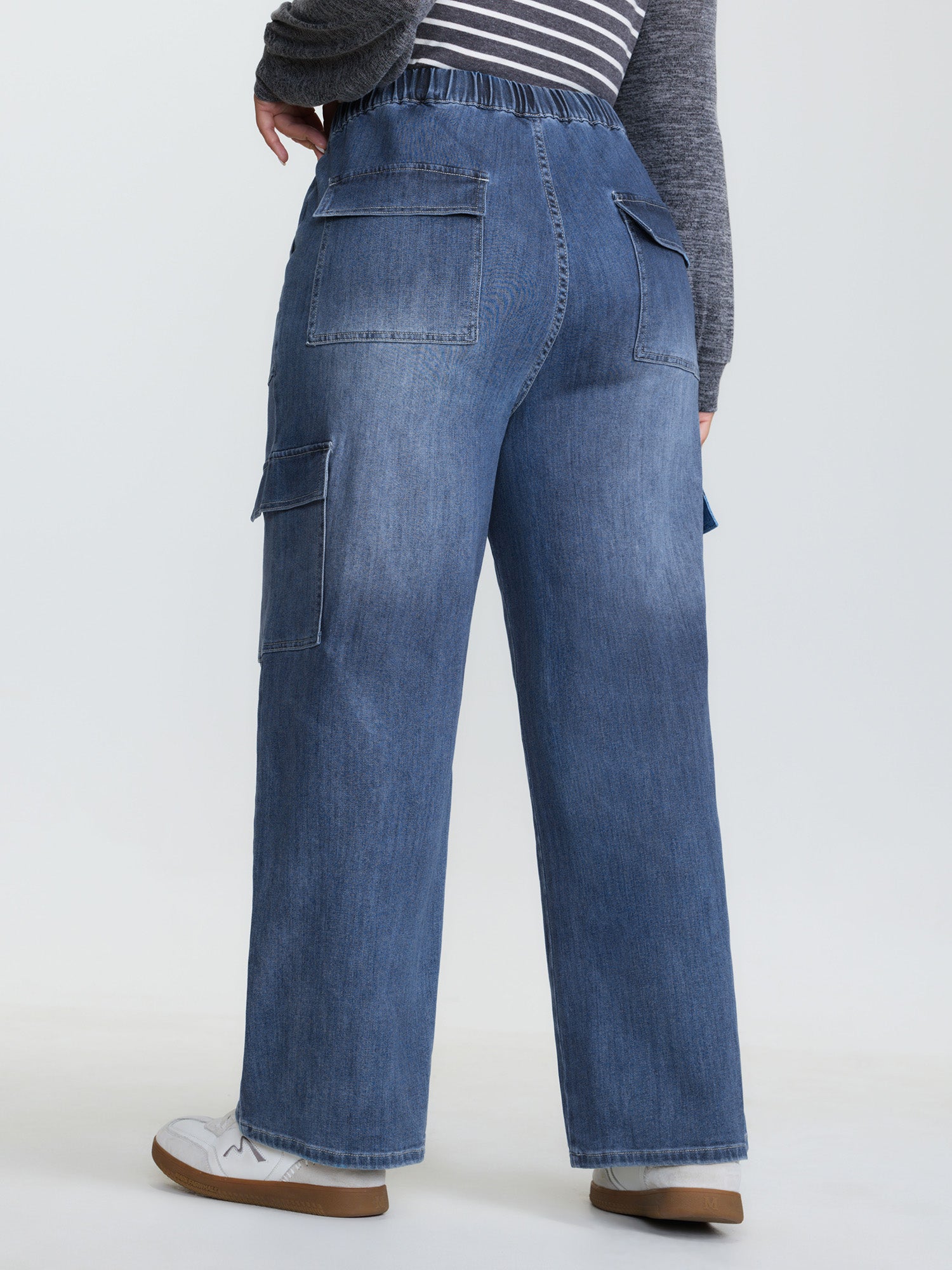 Shop Supersoft Stretchy Back Waistband Wide-Leg Jeans now and redefine your style with confidence at BloomChic. Tailored for mid and plus-size women. This trendy Denim Women, sizes 10-30. Color:Mid Blue;Style:Leisure;Prints:Non;Pocket:Slanted pocket;Belt:Belt;Closure Type:Non;Wash:Medium Wash