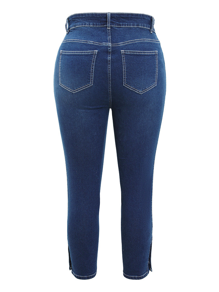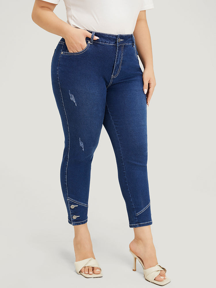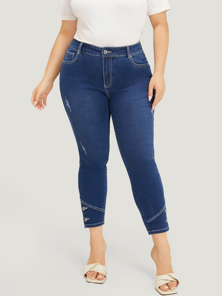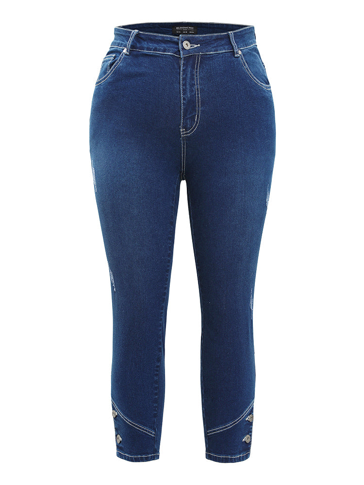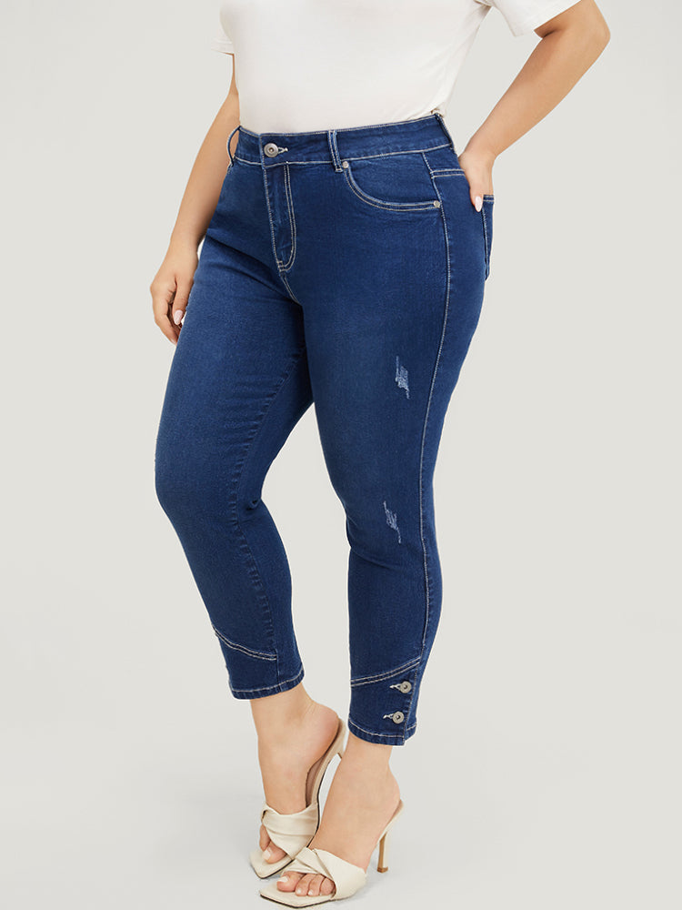 Shop Very Stretchy High Rise Dark Wash Button Hem Jeans now and redefine your style with confidence at BloomChic. Tailored for mid and plus-size women. This trendy Denim Women, sizes 10-30. Season:Summer;Color:Indigo;Style:Casual;Pattern Type:Plain;Details:Button;Belt:No-belt;Wash:Dark Wash