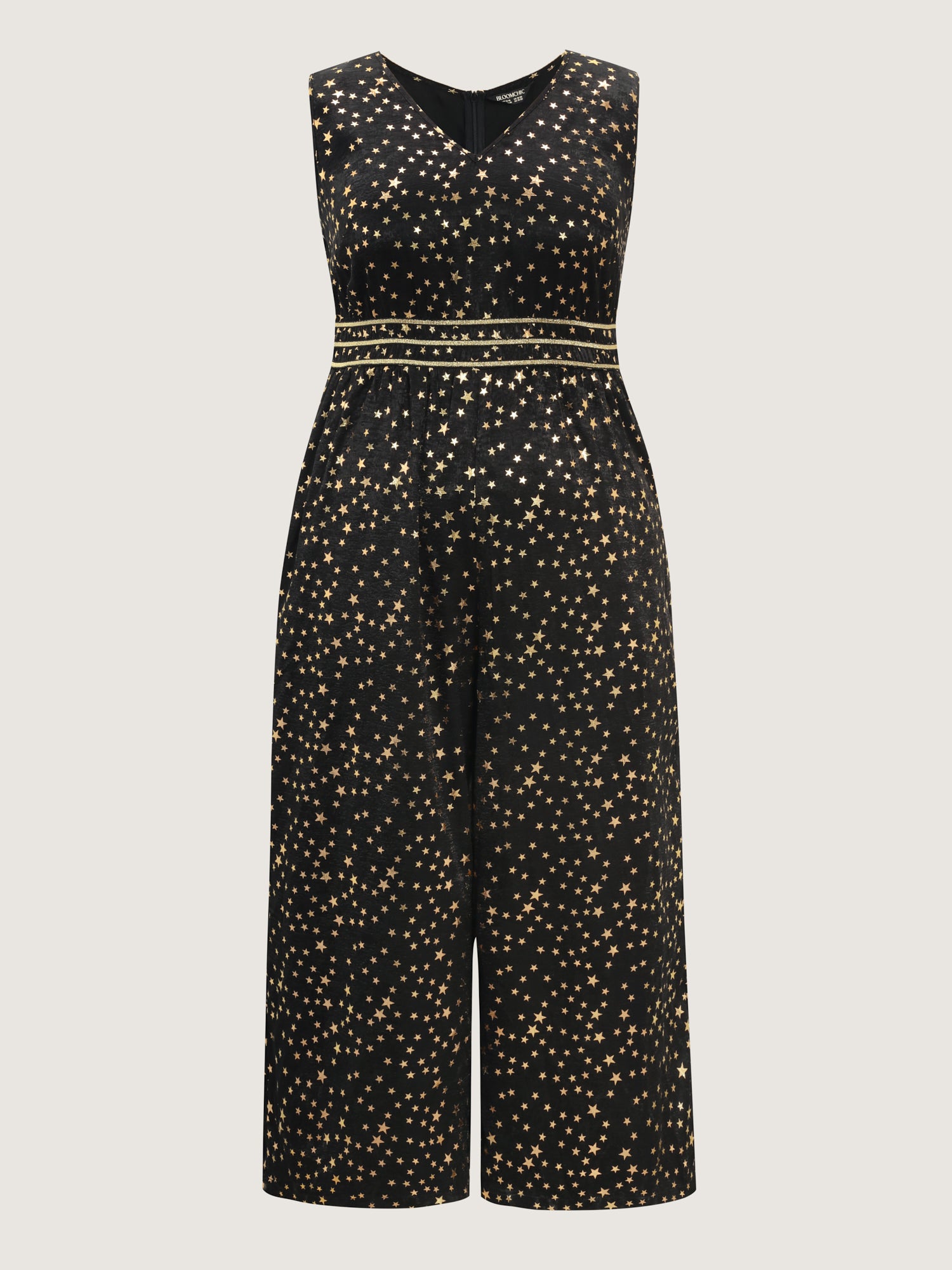 Shop Geometric Print Color Contrast Jumpsuit now and redefine your style with confidence at BloomChic. Tailored for mid and plus-size women. This trendy Jumpsuits Women, sizes 10-30. Color:Black Flower;Style:Party&Cocktail;Neckline:Flat collar with V-notch;Sleeve Type:Sleeveless;Prints:Stars and moons;Pocket:No-pocket;Belt:No-belt;Closure Type:Non