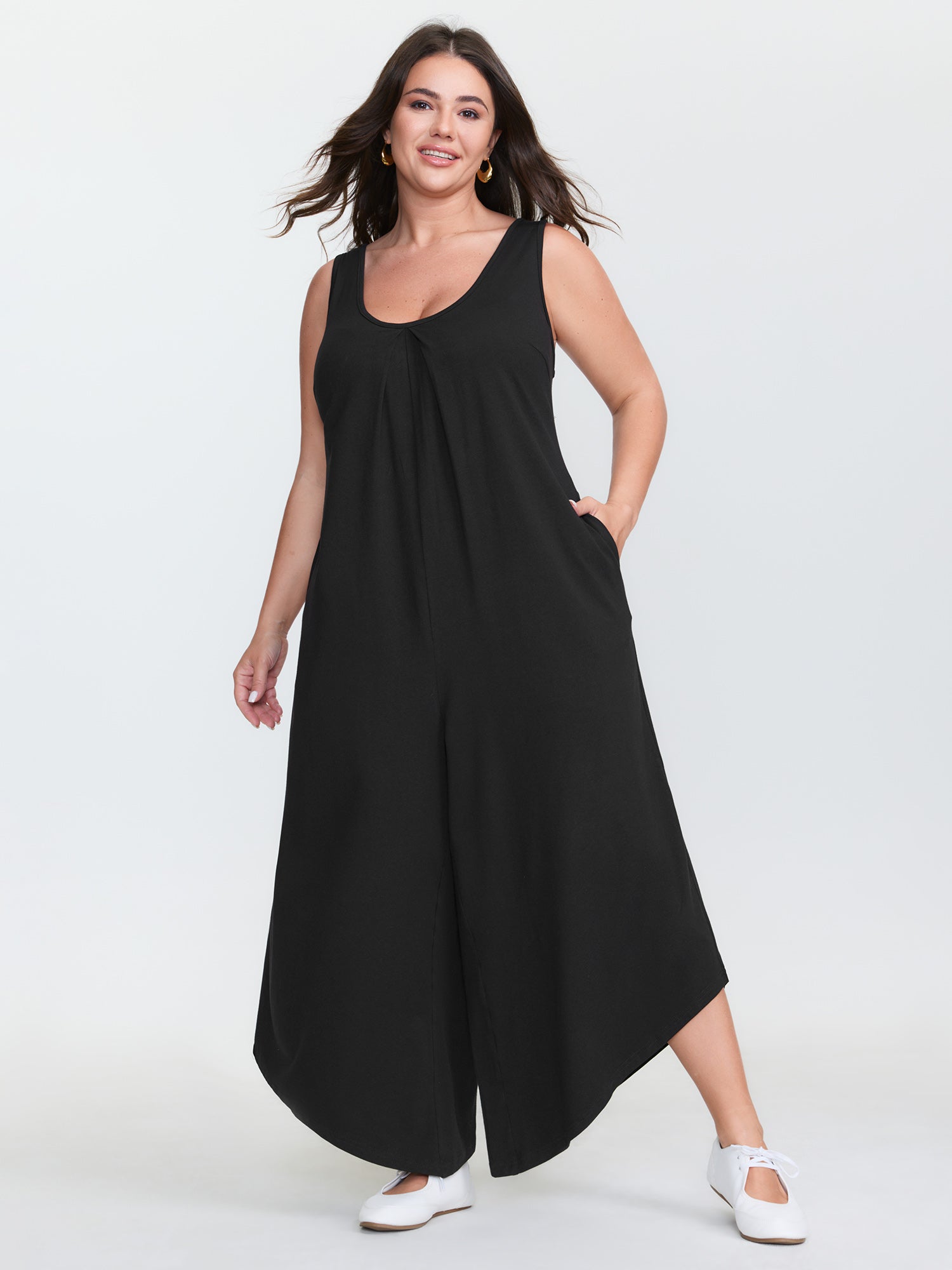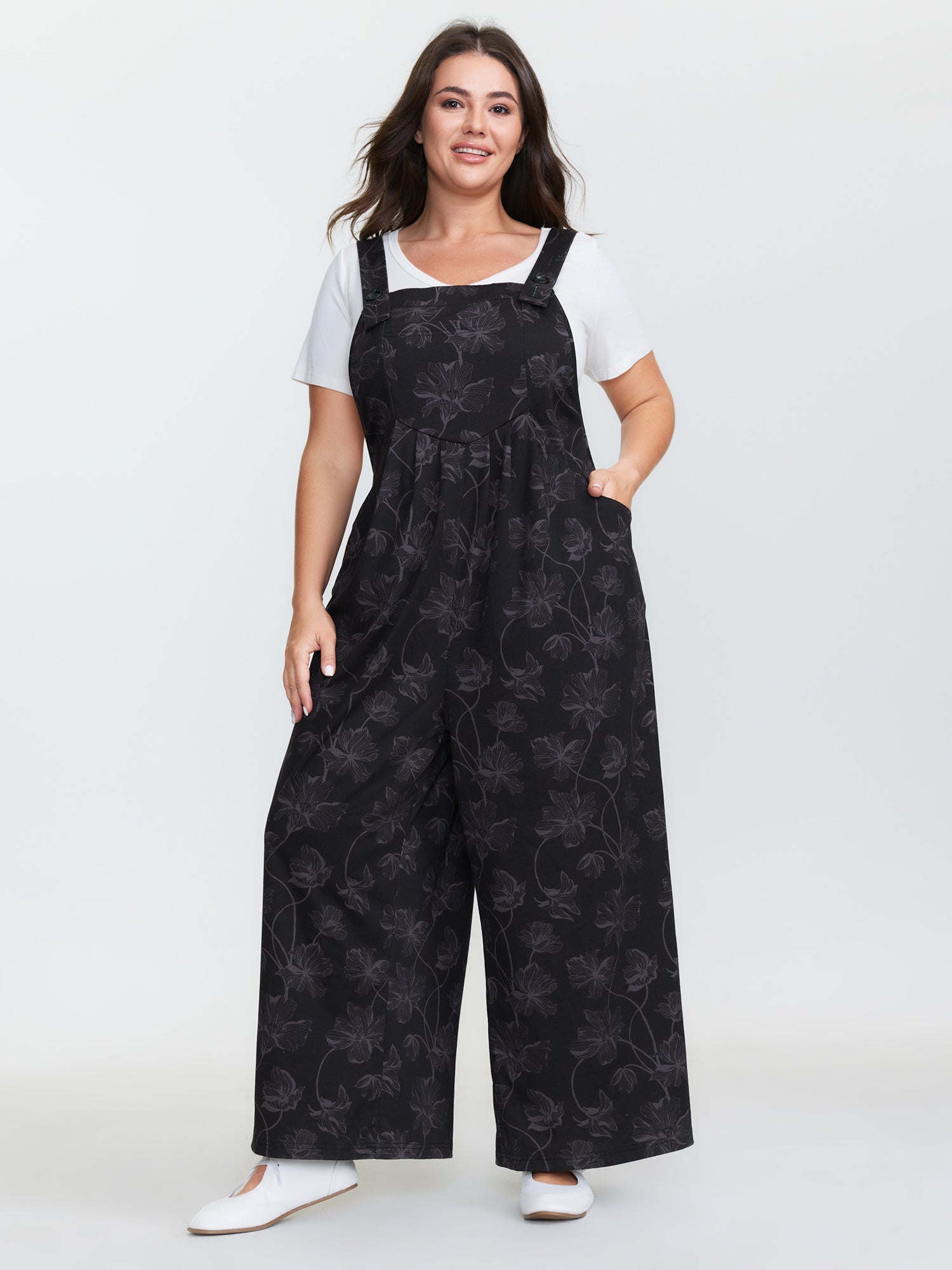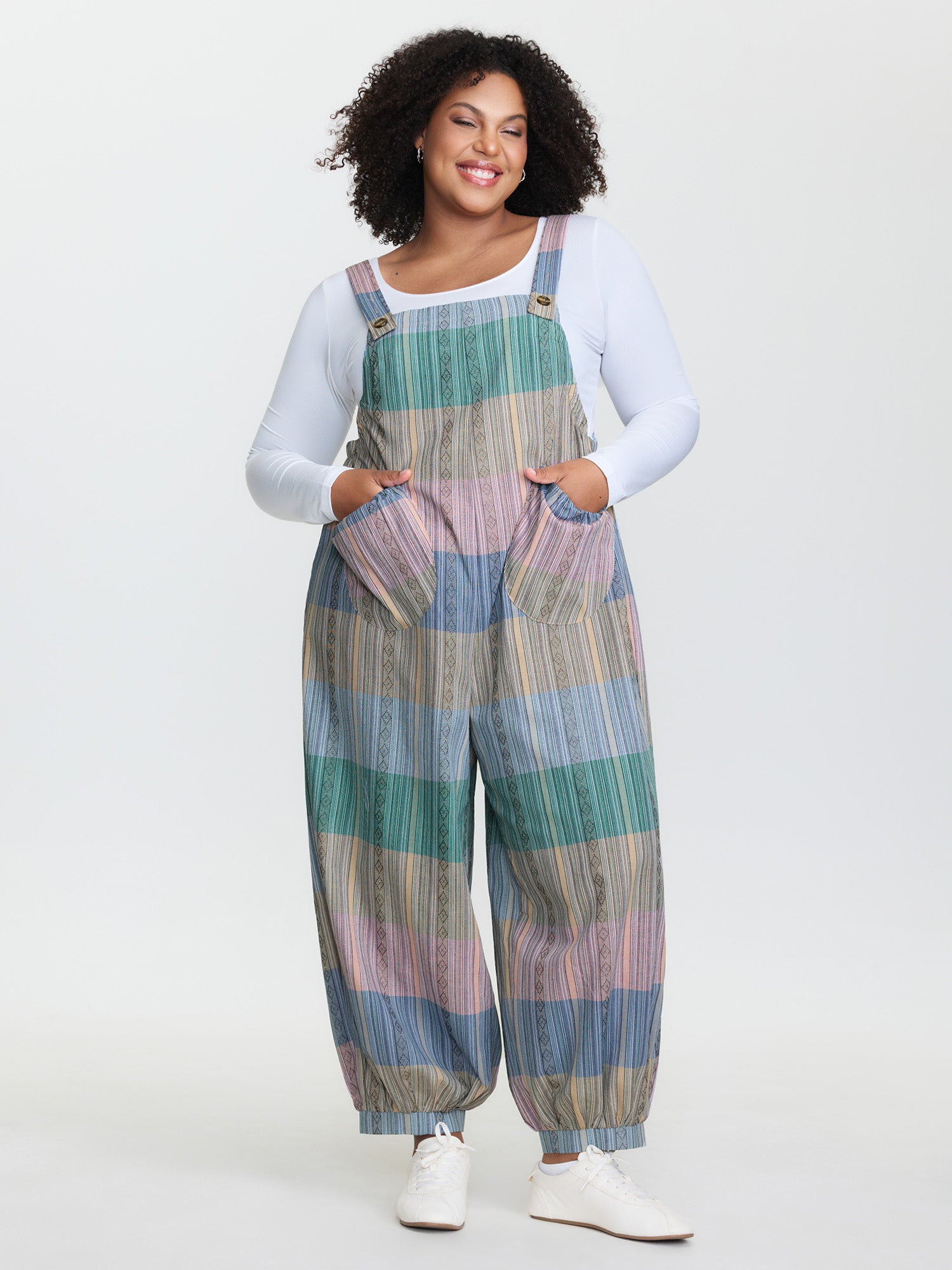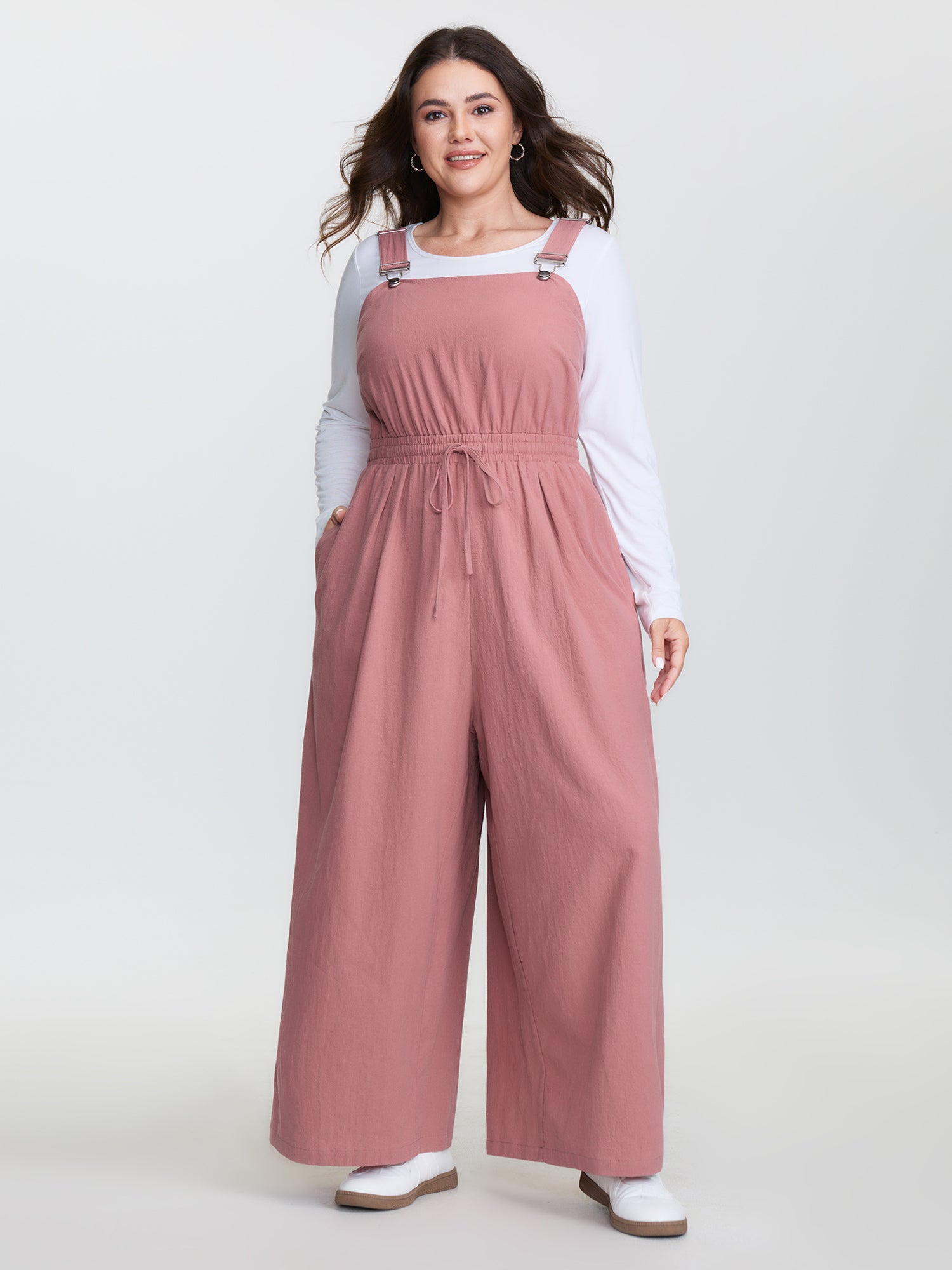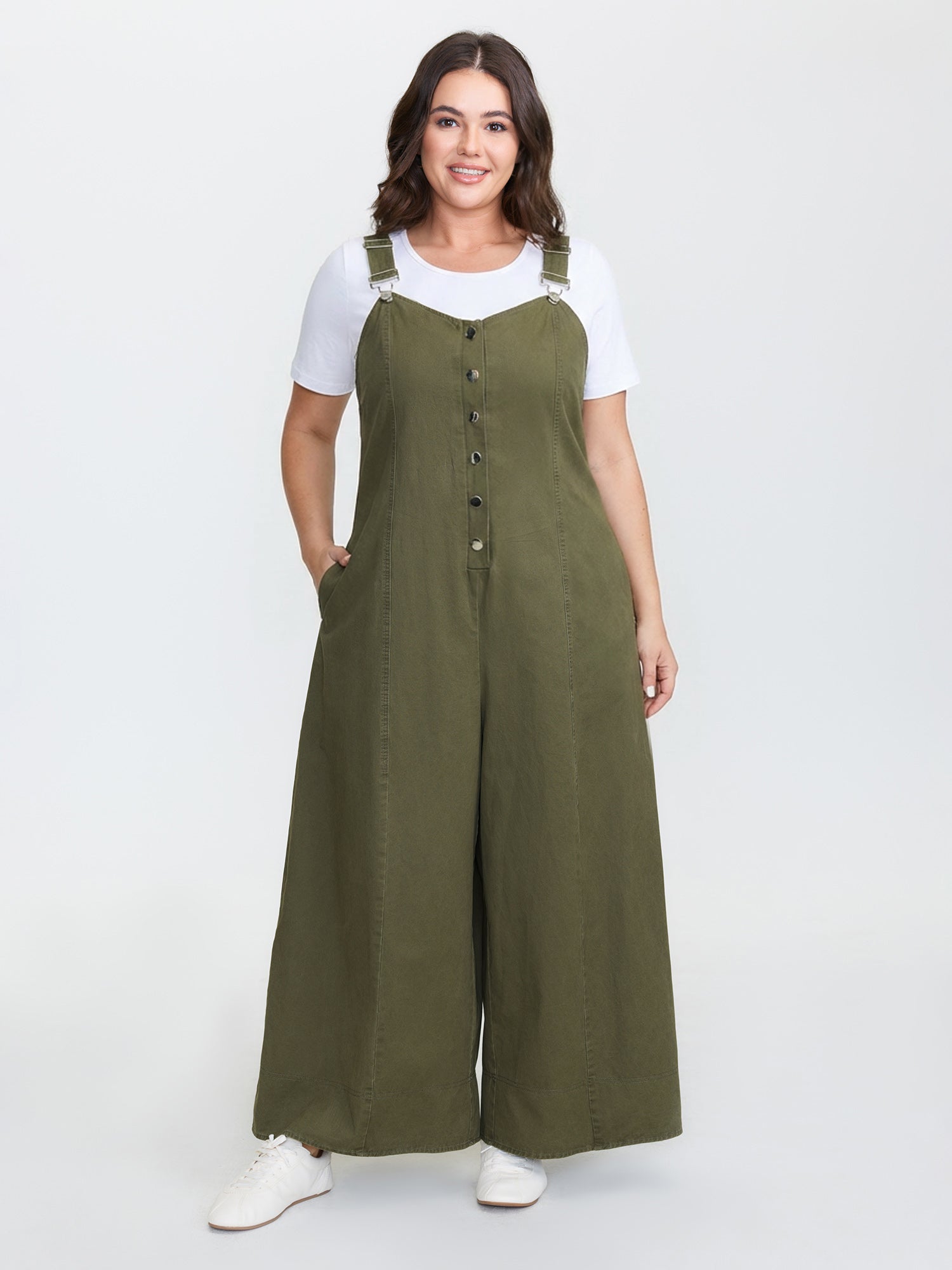 Adjustable Curvy Hem Pockets Overall Jumpsuit