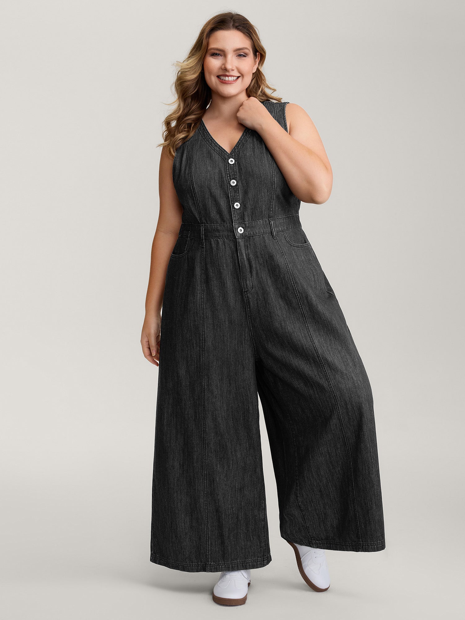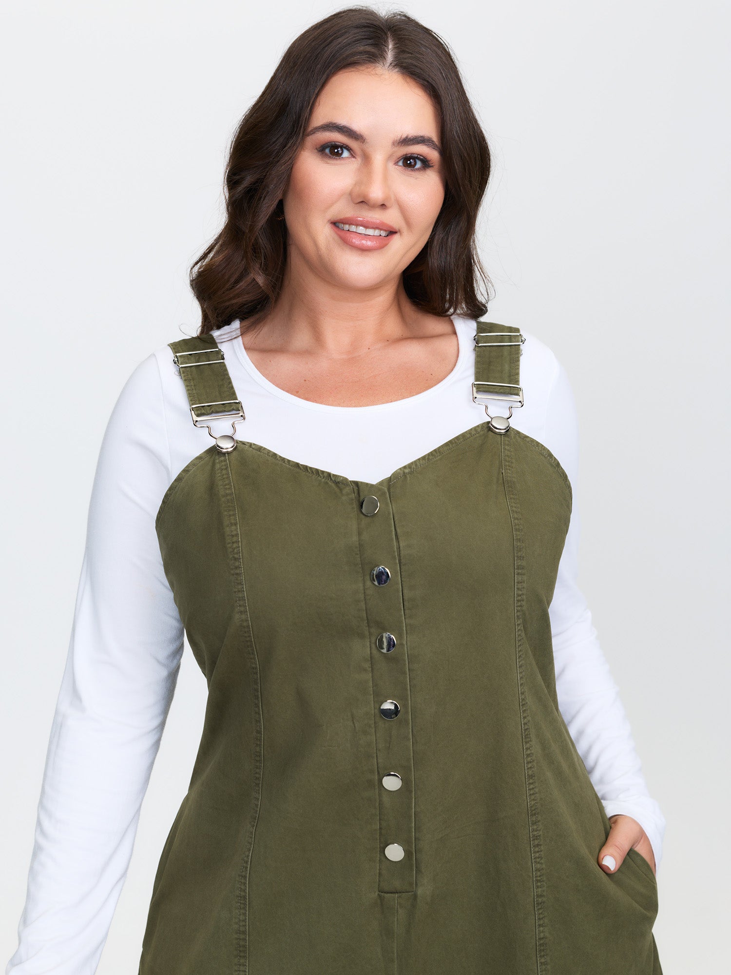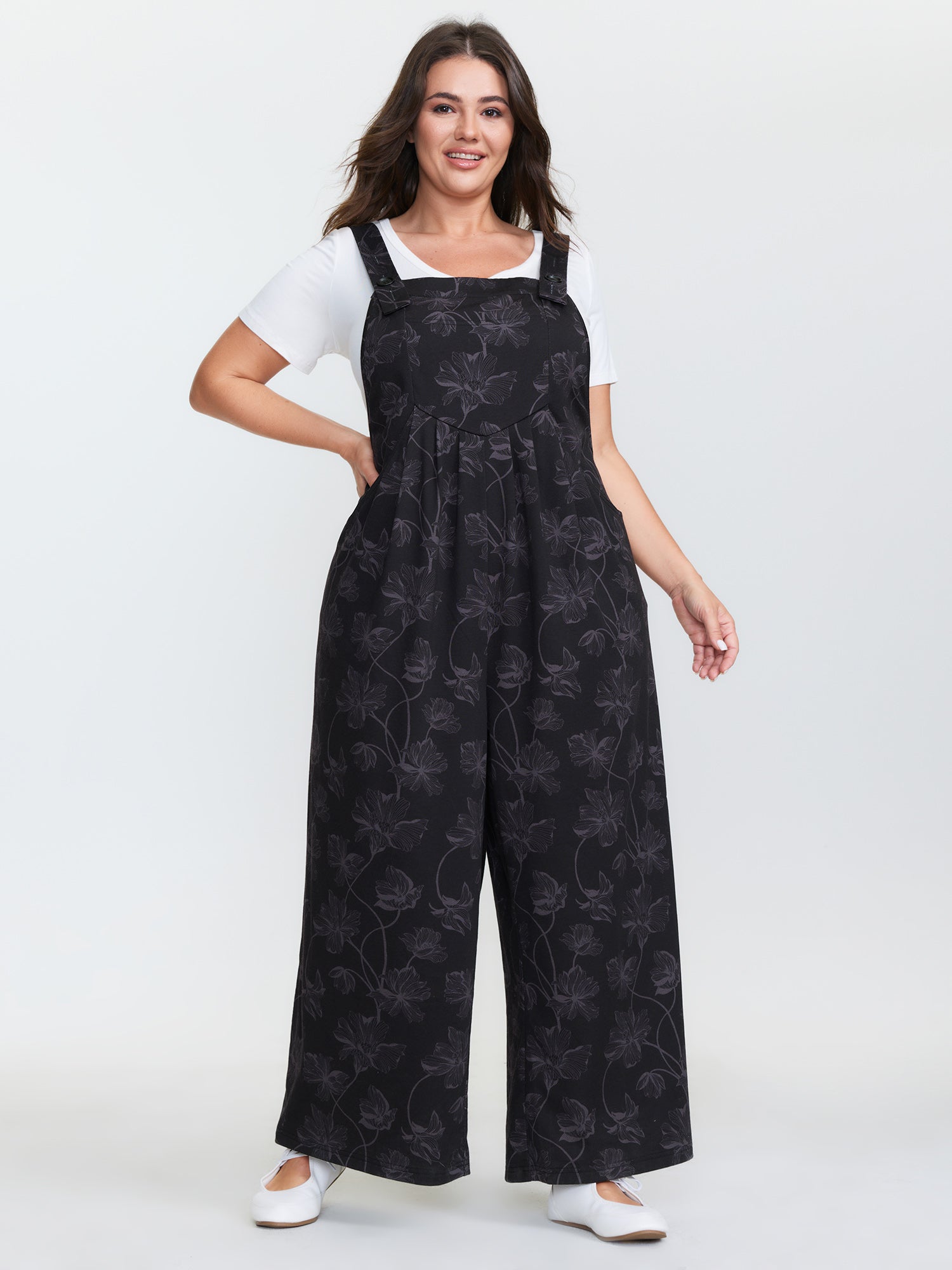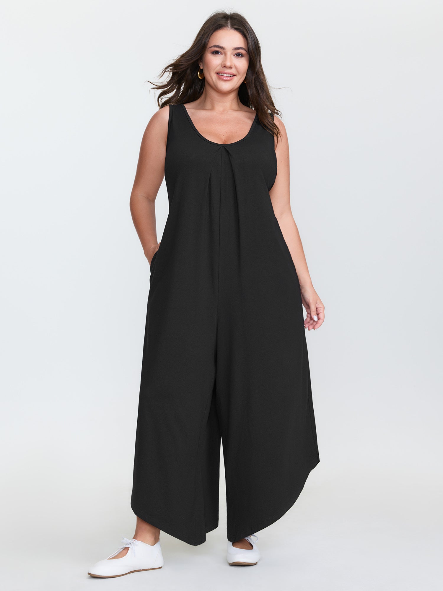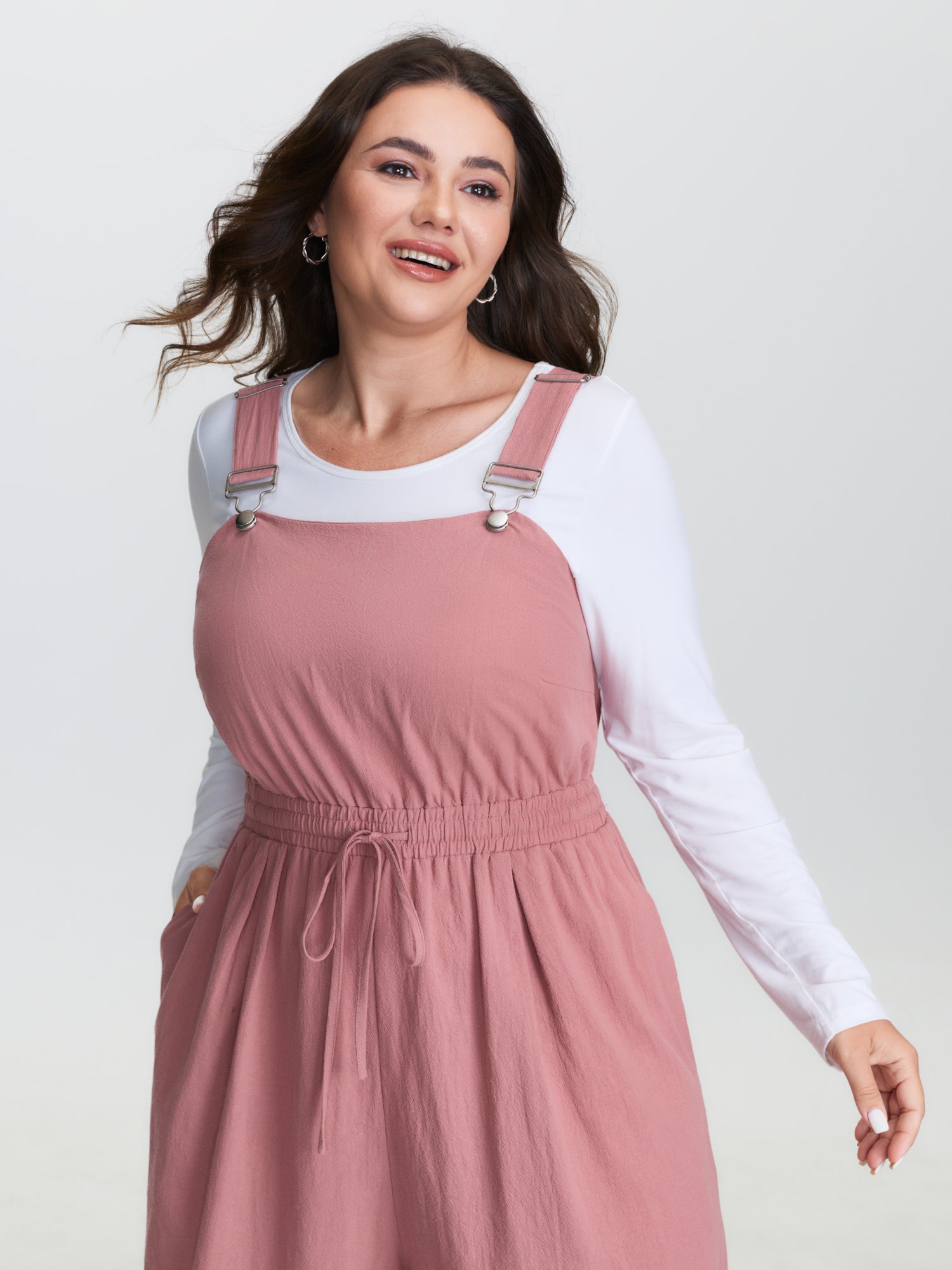 Adjustable Curvy Hem Pockets Overall Jumpsuit