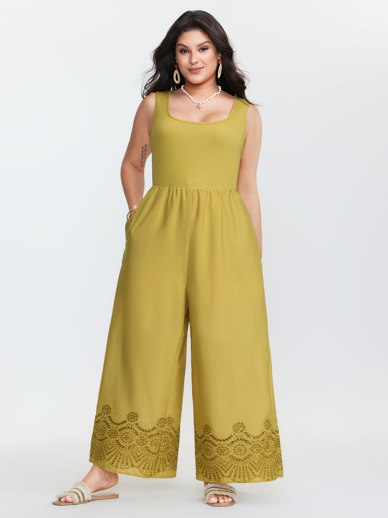Scallop Embroidered Hem Sleeveless Jumpsuit