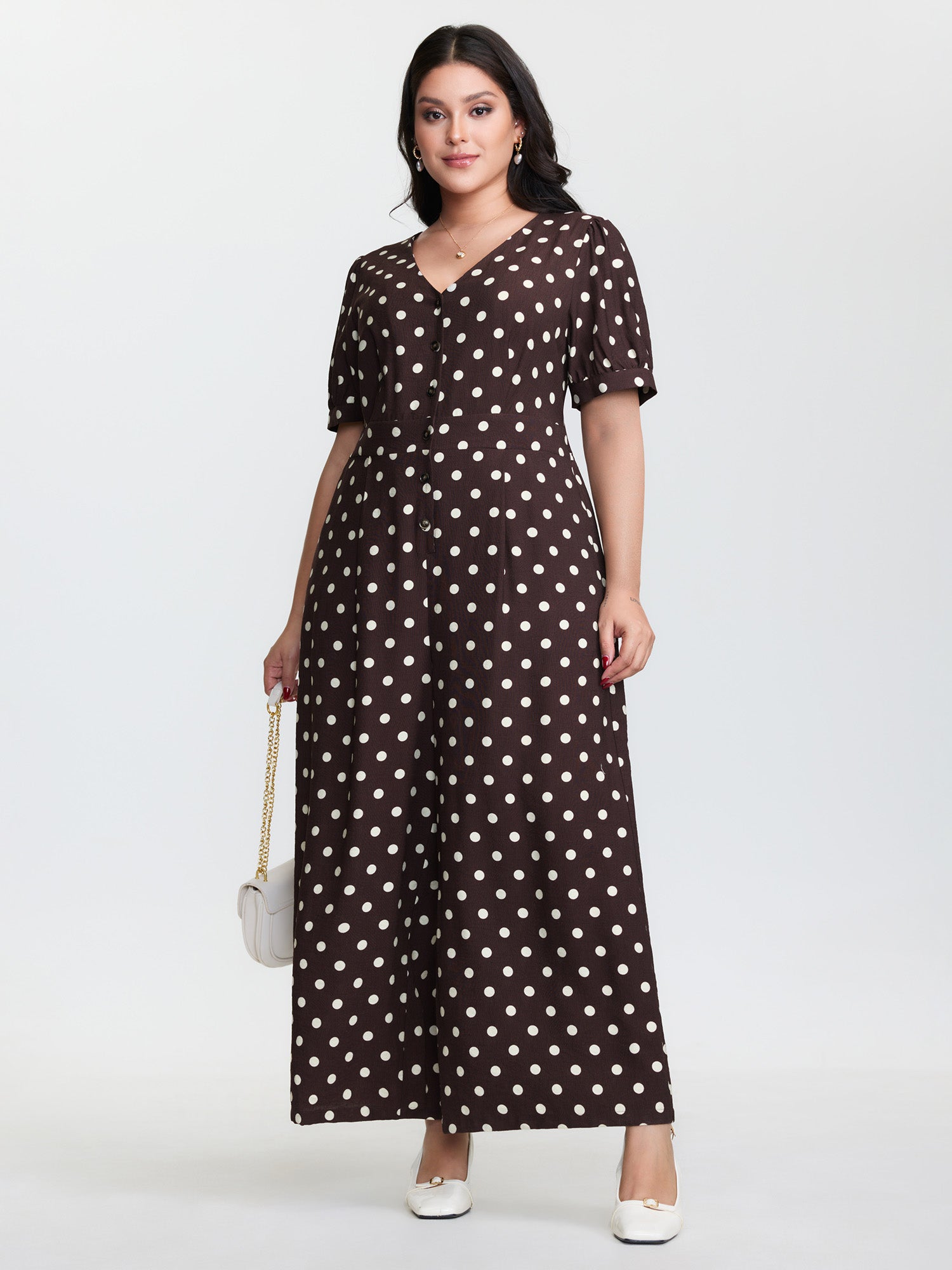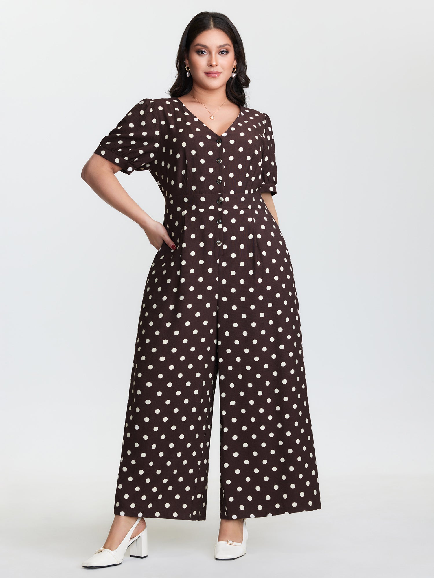 Retro Polka Dots Button Jumpsuit
