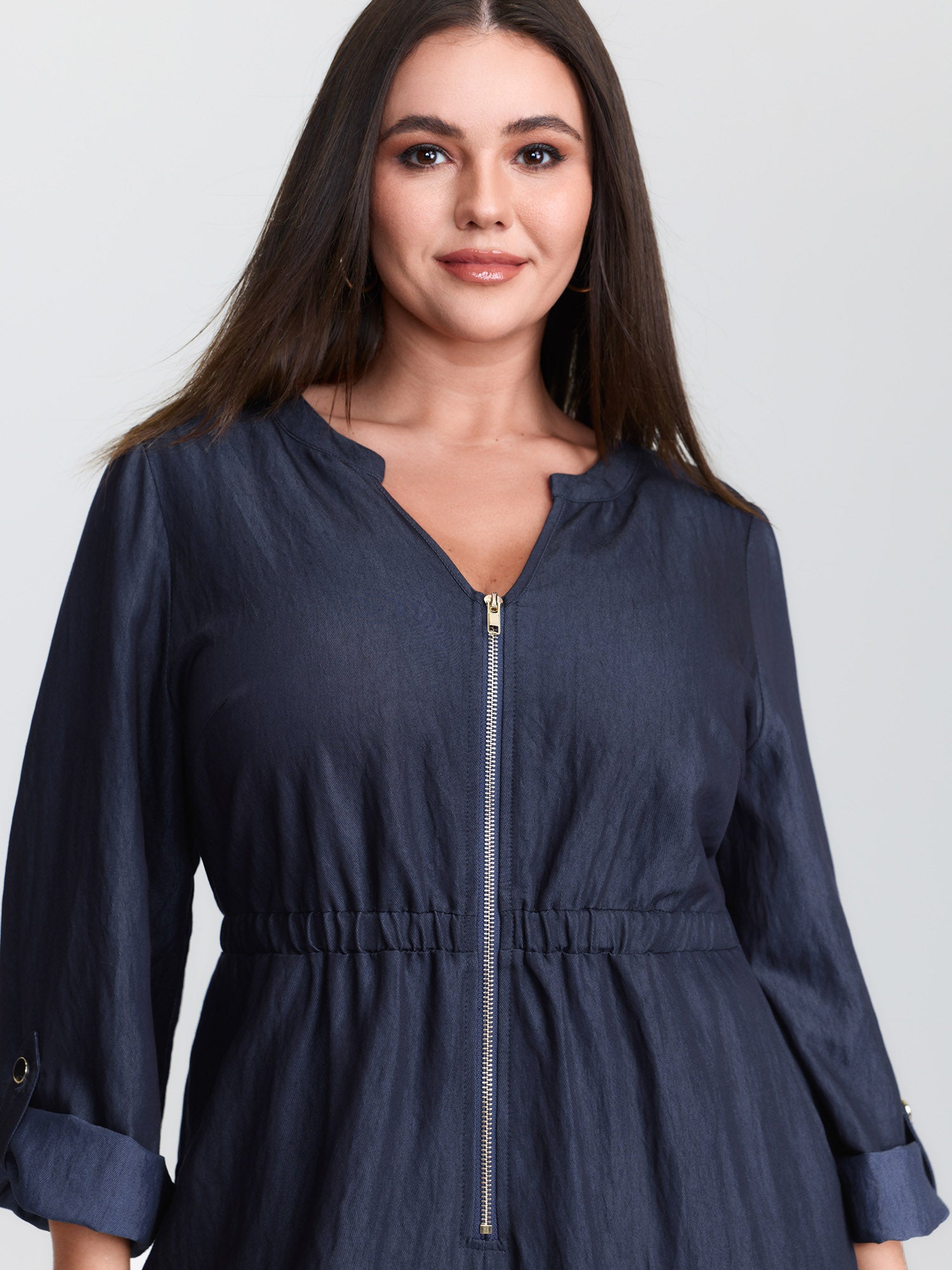 Zipper Front Tab Sleeve Jumpsuit