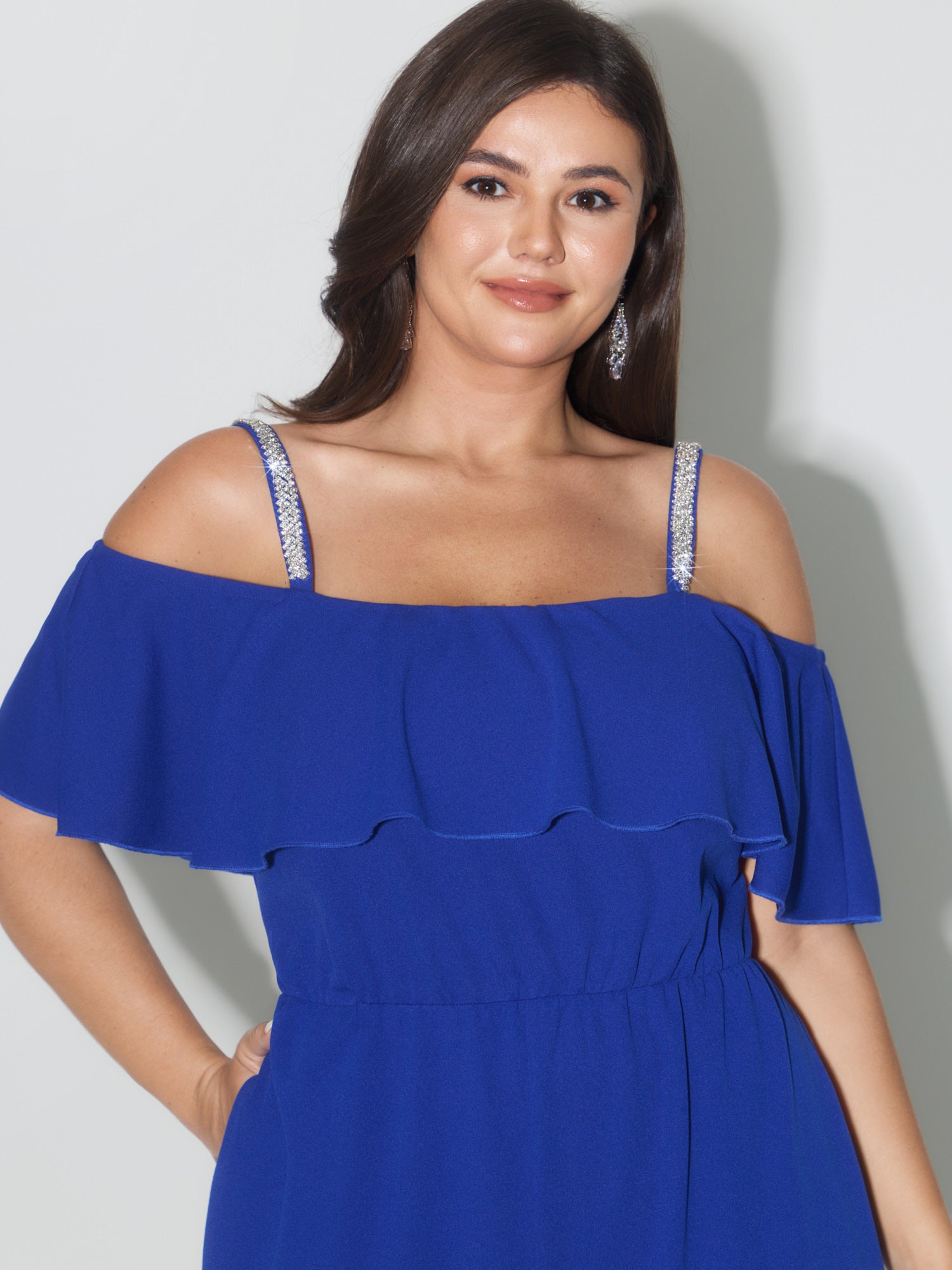 Ruffled Off-Shoulder Waist-Defining Jumpsuit