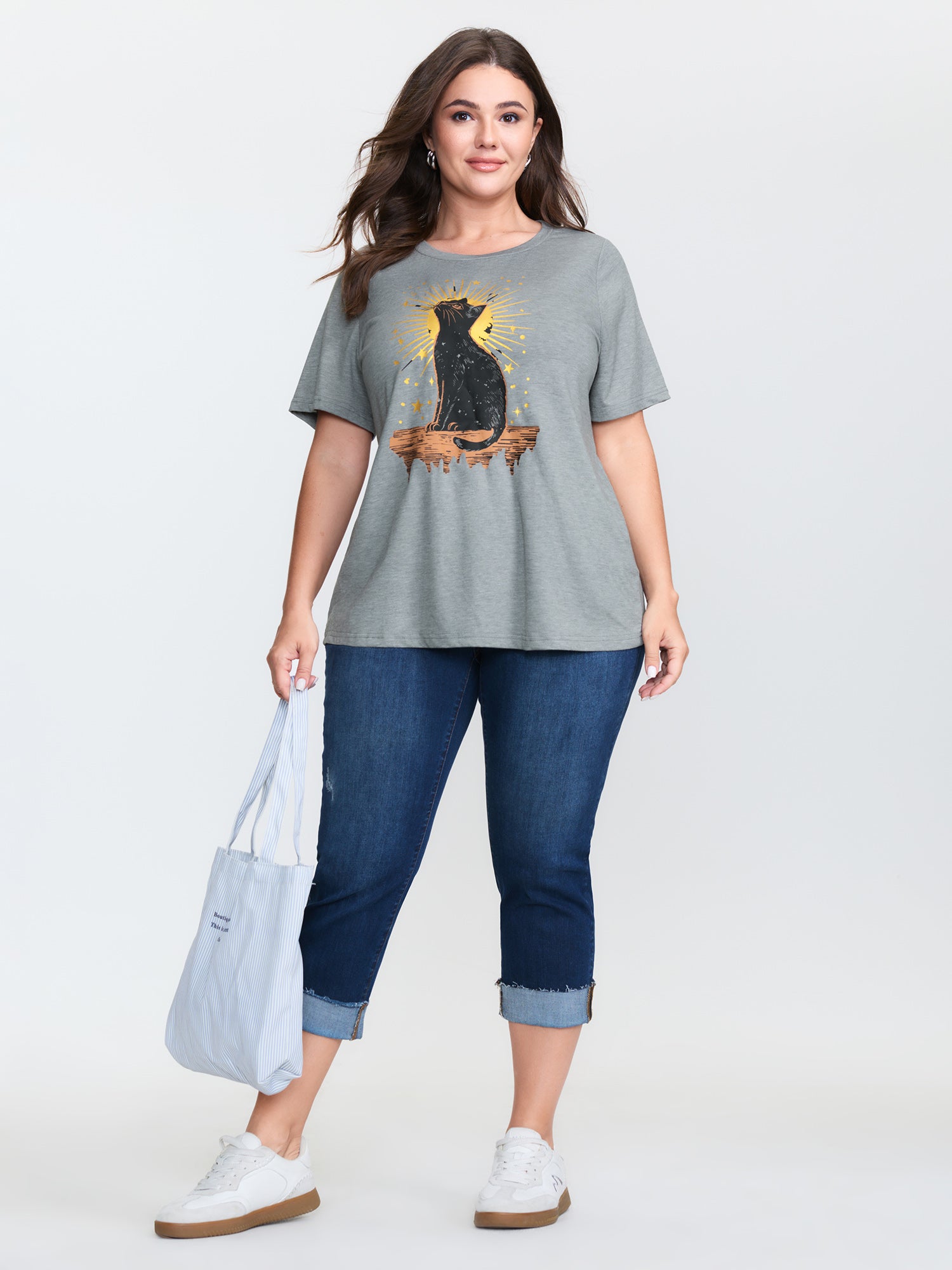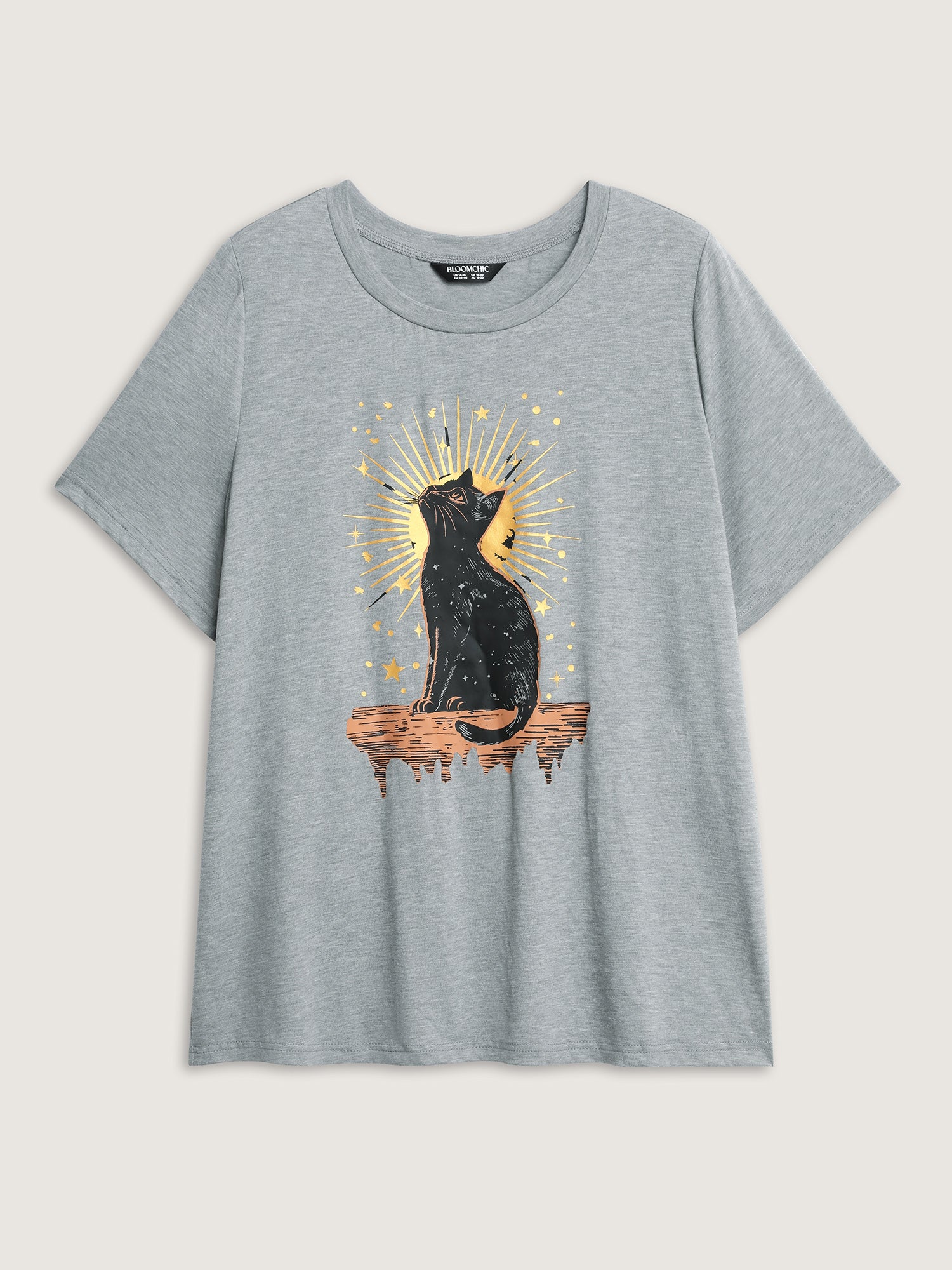 Shop Midnight Cat Print Stretchy T-Shirt now and redefine your style with confidence at BloomChic. Tailored for mid and plus-size women. This trendy Tops Women, sizes 10-30. Color:Light Gray;Style:Leisure;Pattern Type:Animals;Prints:Non;Neckline:Round Neck;Sleeve Type:Regular Sleeve;Pocket:No-pocket