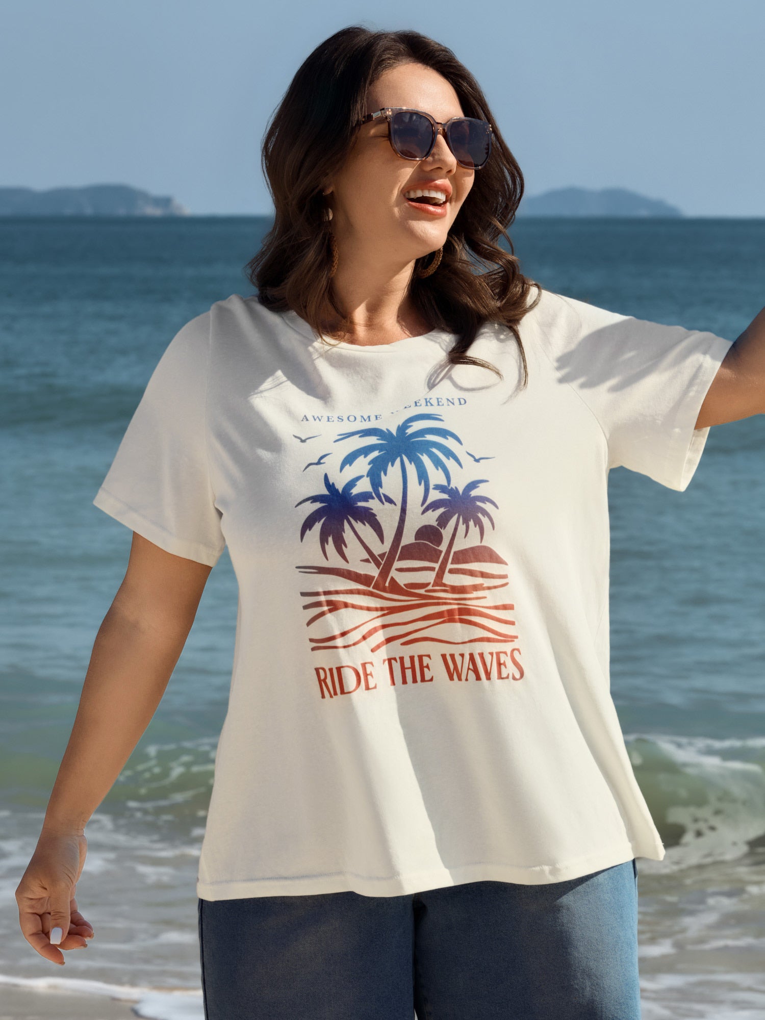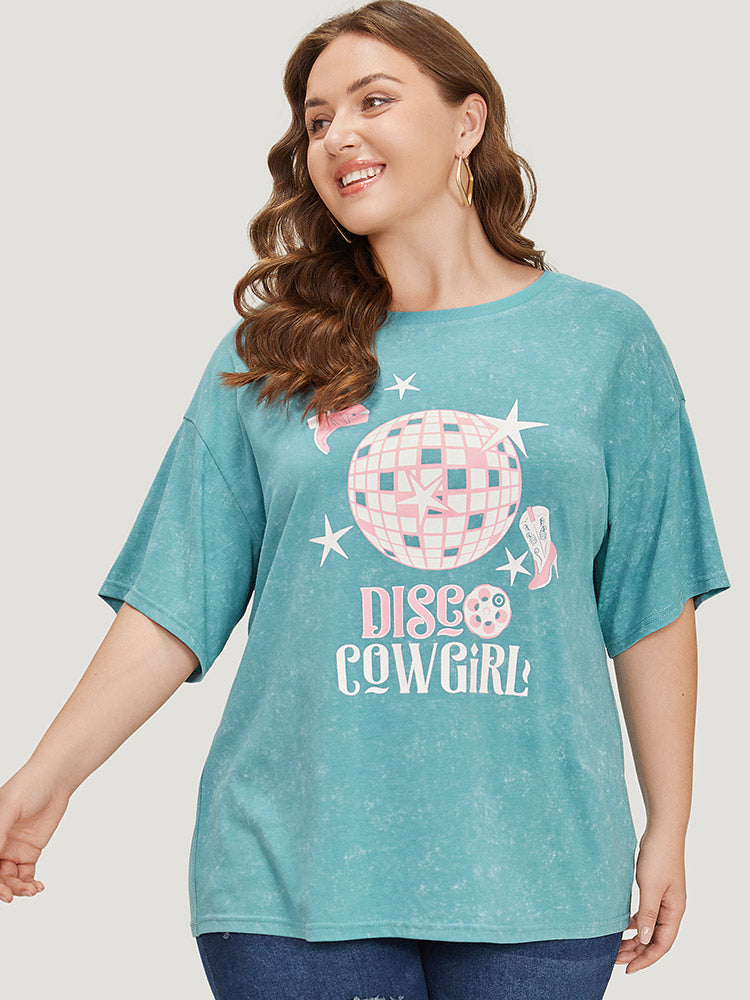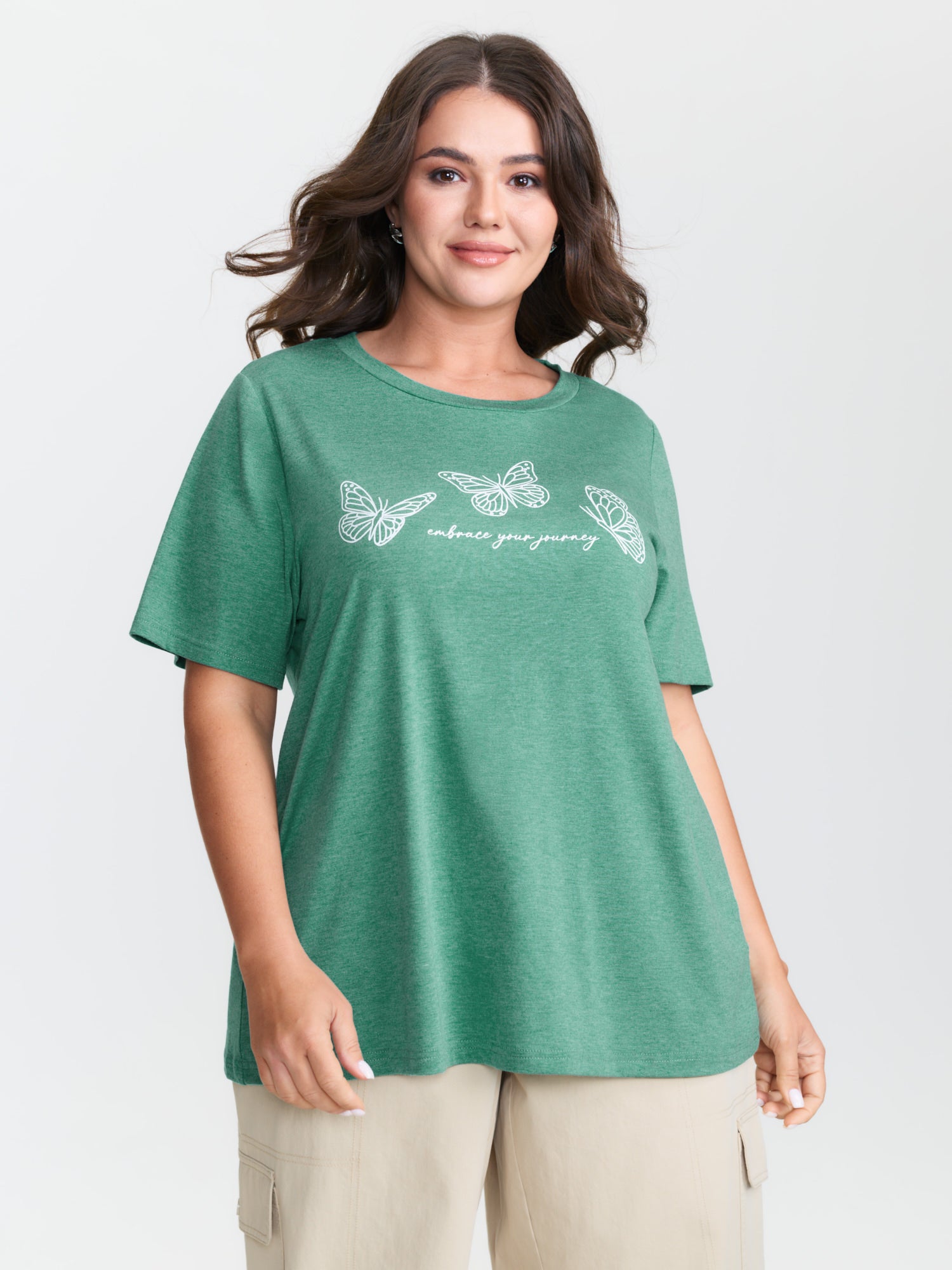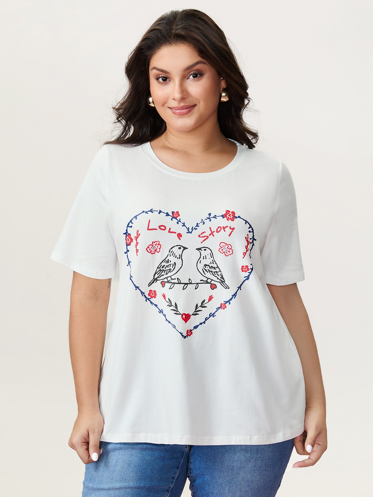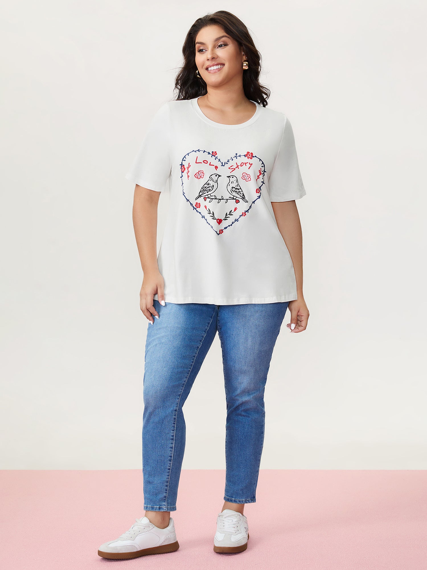 Floral & Slogan Print Slightly Stretchy Casual T-shirt