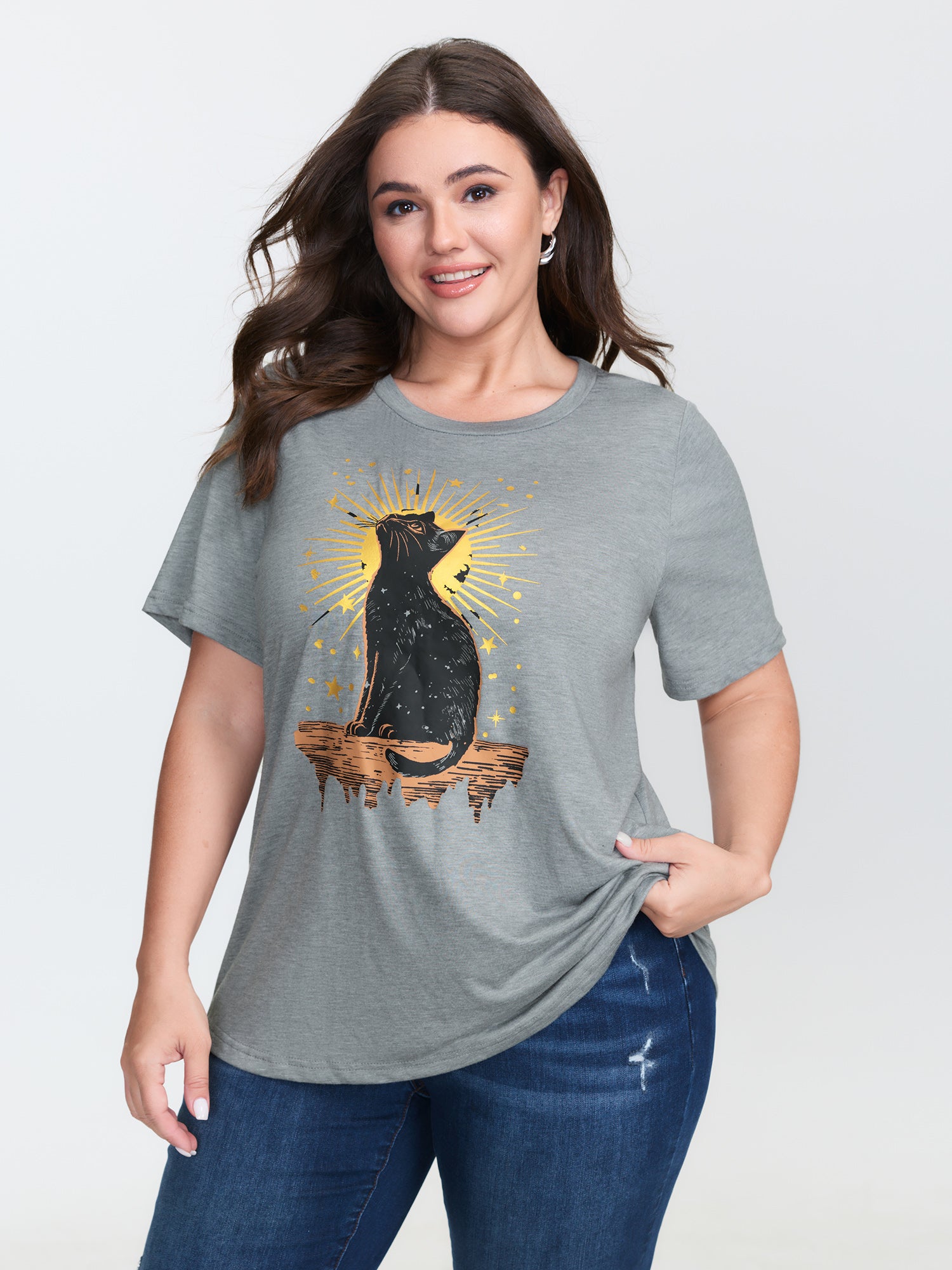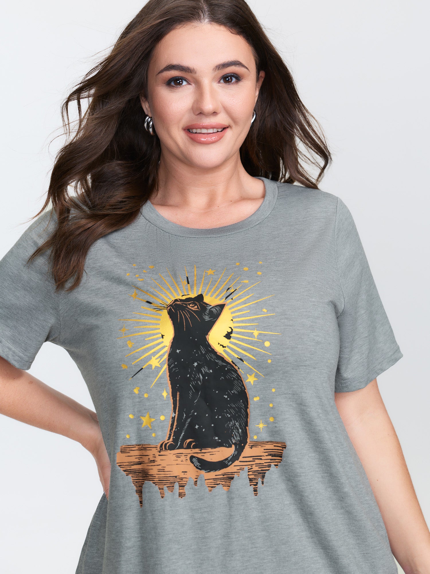 Supersoft Cat Pattern Cut-Out T-Shirt