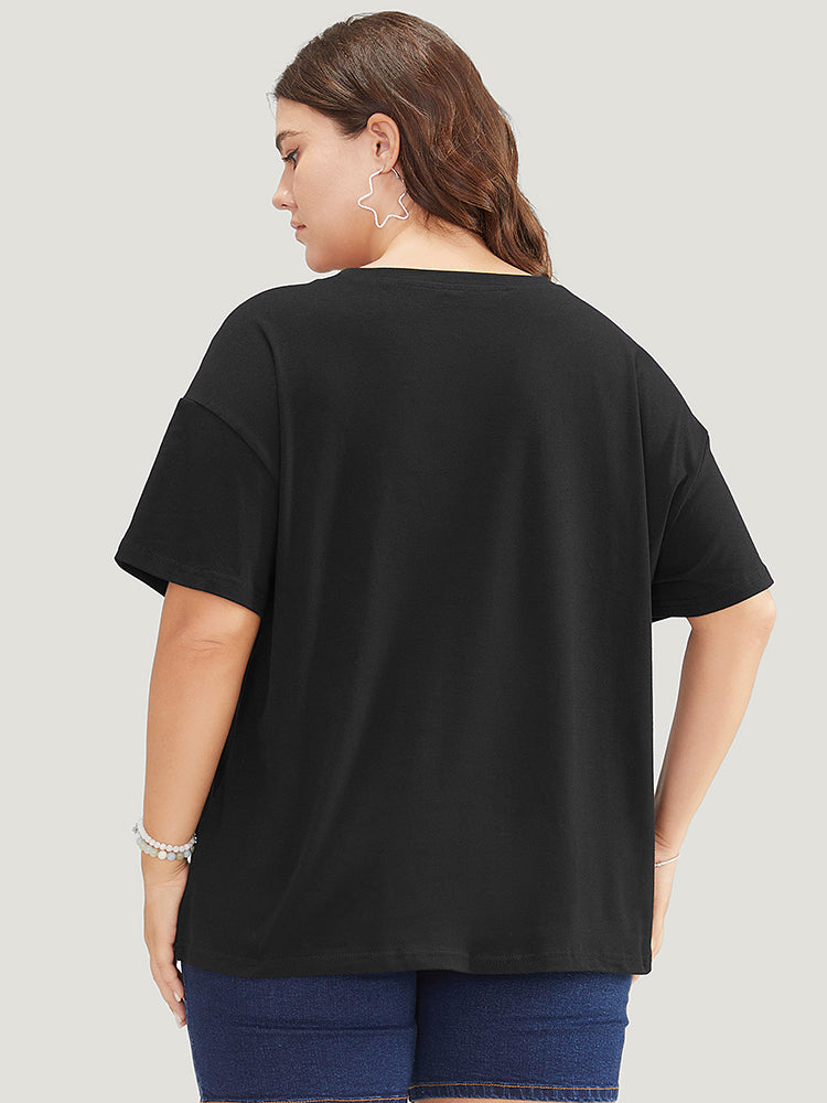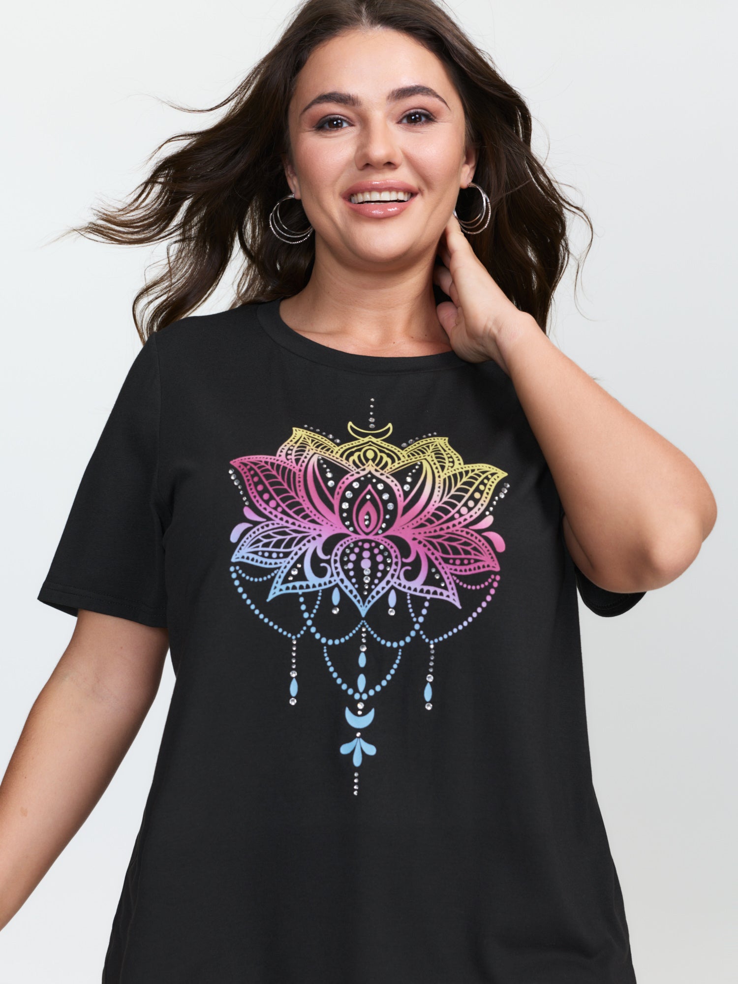 Cotton Floral Motif Drop Shoulder T-Shirt