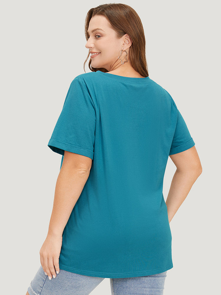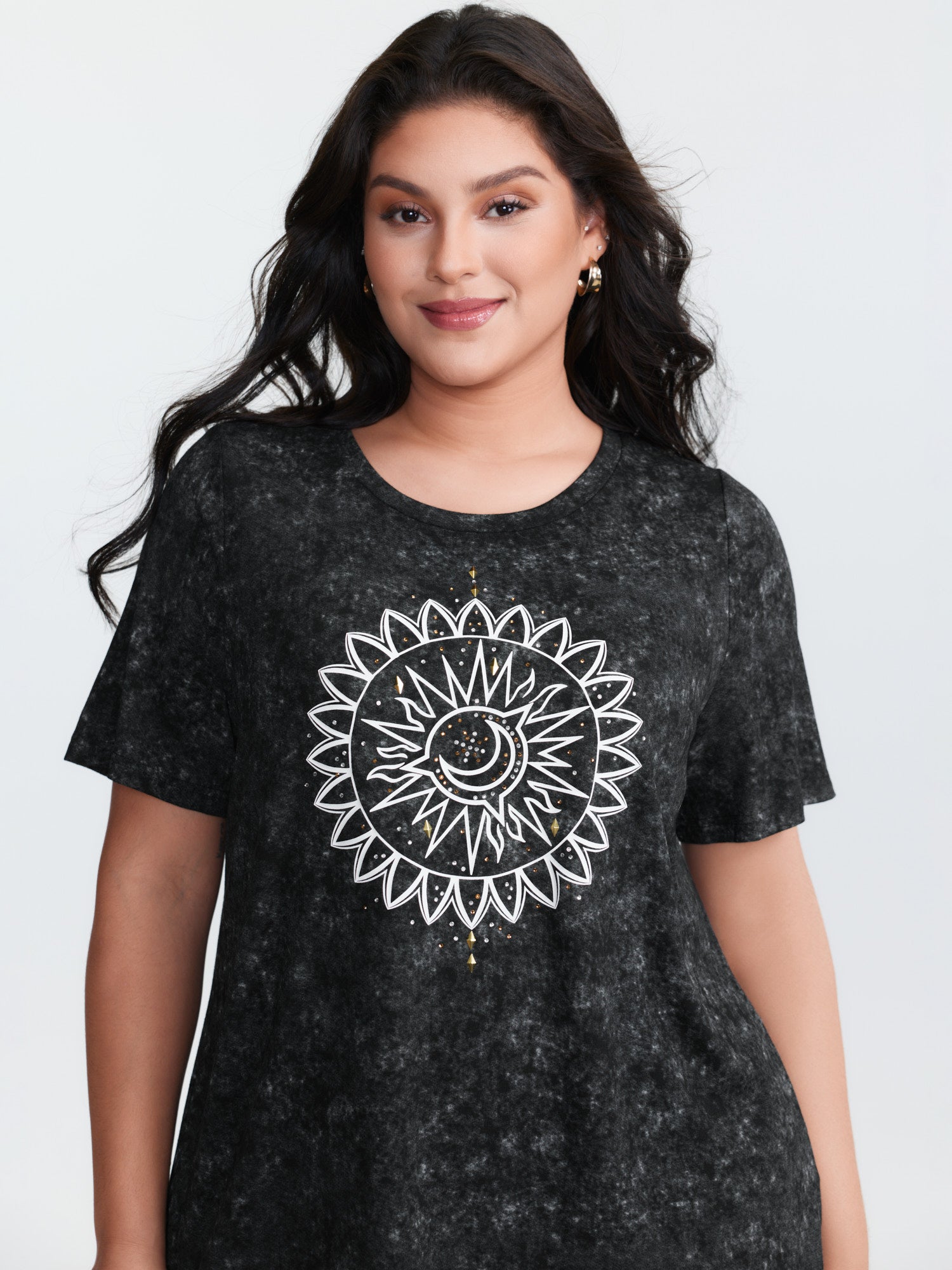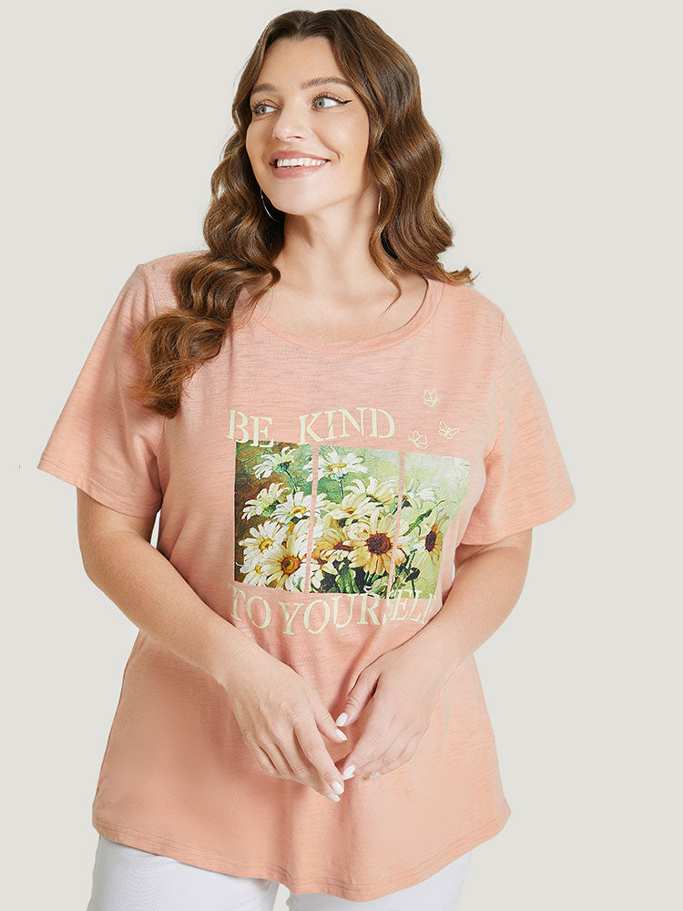 Daisy Floral & Letter Priint Round Neck T-shirt