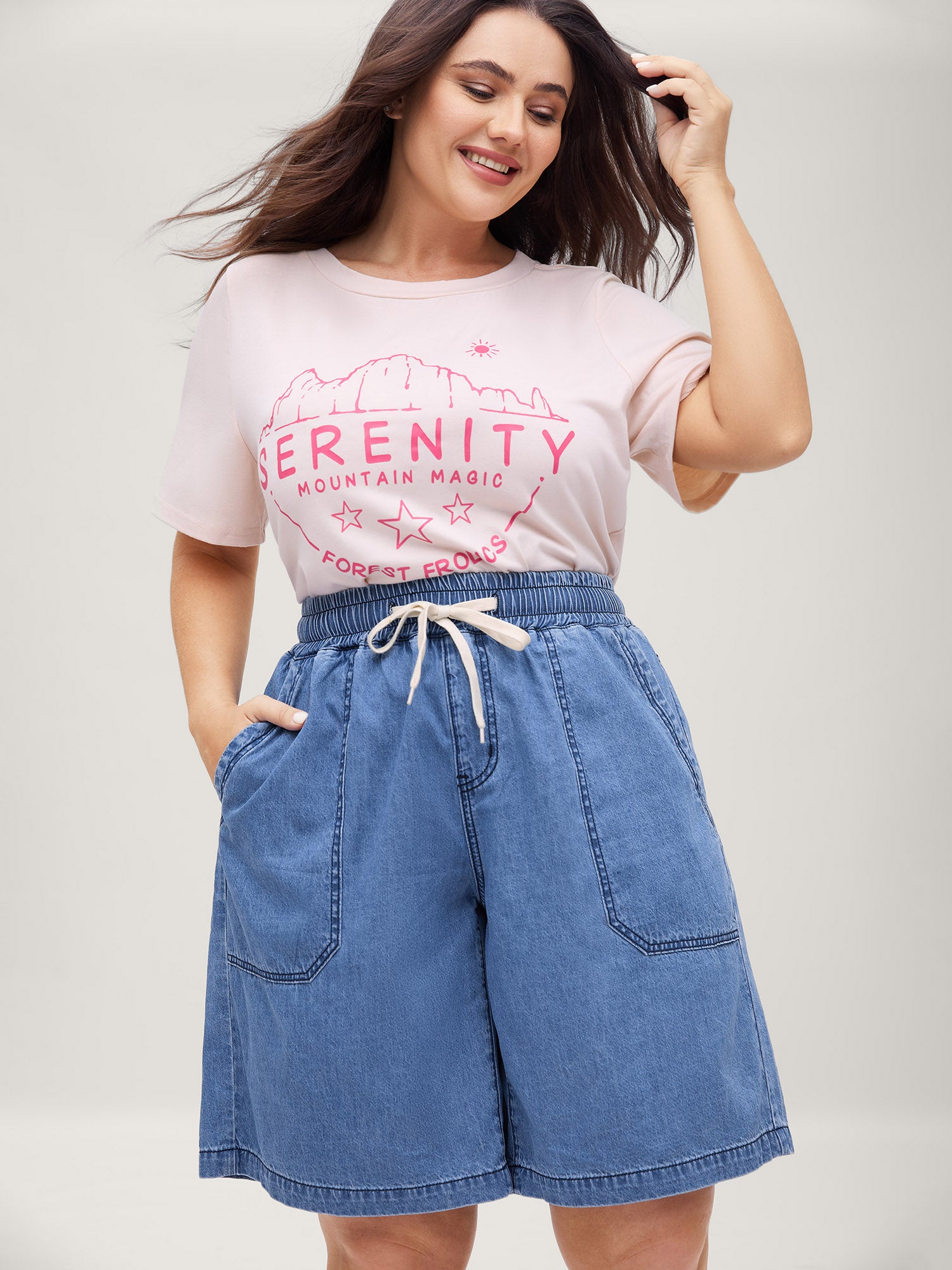 Cotton Stretchy Waist Drawstrings Denim Shorts