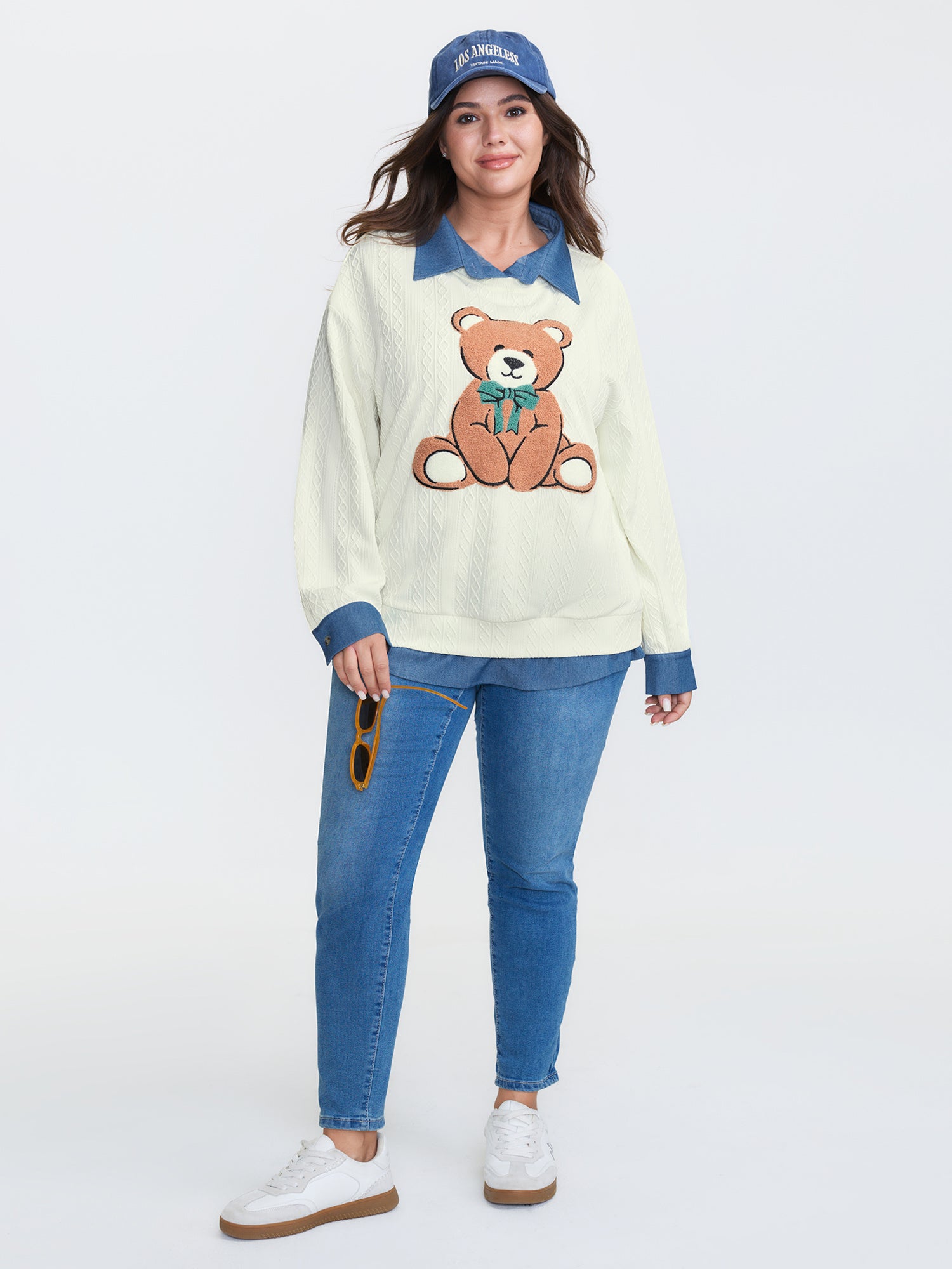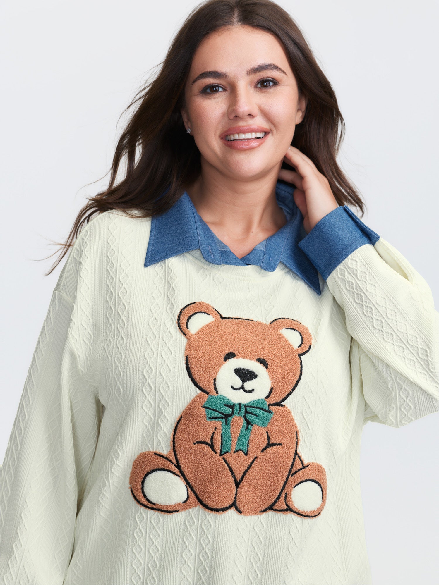 Towel Texture Teddy Embroidery Patchwork Sweatshirt