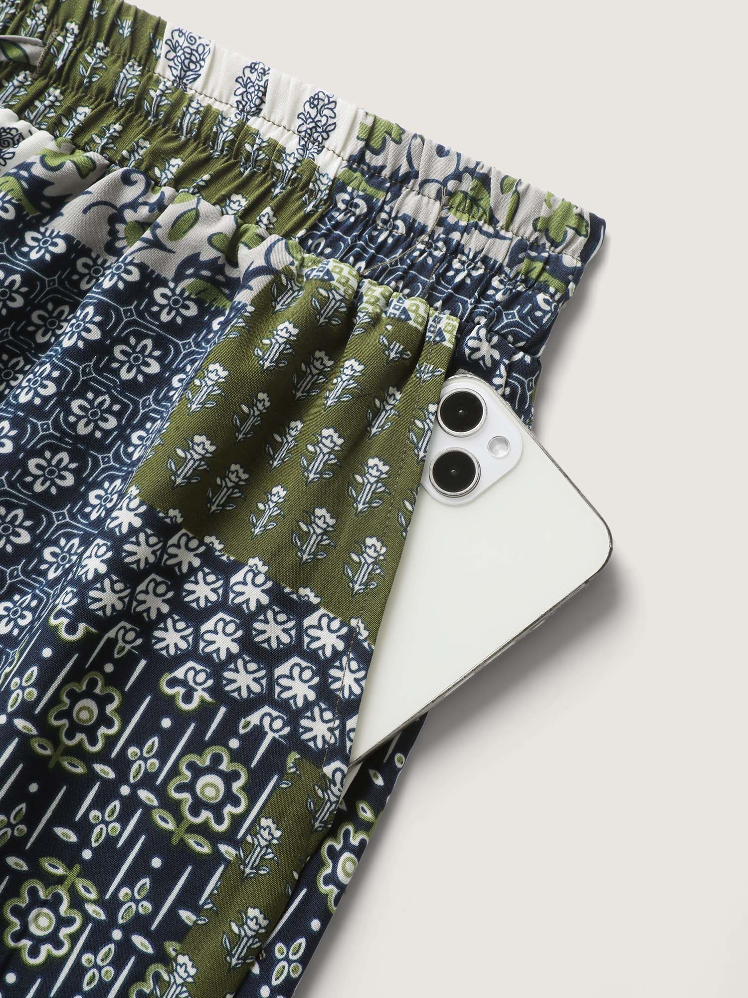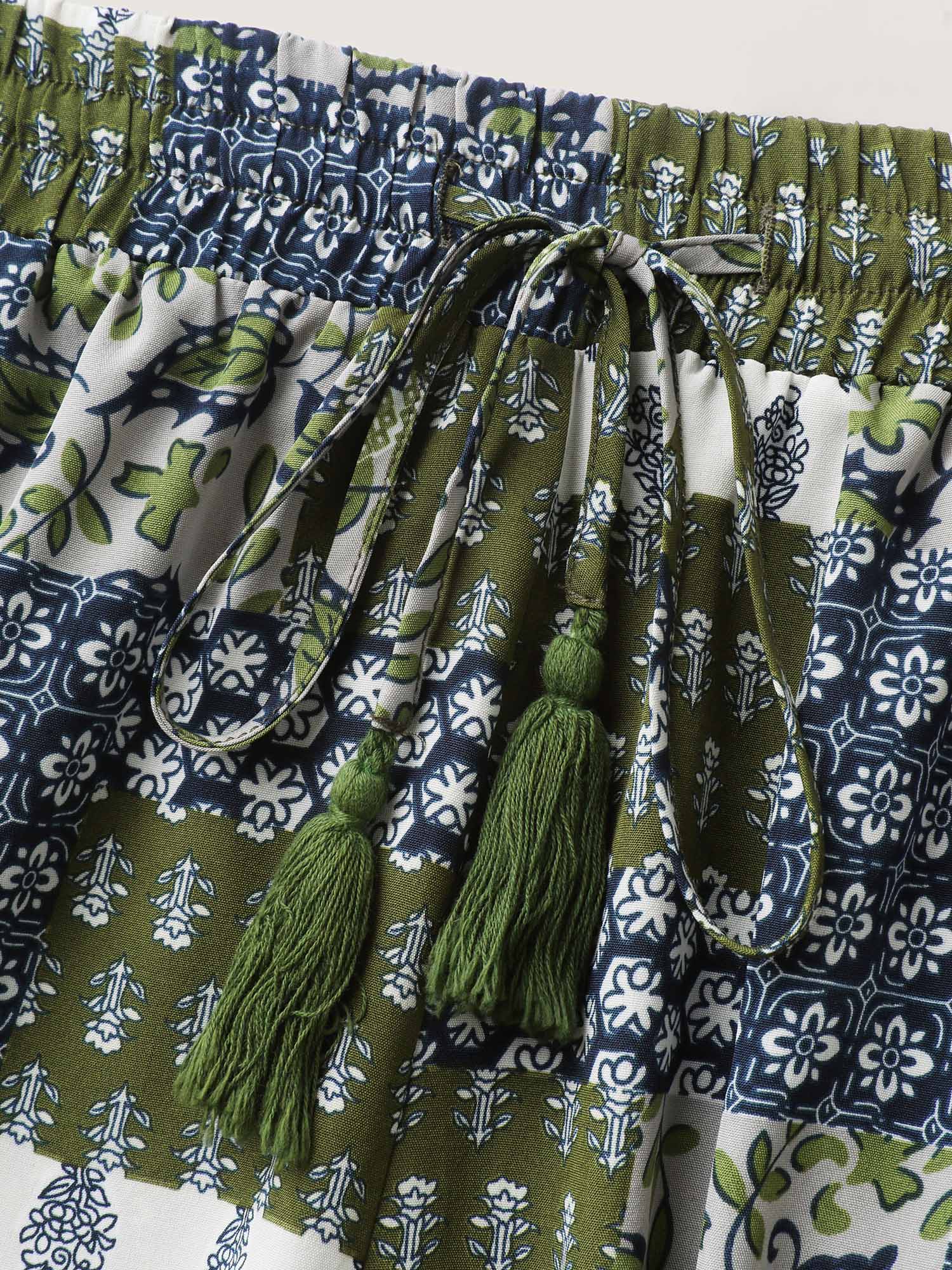 Floral Collage Drawstring Wide-Leg Pants
