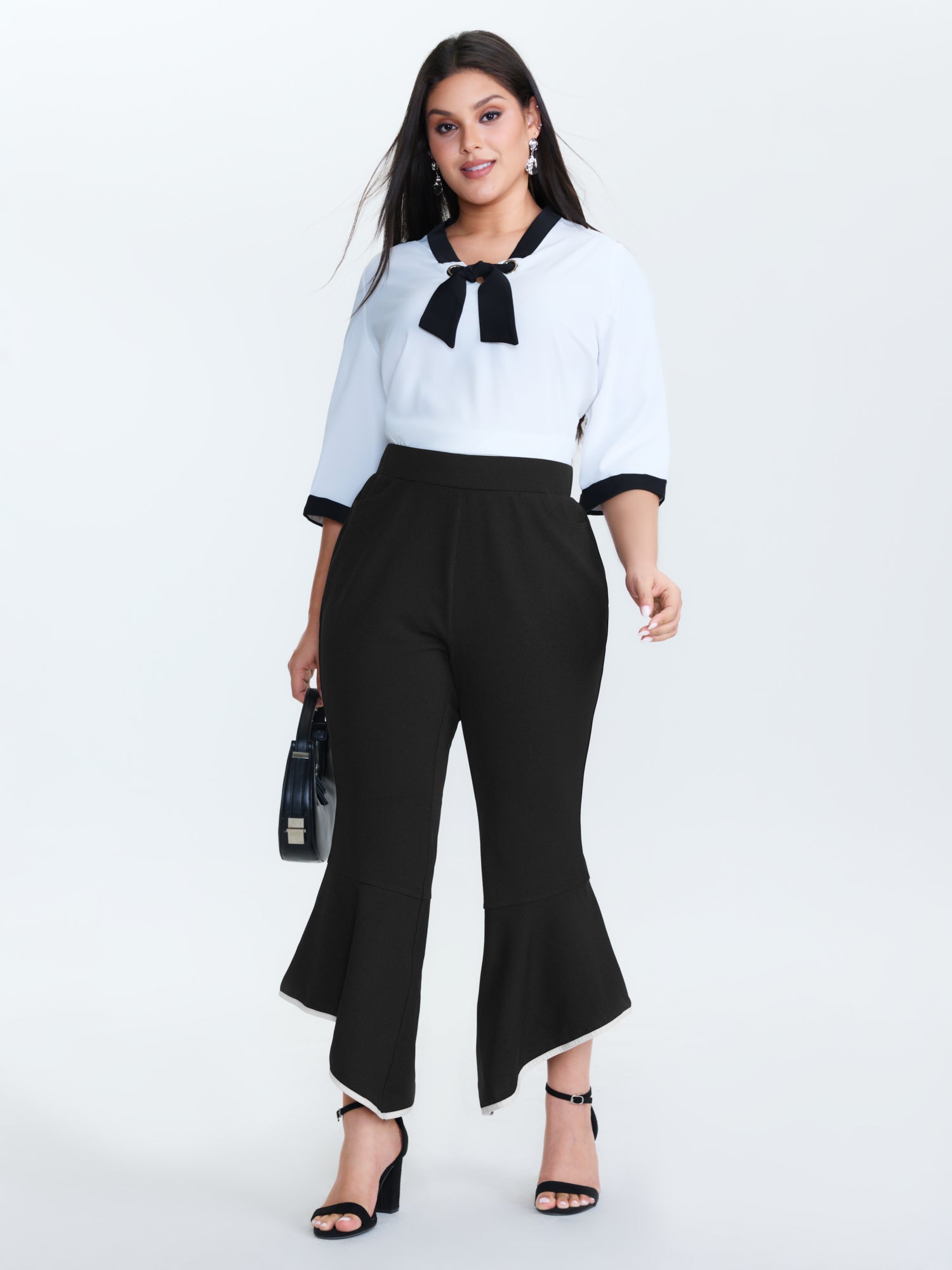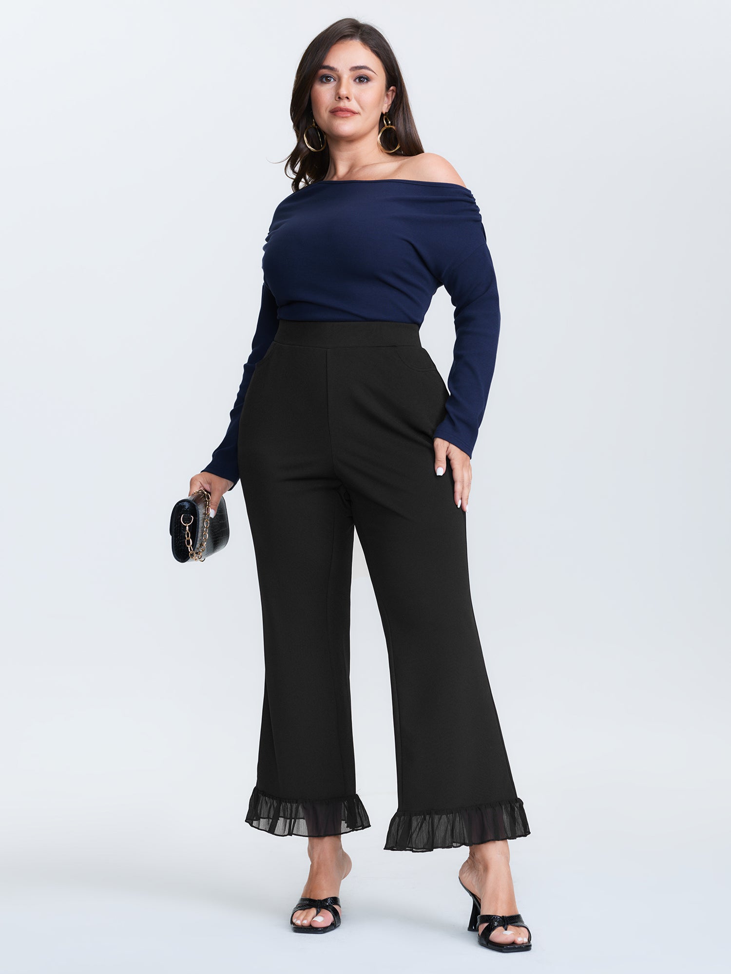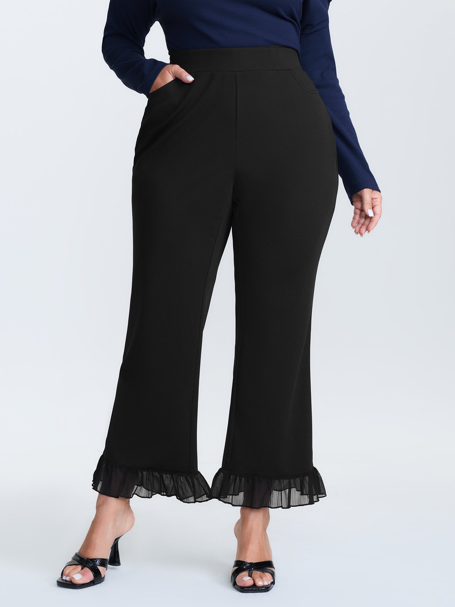 Ruffled Flared Hem Plain Pants