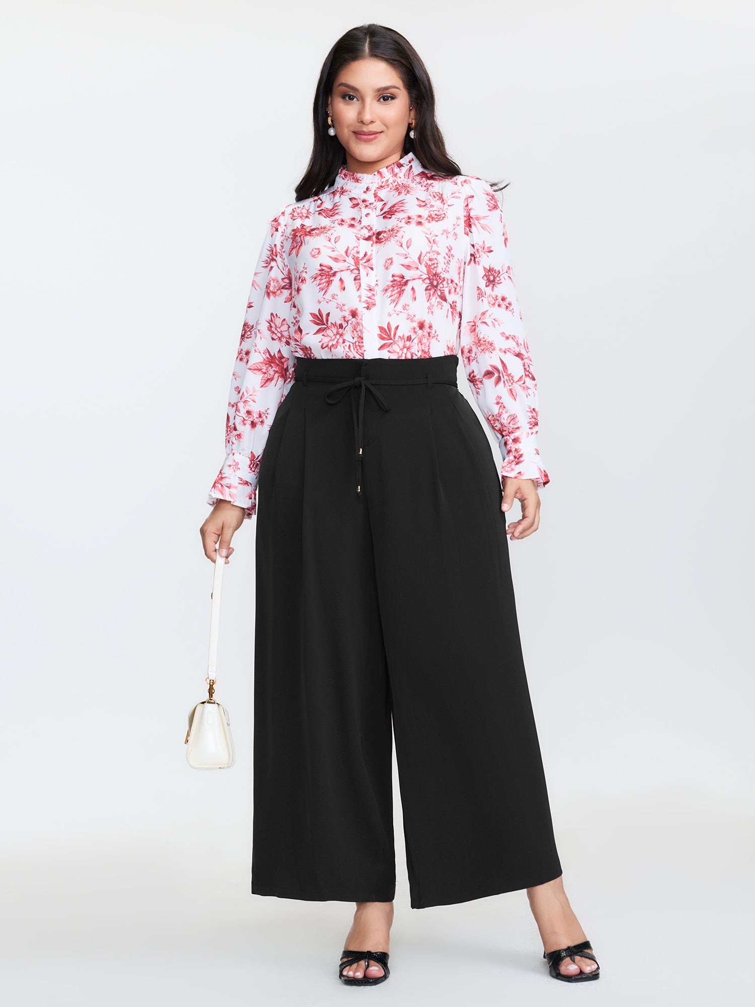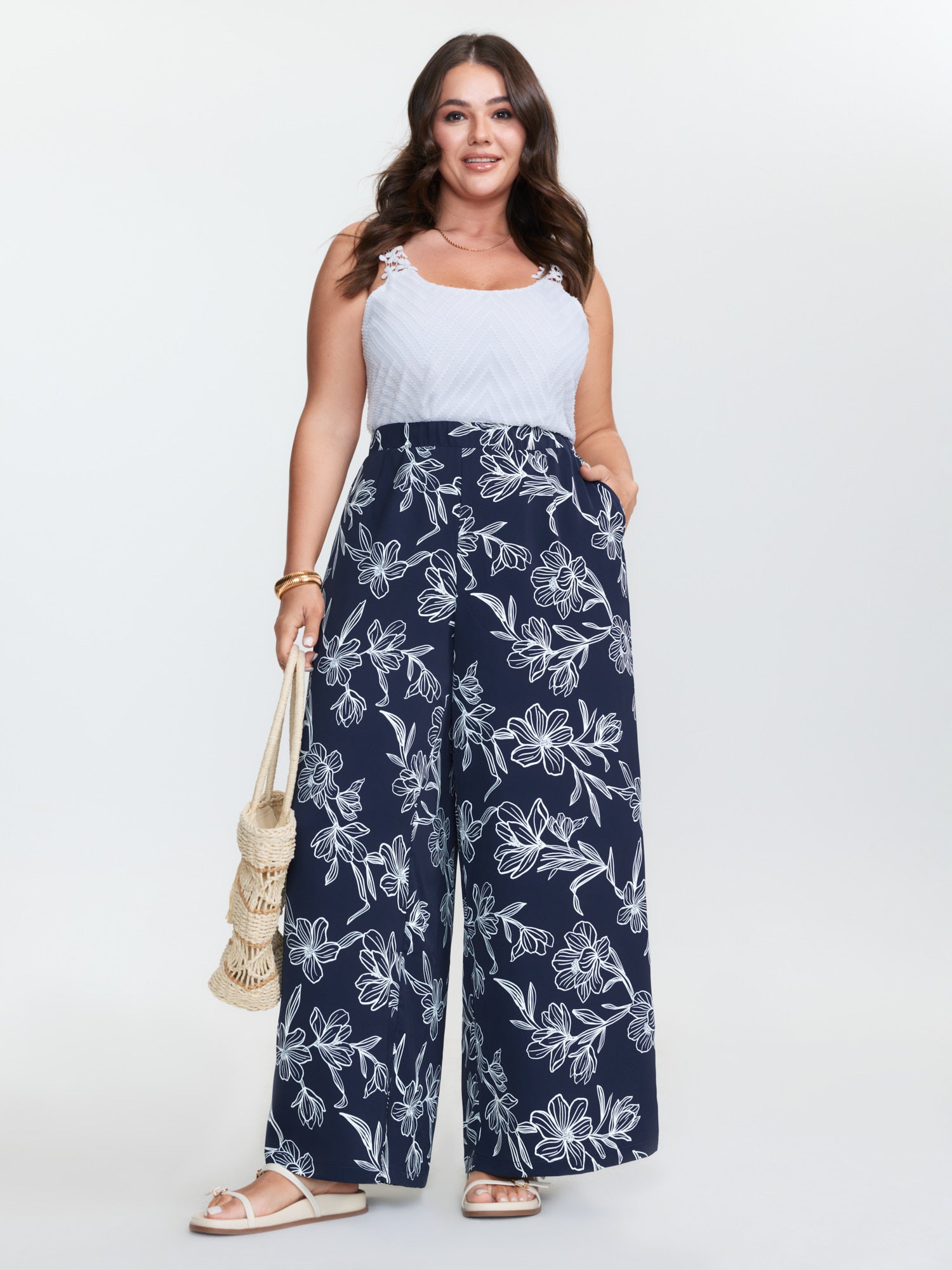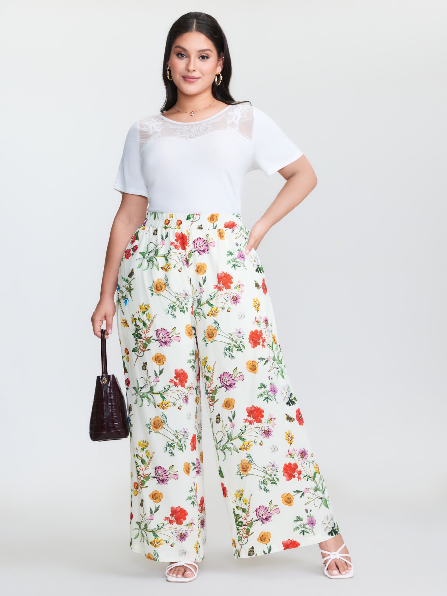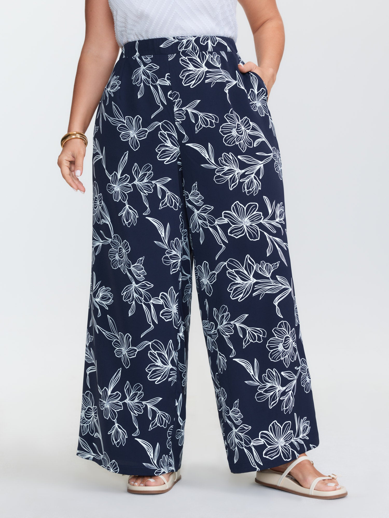 Floral Print Stretchy Waist Wide-Leg Pants