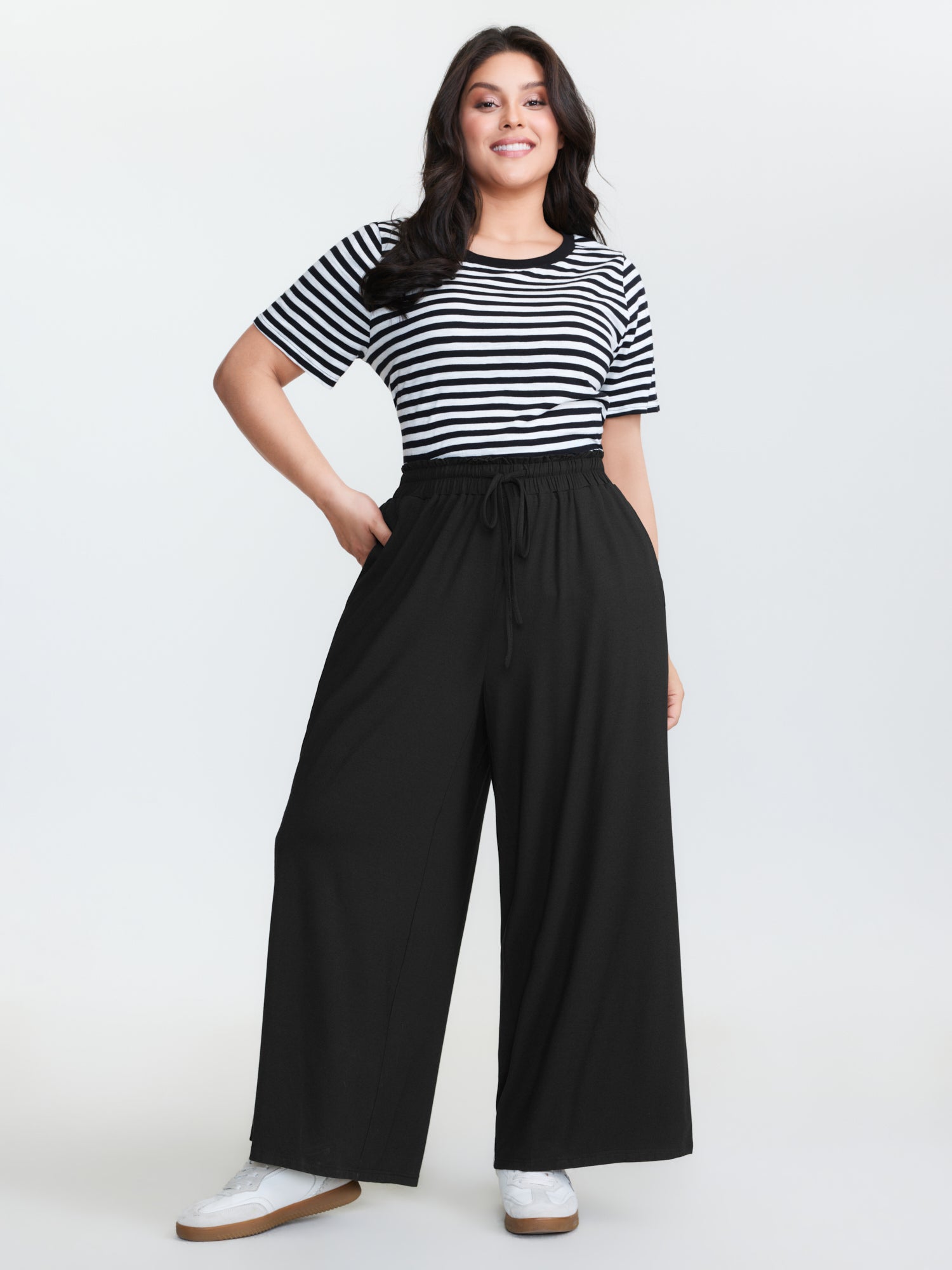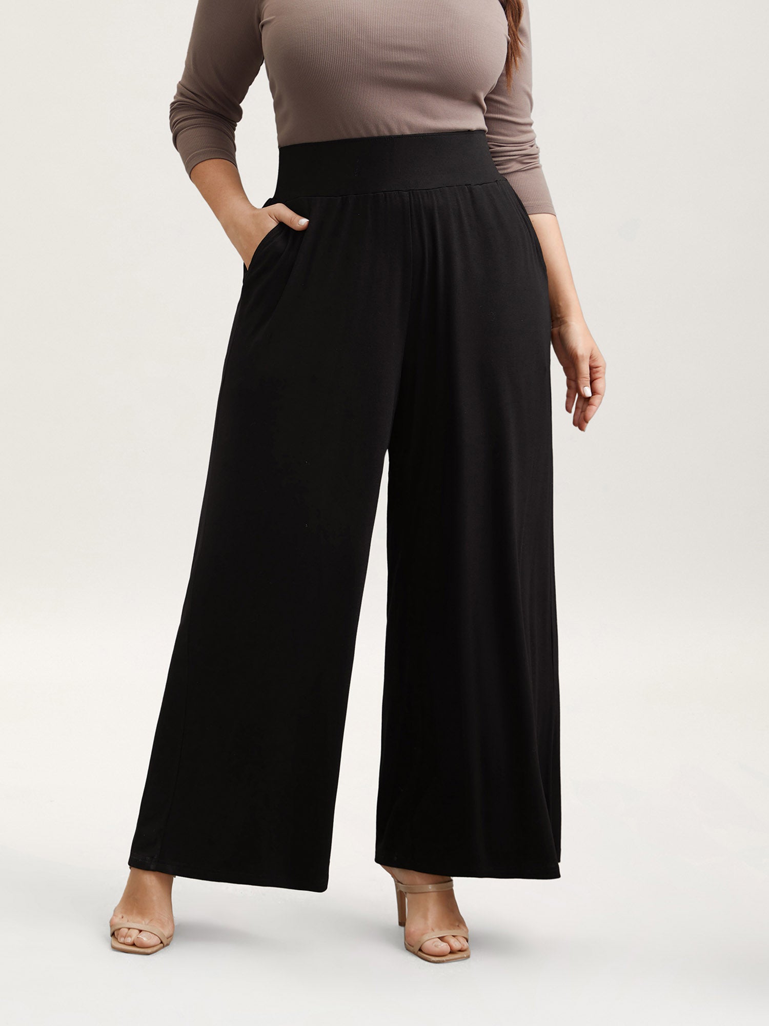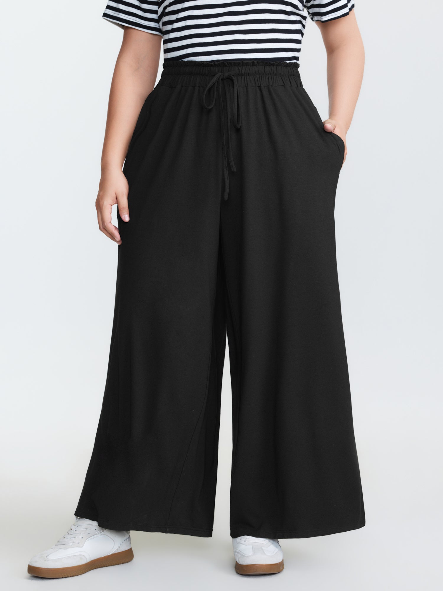 Stretchy Waist Wide-Leg Pants