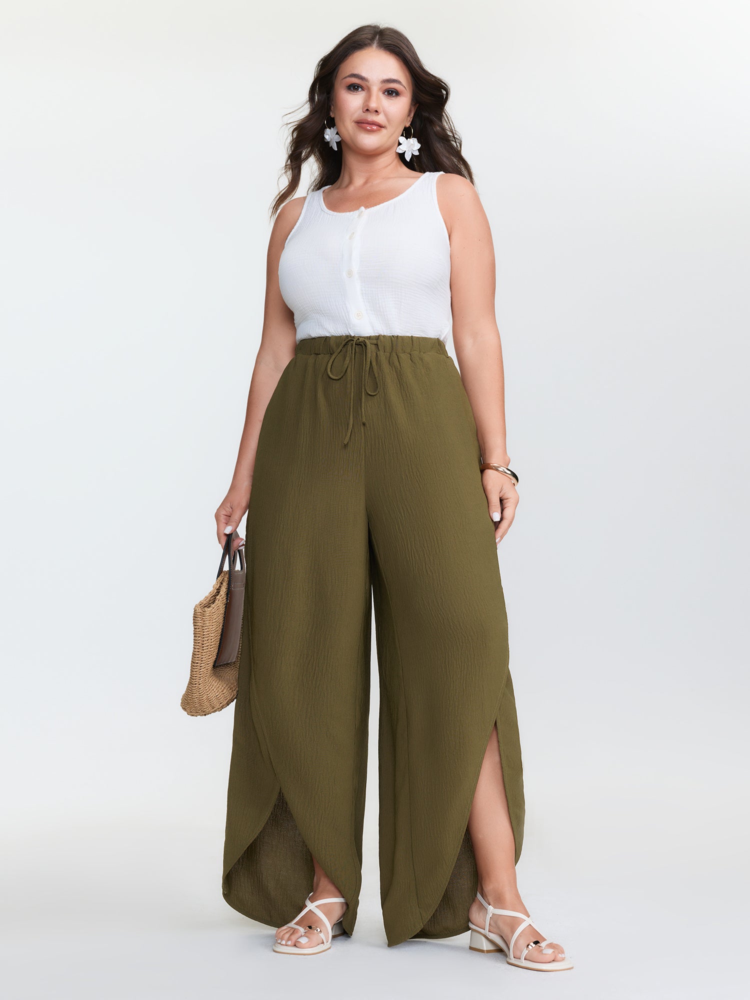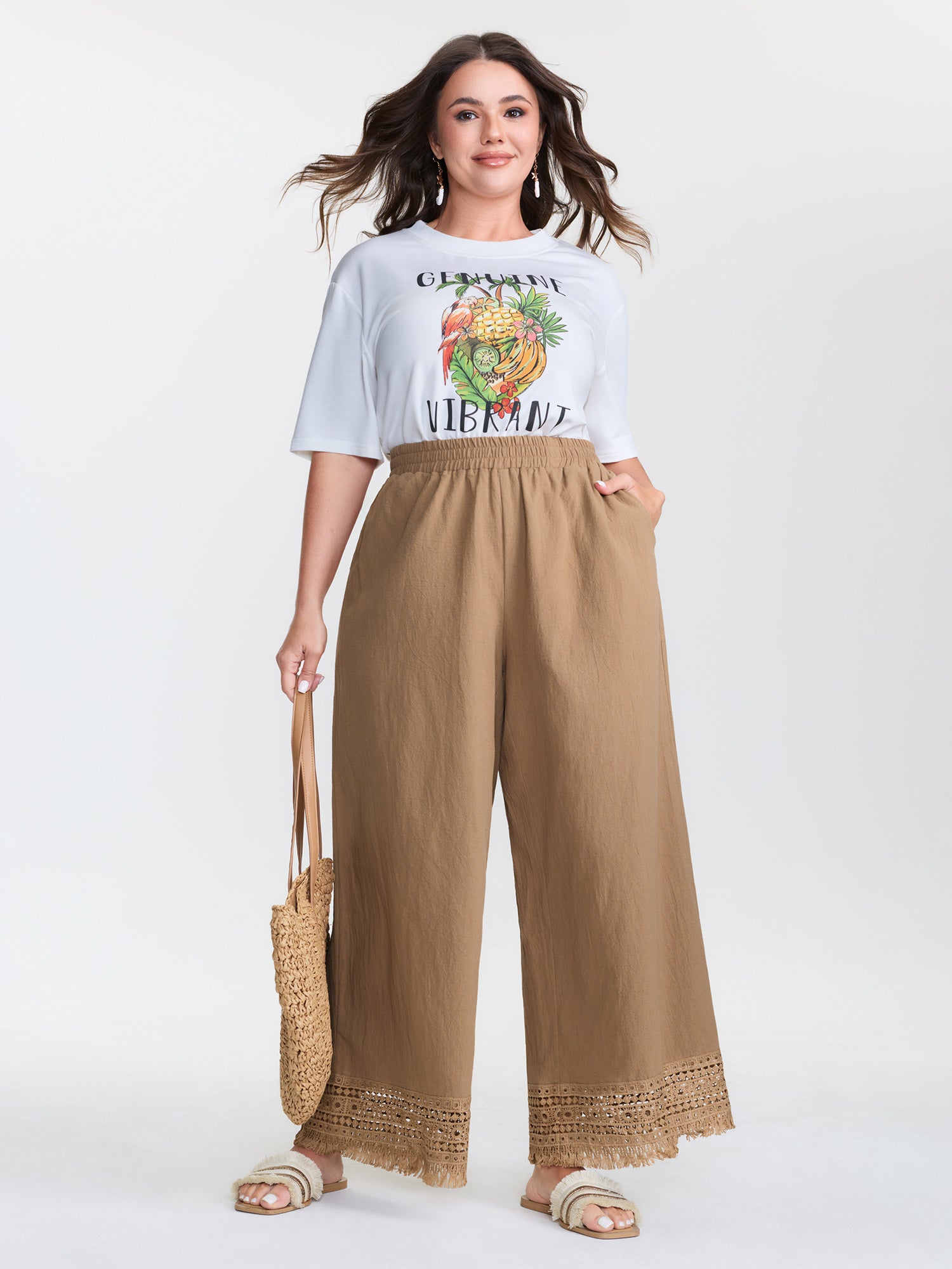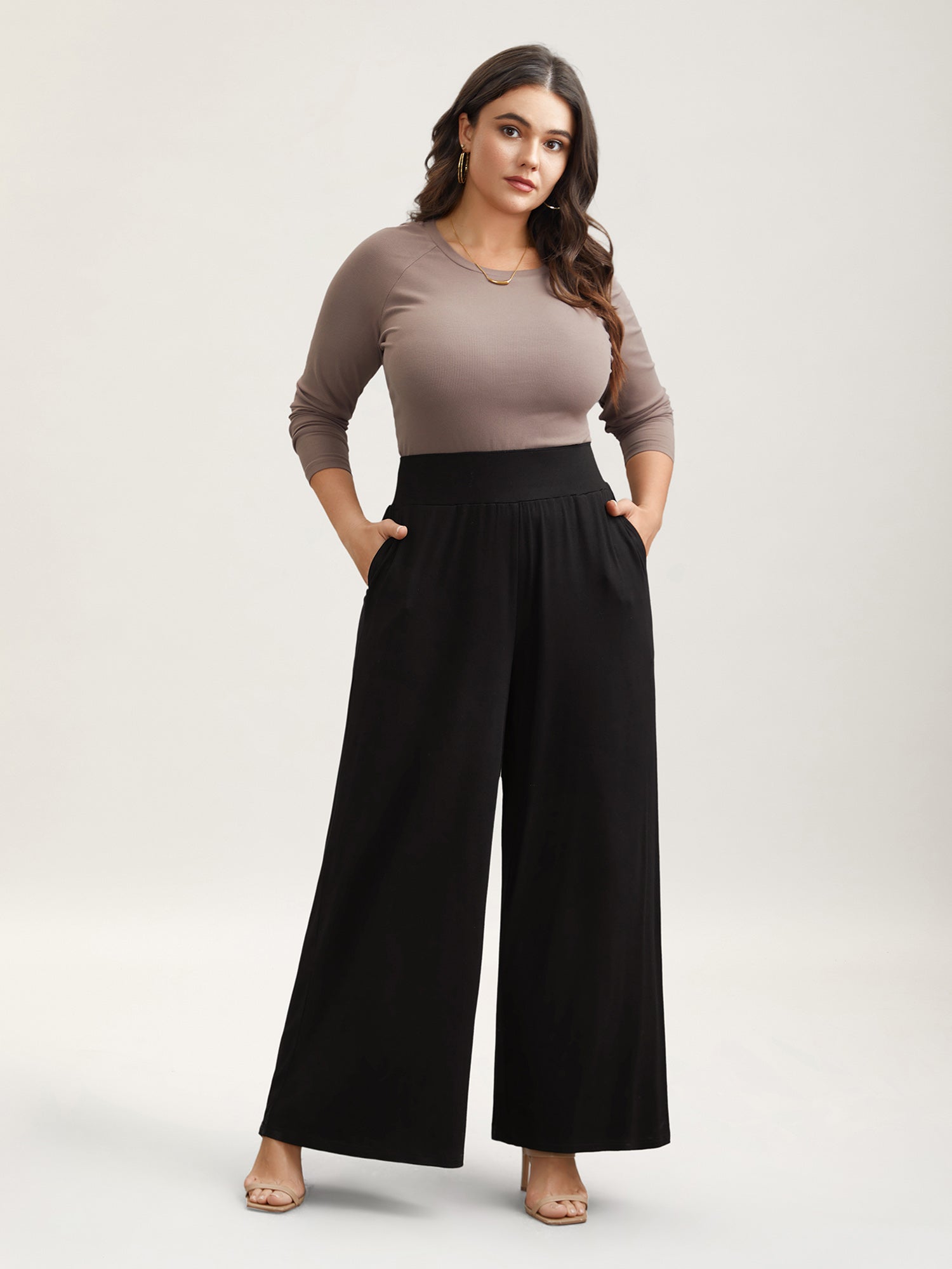 Stretchy Waist Wide-Leg Pants