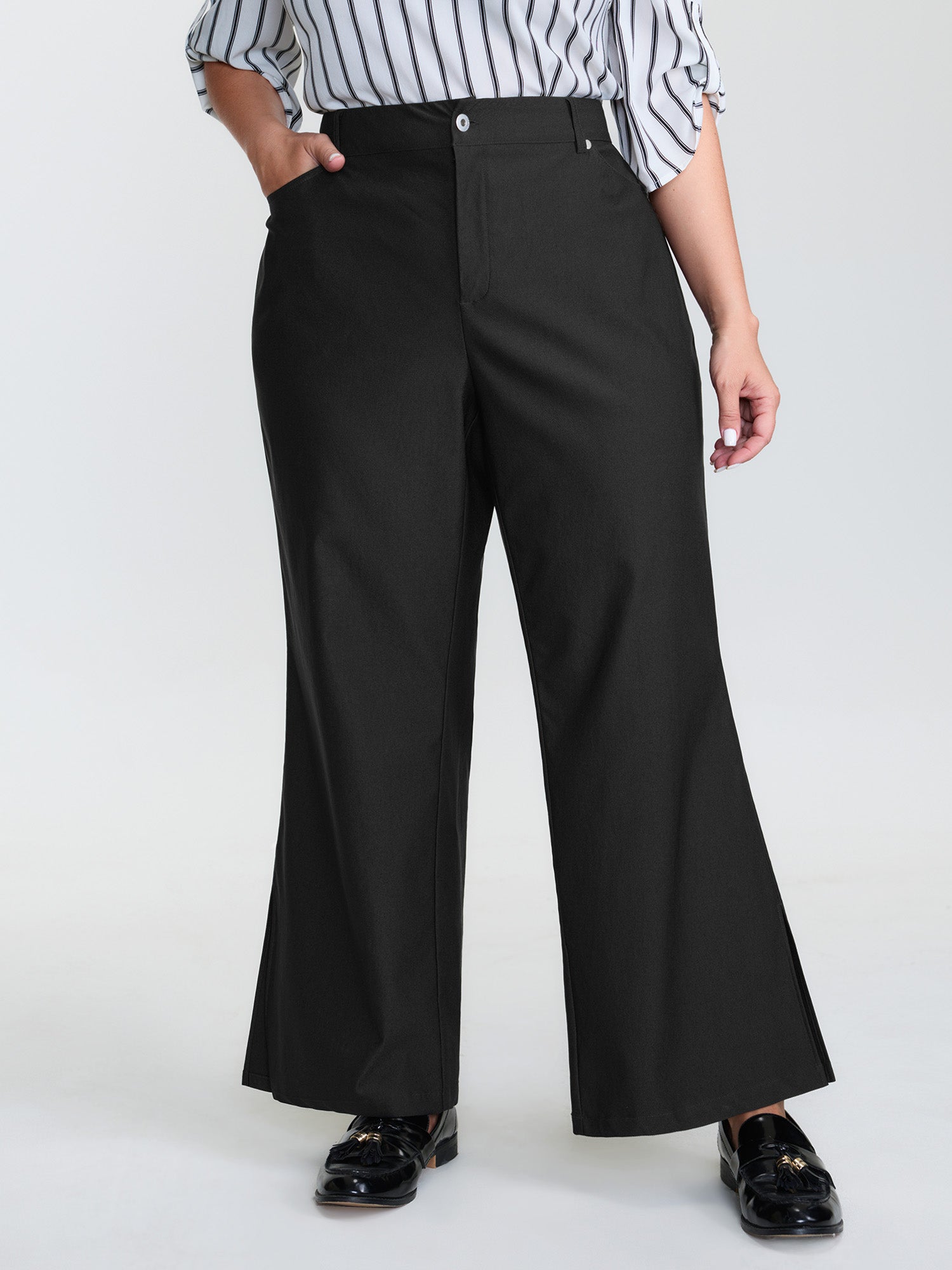 Stretchy Waist Crease Line Flared Pants