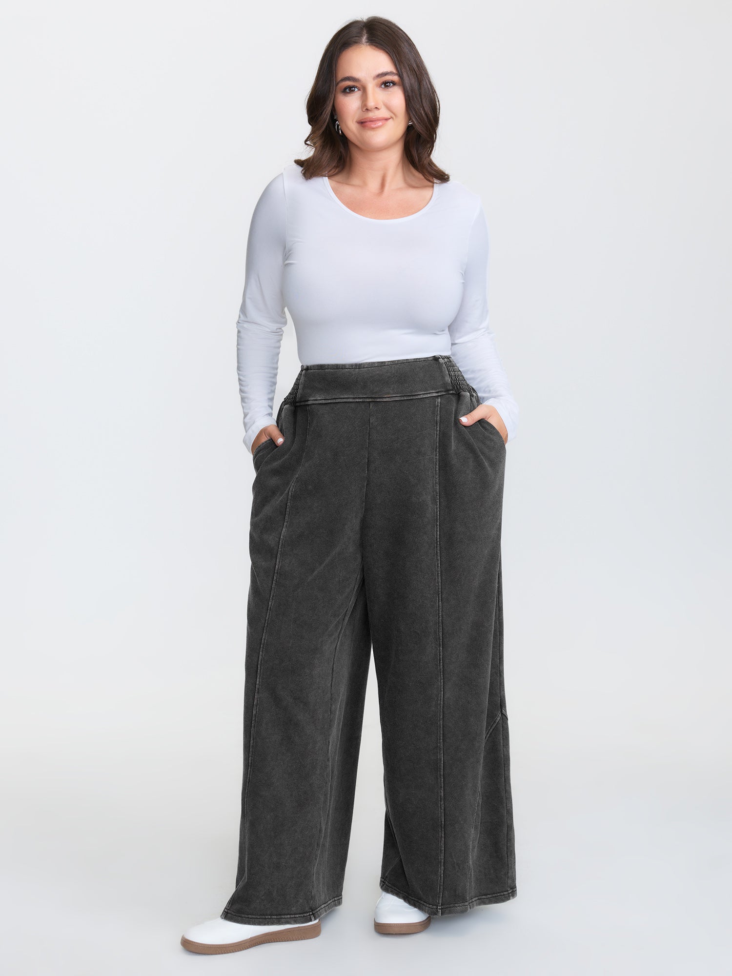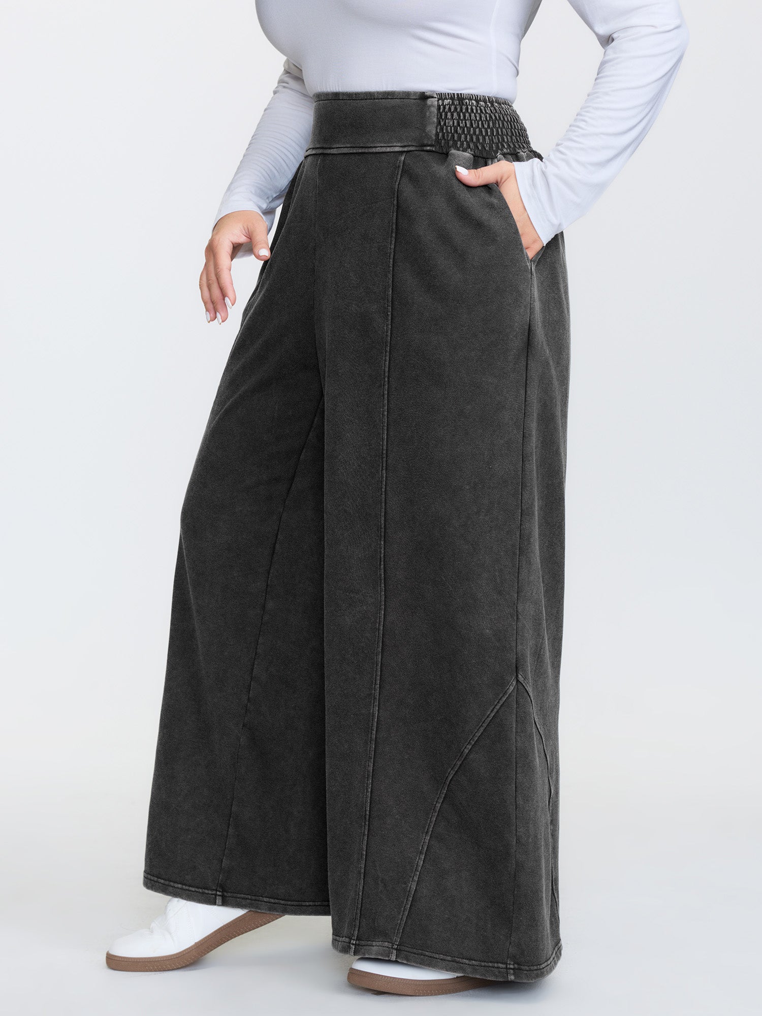 Stretchy Vintage Wash Wide-Leg Pants