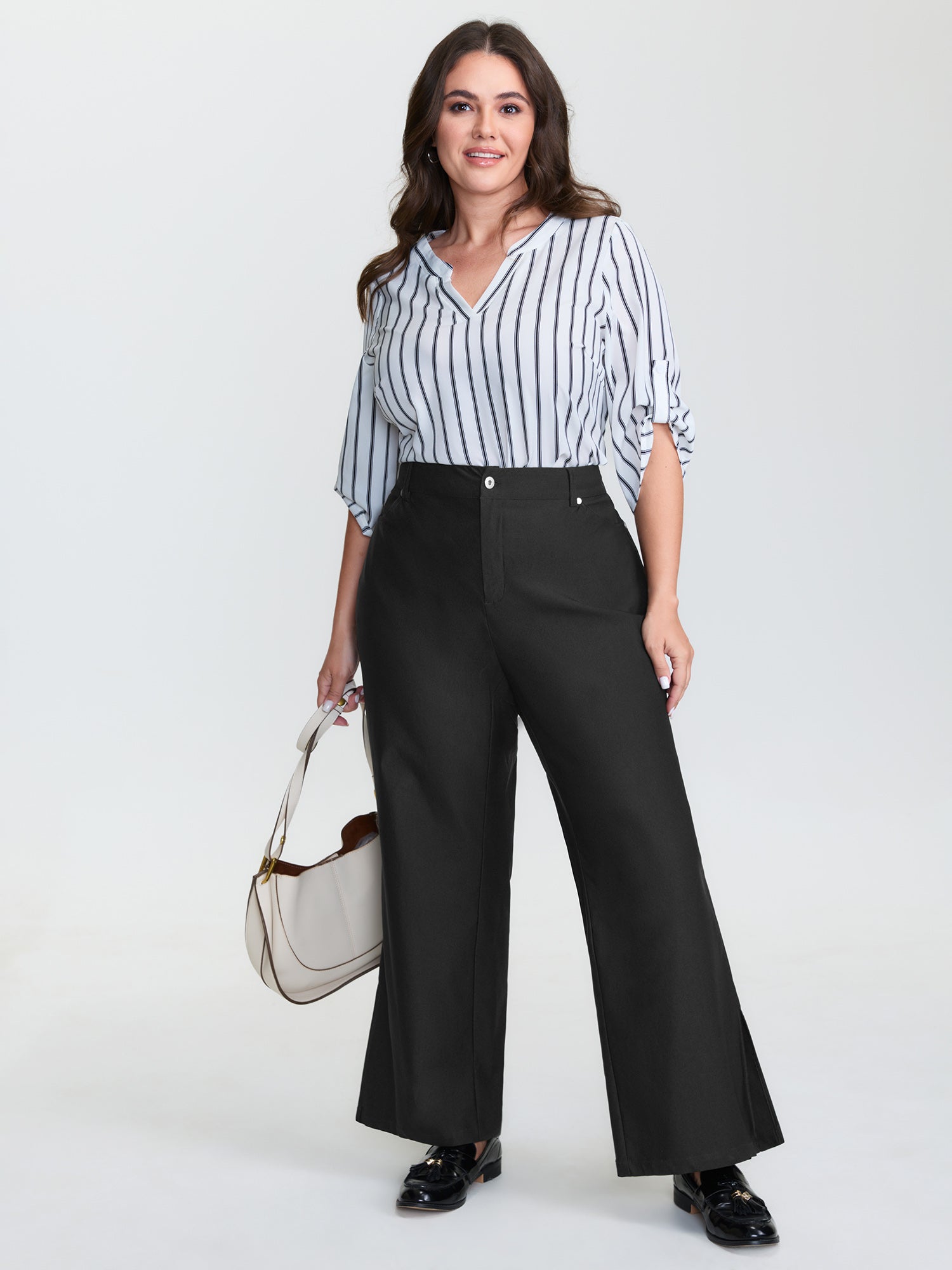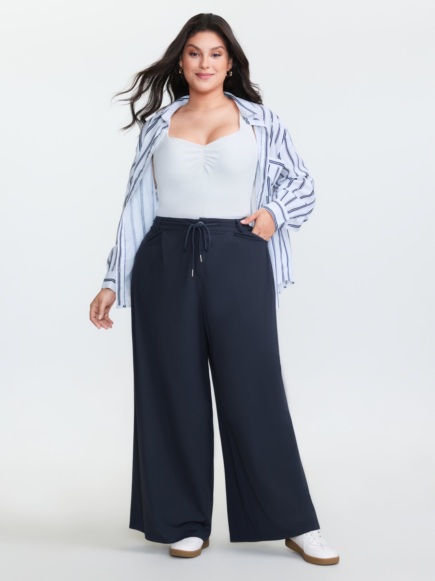 Striped Pockets Wide-Leg Pants