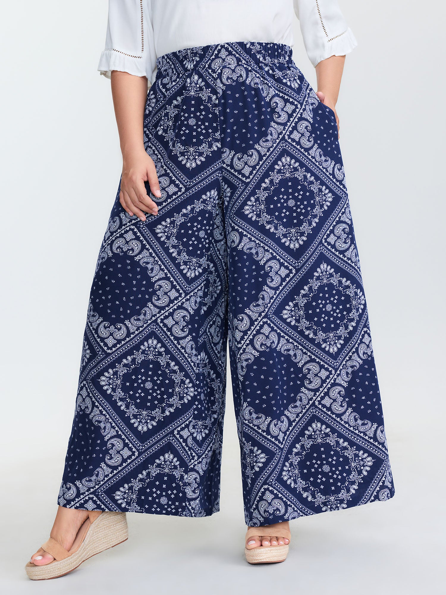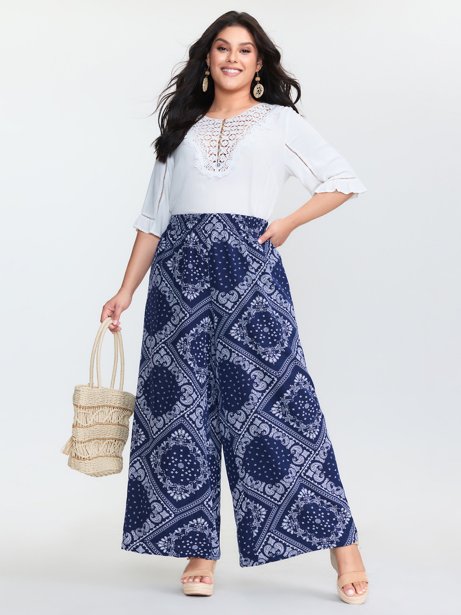 Boho Geometric Pattern Wide-Leg Pants