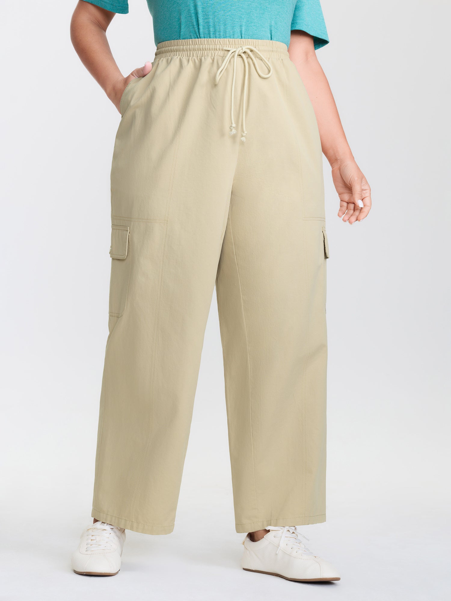 Stretchy Waist Pockets Drawstring Pants