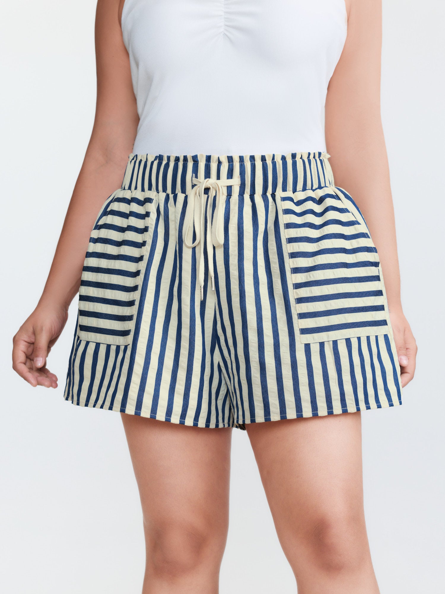 Asymmetrical Stripes Pockets Lined Shorts