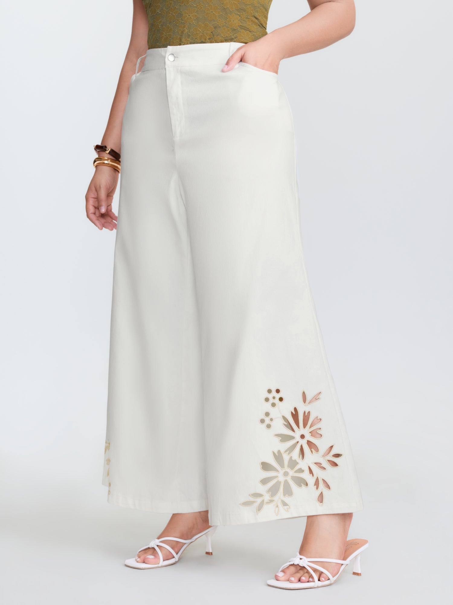 Floral Cutwork Embroidered Hem Pants