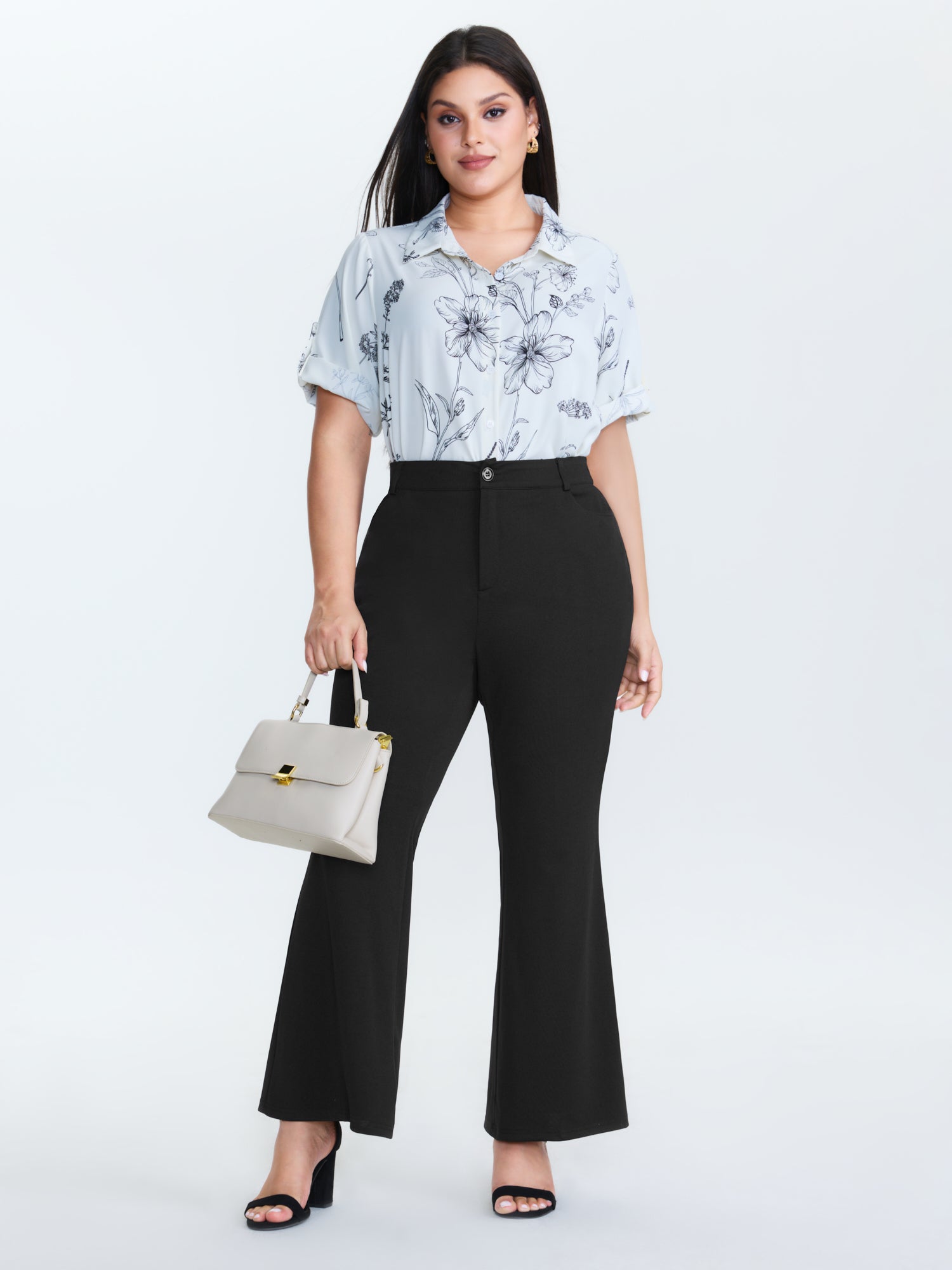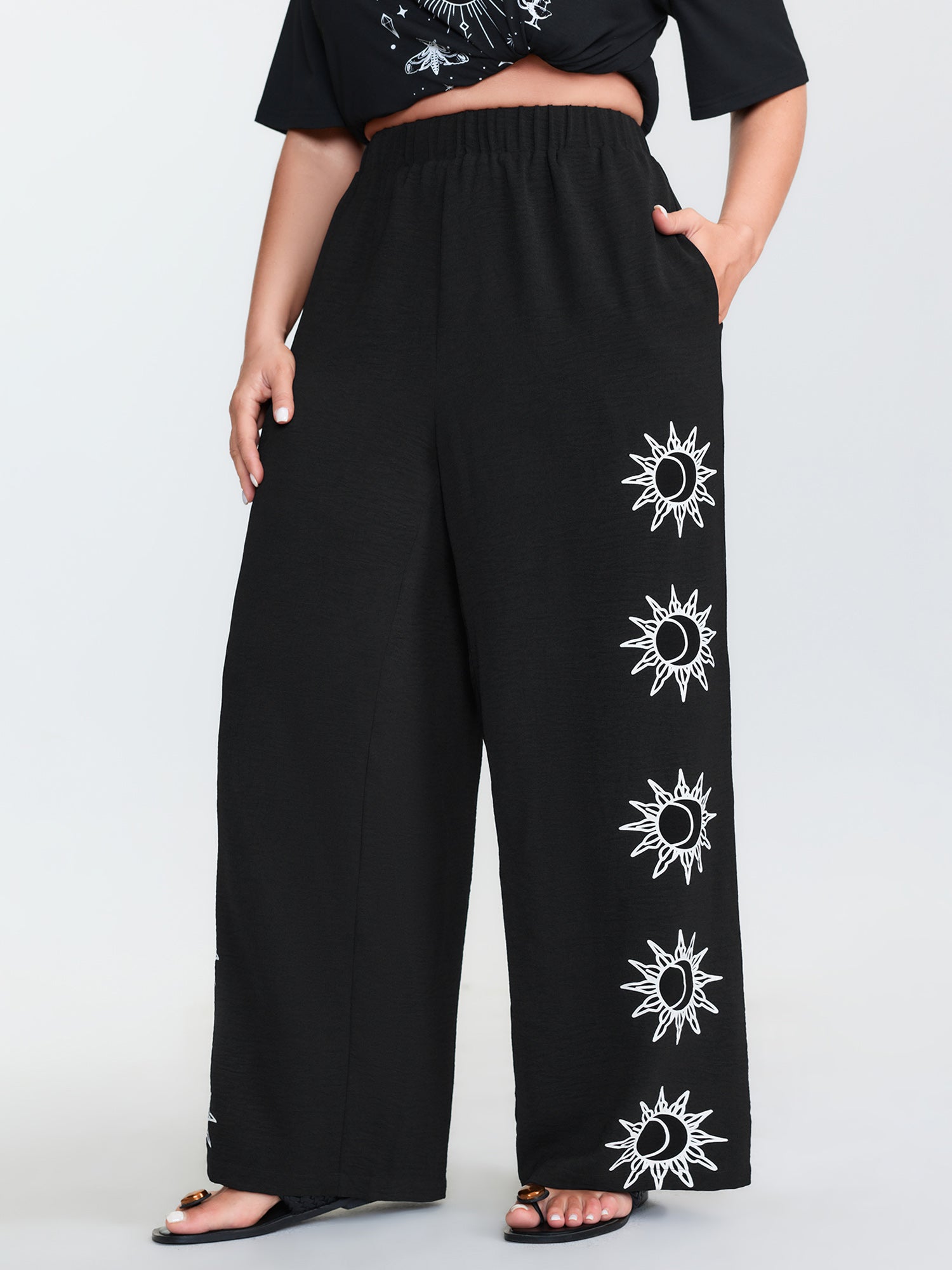 Monochrome Floral Pattern Pants