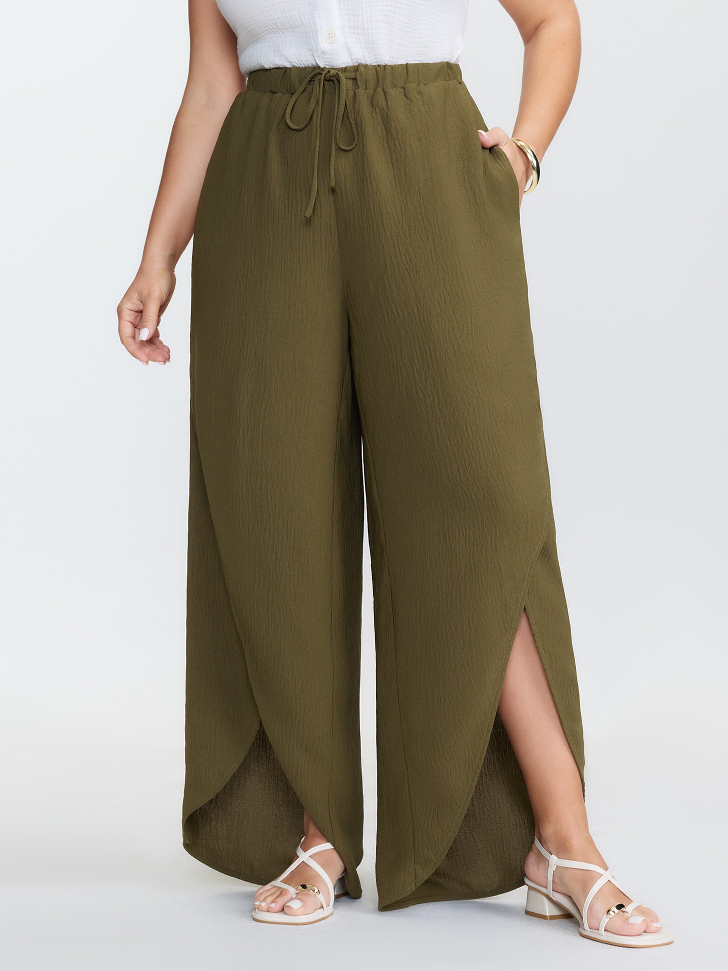 Waist-Tie Slit Cuffs Pants