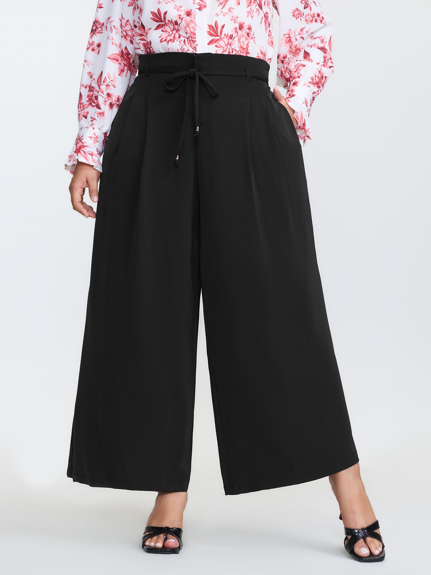 Stretchy Waist Belted Wide-Leg Pants