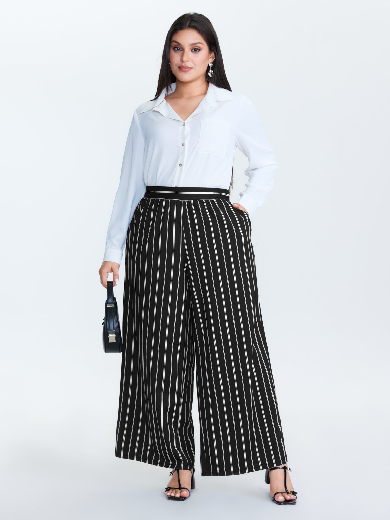 Monochrome Stripe Print Wide-Leg Pants