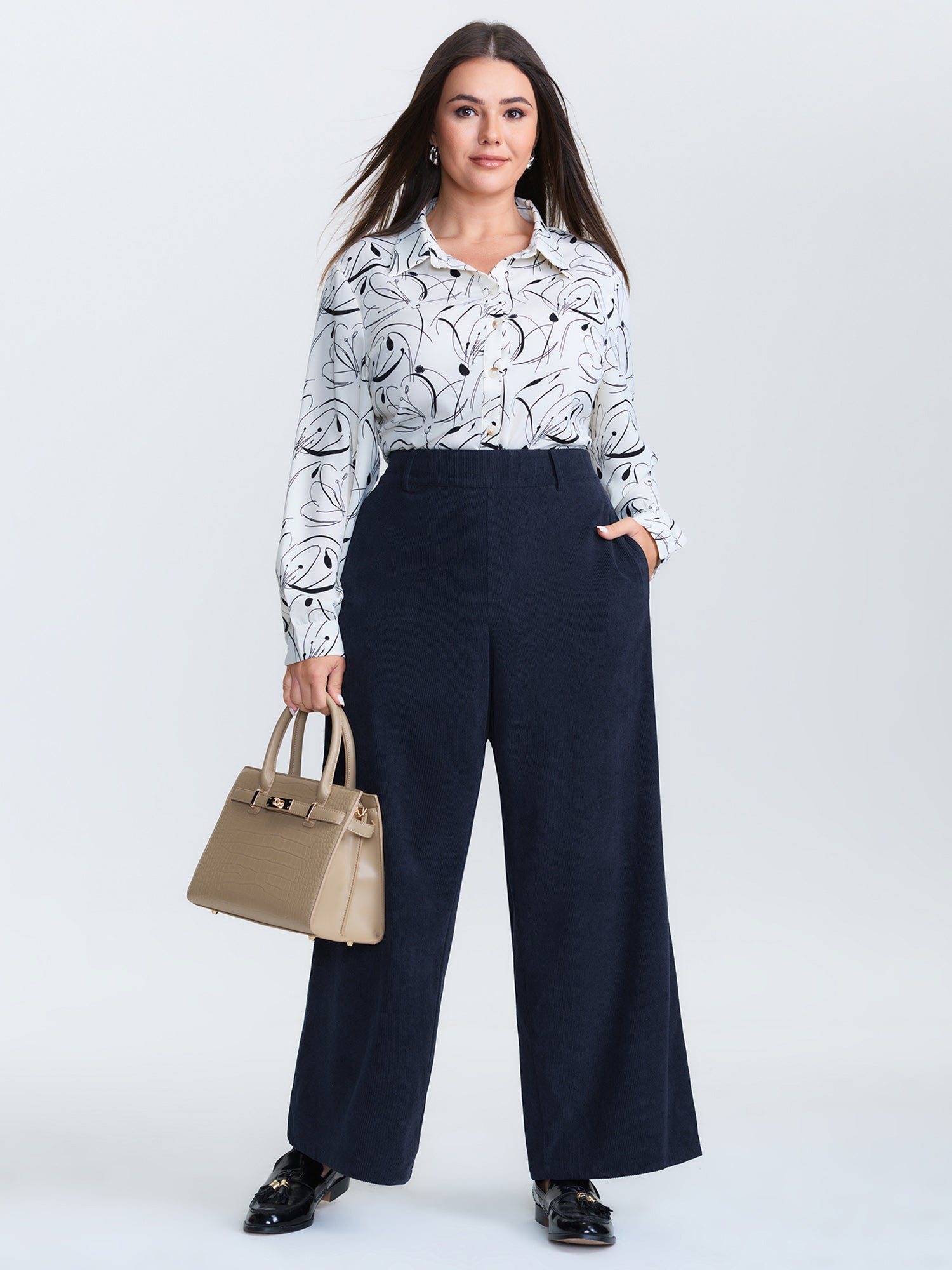 Corduroy Ribbed Straight-Leg Pants