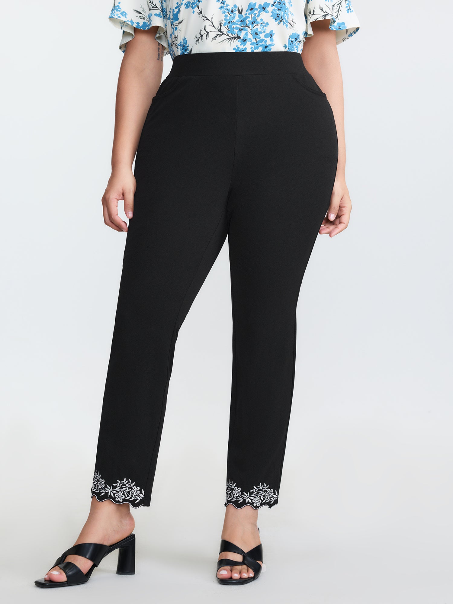 Embroidered Hem Pull-On Pants
